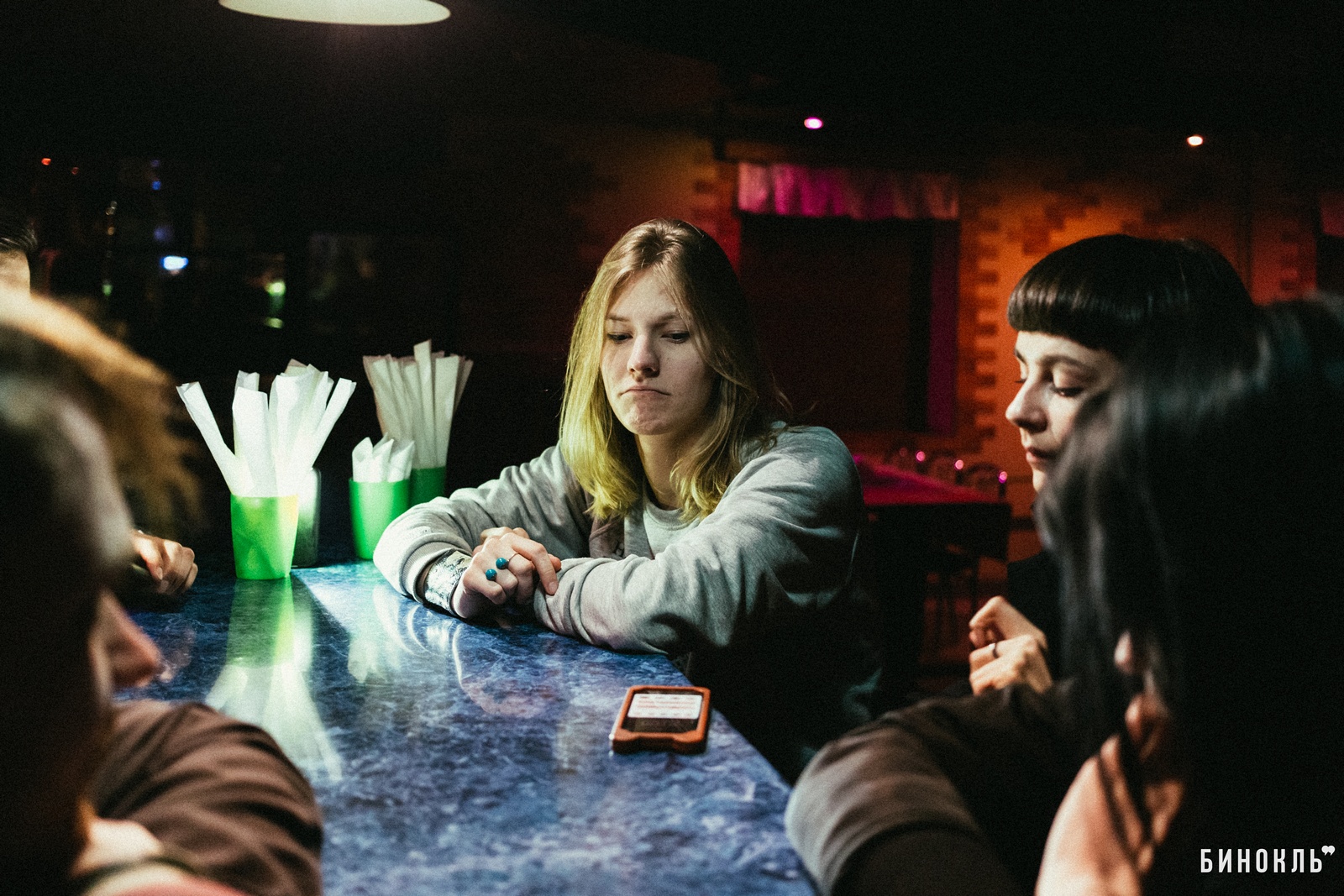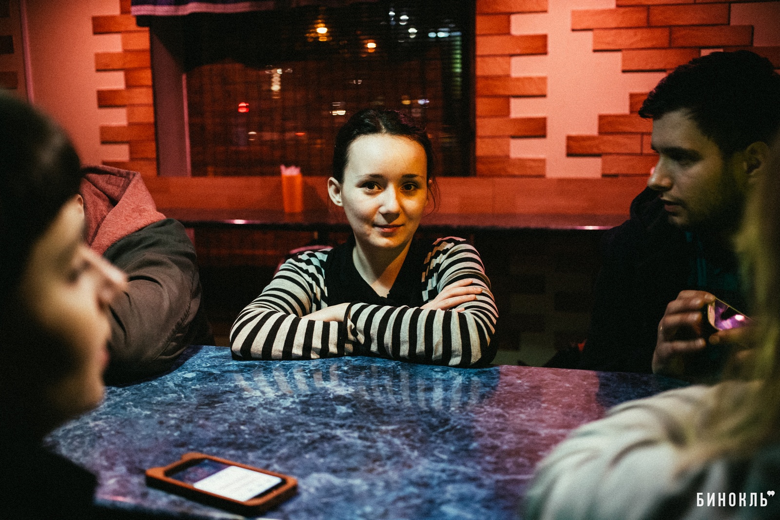 Сделав заказ, мы разместились за уютным столиком с прикрученными к полу стульями. Всё бы ничего, но вот света оказалось достаточно мало для того, чтобы Рома смог сделать вкусные фотографии для нашего репортажа. Из пяти светильников лишь в одном была вкручена лампочка.