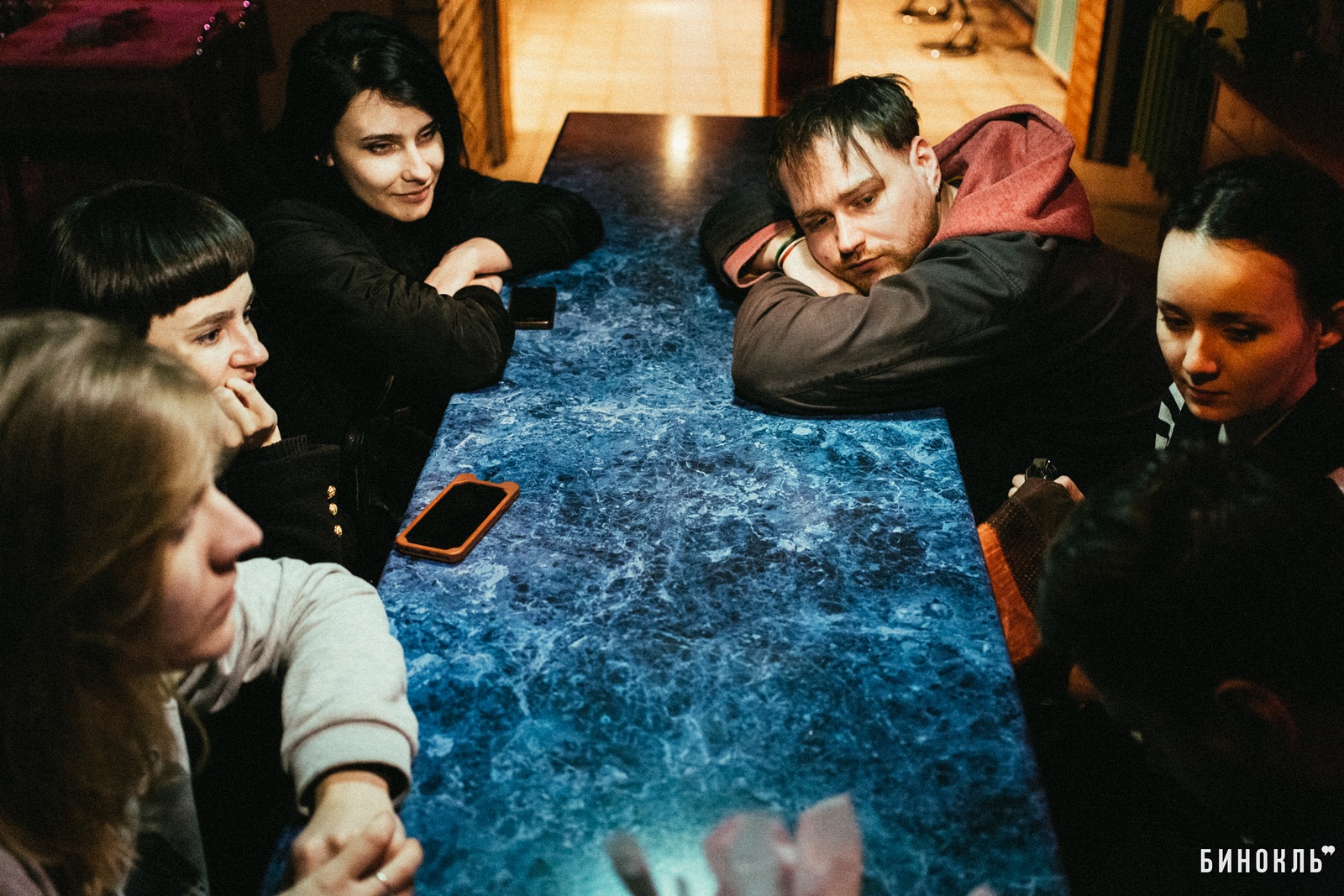 Рома тут же предложил сбегать в “Евроопт” и приобрести лампочку, тем самым посодействовав освещению привокзального бара. Но мы, как истинные приверженцы DIY-философии, решили сделать всё сами. Так телефоны с включенными фонариками оказались в подвешенном состоянии рядом с лампами.