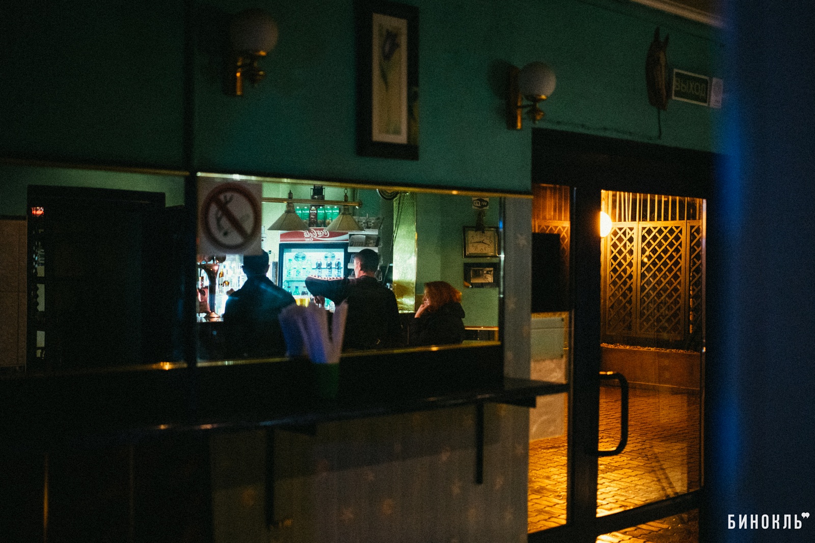 На просьбу сделать немного потише, автор услышал невозмутимое: “Можно громче!”. За этой фразой последовала более мягкая: “Пока людей нет, сделаю тише”. Люди, кстати, не спешили посетить статусное заведение. Со временем в баре грустно разместилась компания из трёх женщин и одинокий мужчина.