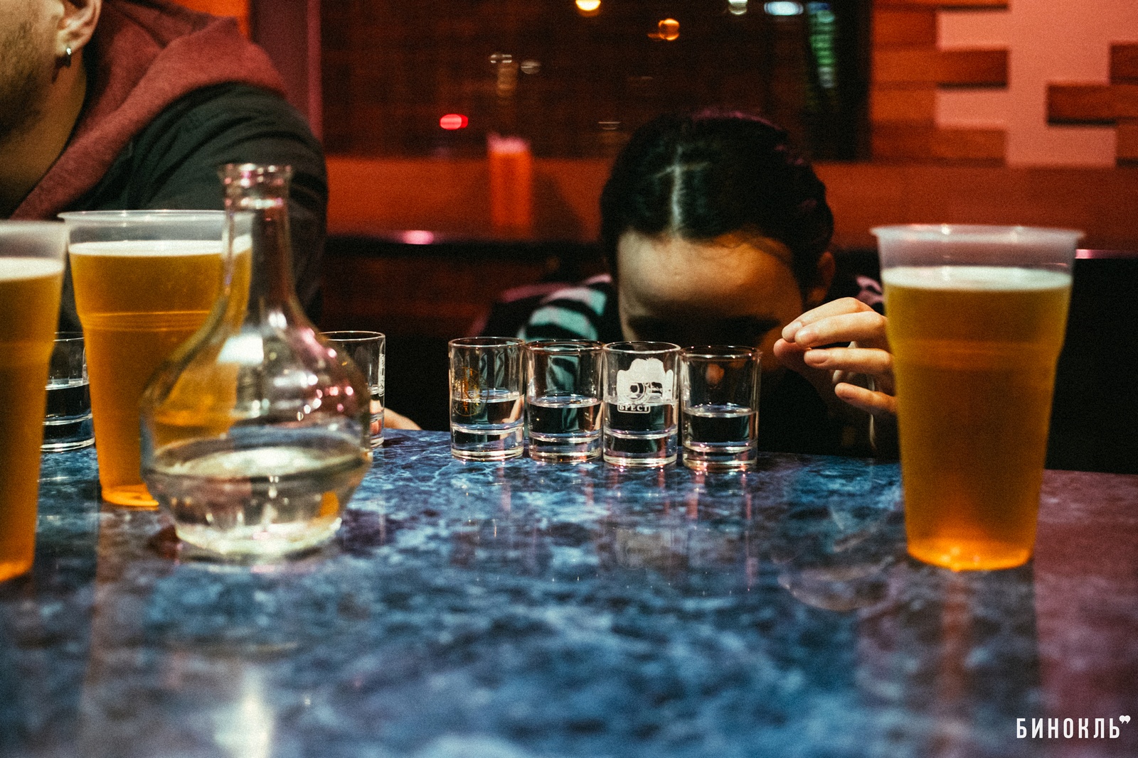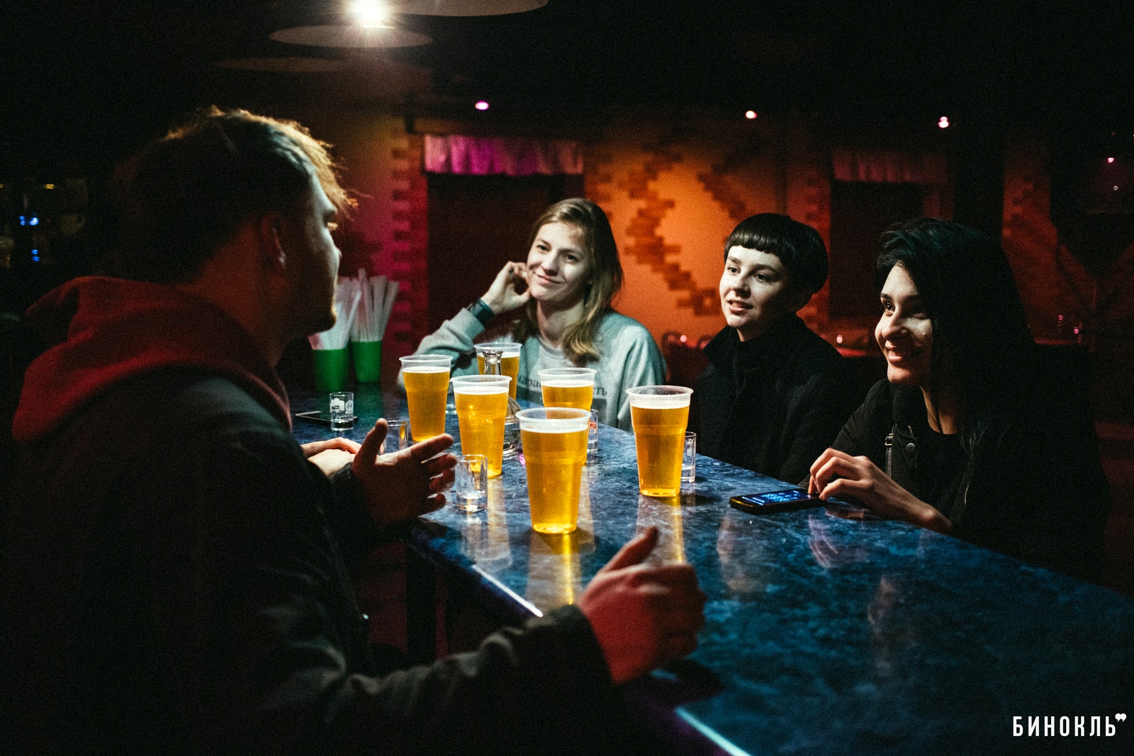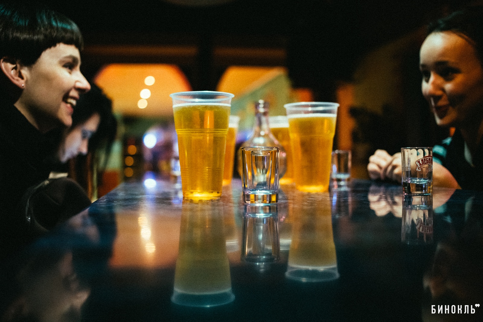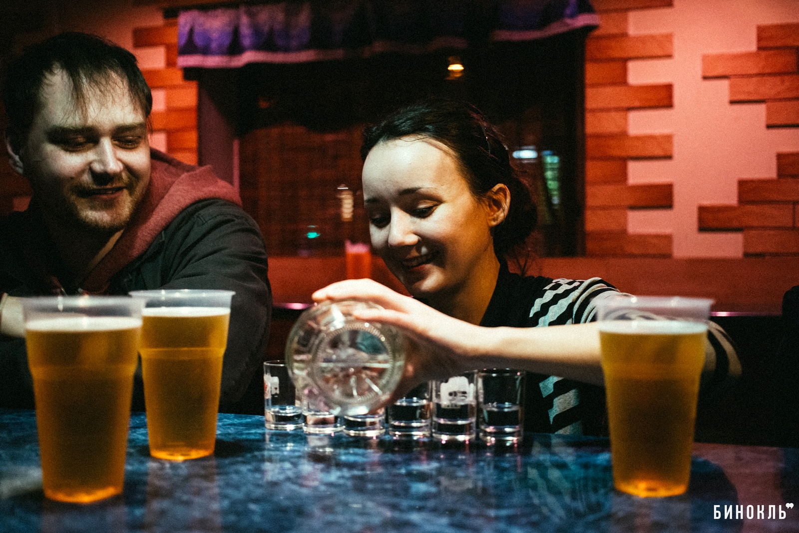 Пока пицца готовилась, мы решили заказать себе лёгкую закуску в виде сухариков, которые, к слову, висели над барной стойкой и были закреплены на нитке при помощи прищепок. Как только мы вооружились закуской и спиртным, последовал первый тост: “За милых дам!”. Всё как всегда и в лучших традициях: сначала водка, потом пиво. Отличный вариант и бюджет подходящий.