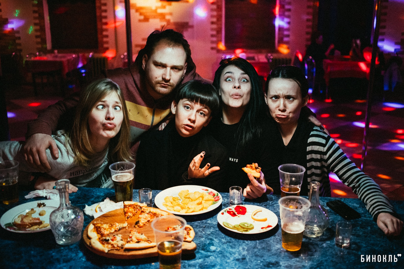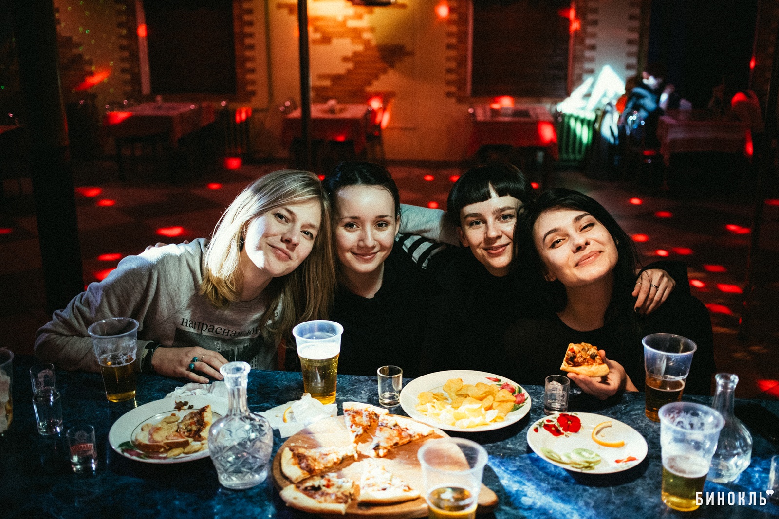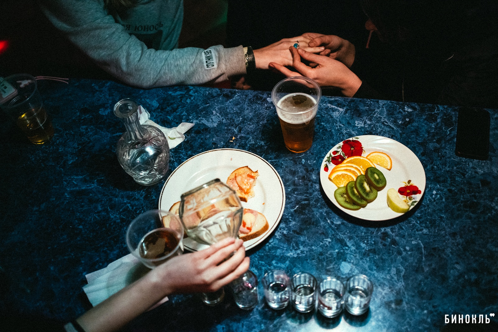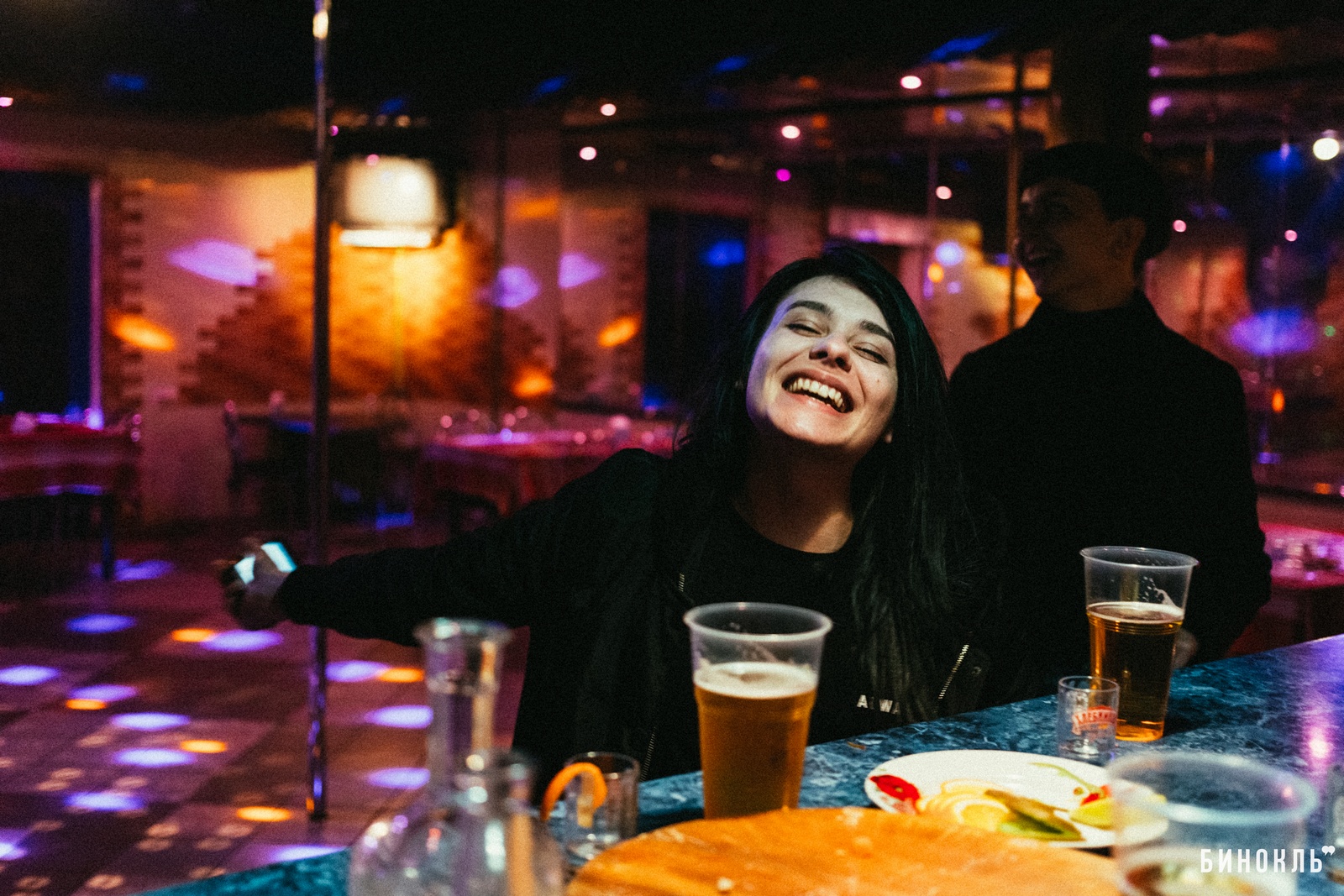 К этому времени нам принесли пиццу и бутерброды, а в качестве десерта фруктовую нарезку. Алкоголь таял так же быстро, как снег под ливнем, и нужно было что-то делать. И вот здесь мы взяли грех на душу и достали пиво, принесённое с собой. Да, мы плохие люди, но на дворе дождь и кризис, а продолжения праздника уж очень хотелось.И он наступил в полной мере, когда заиграла Sia. Под неё в пляс пустилась вся наша компания, женщины и тот самый одинокий мужчина, отчаянно пытавшийся найти себе друзей на вечер. Пилоны, конечно же, не остались без внимания, и вокруг них даже были исполнены своего рода танцы, пусть слегка неловкие и неумелые.