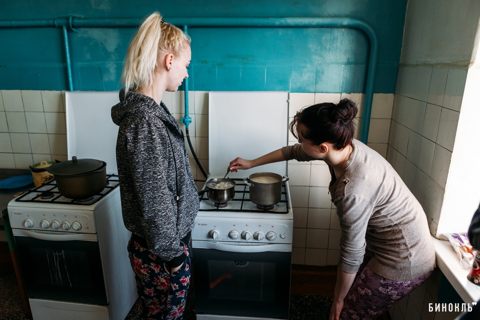 В общежитие нас проводит одна из участниц нашего теста – Алёна. Она показывает нам кухню, на которой будет проходить наш эксперимент. Пока закипает вода, мы занимаемся поиском студентов.