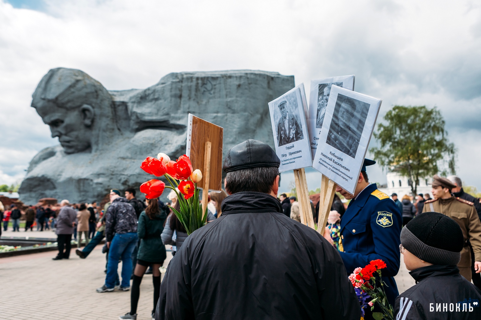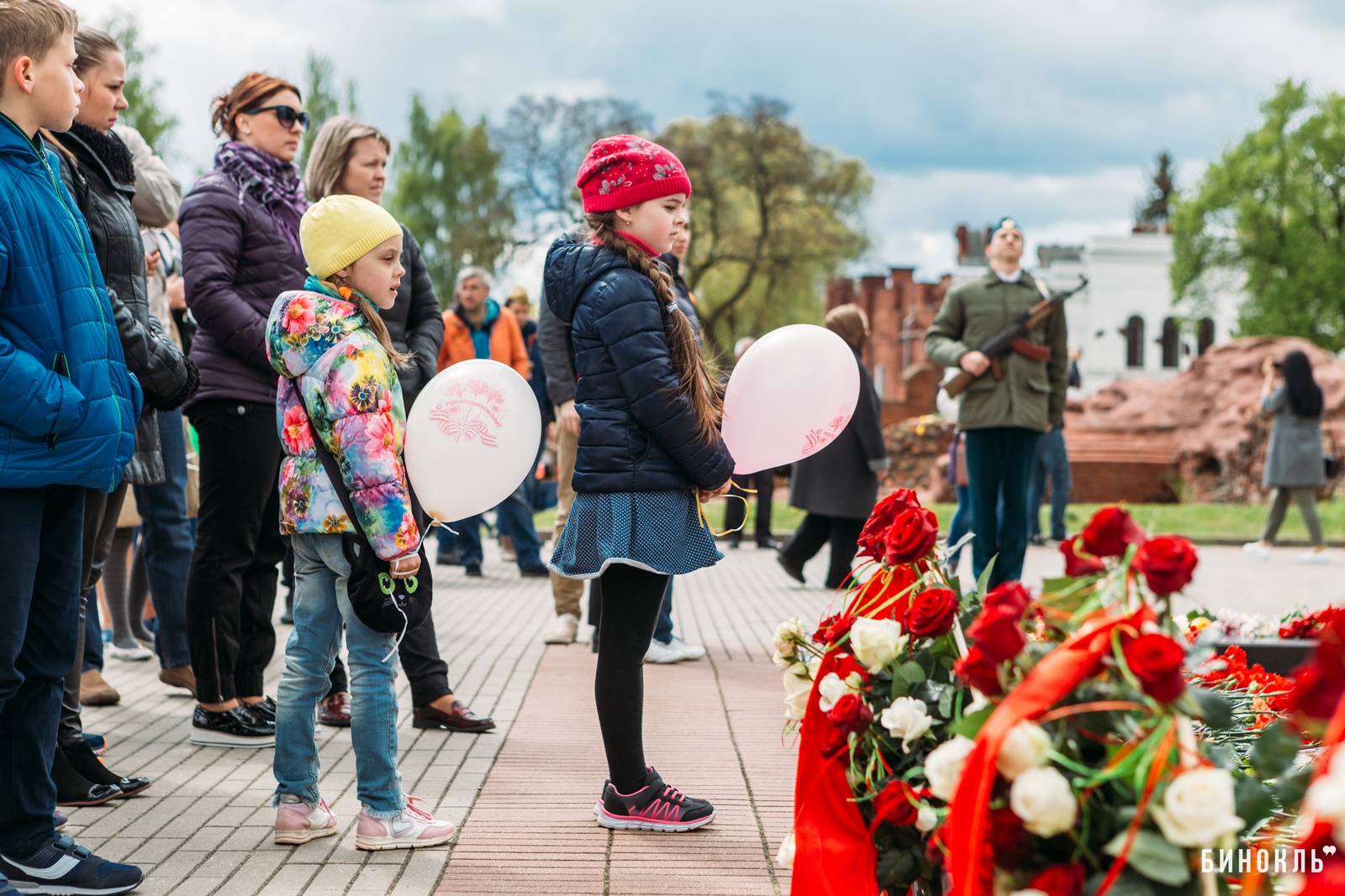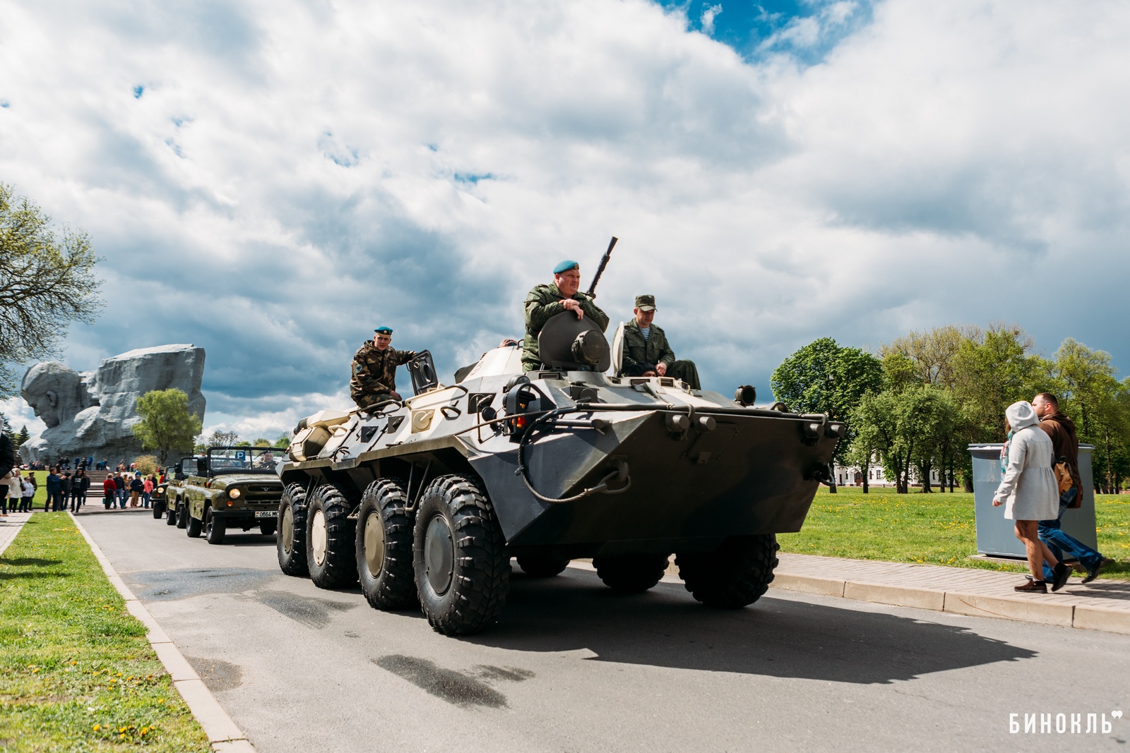 Подъезд к крепости традиционно встретил сотрудниками ГАИ и шествием с плакатами воевавших родственников. Мы припарковались у Северных ворот рядом с патриотически настроенными автолюбителями, собравшимися «На Берлин». Выйдя из машины, наша команда направилась к Вечному огню.