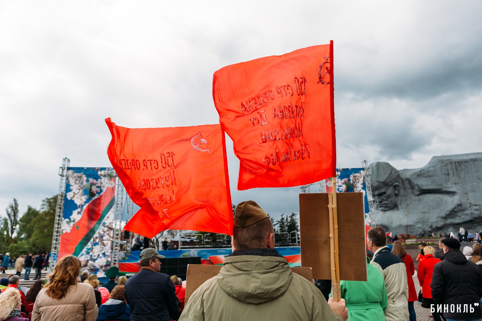 Пресса интенсивно покидала крепость, вместе с ней – вероятно, все, кто пришел сюда сегодня не по своей воле. В сердце крепости, возле Вечного огня было многолюдно и многознамённо. У подножия была оборудована сцена. Молодой человек в белом костюме бодро наигрывал на баяне мелодии фронтовых лет перед благодарной аудиторией ветеранов.