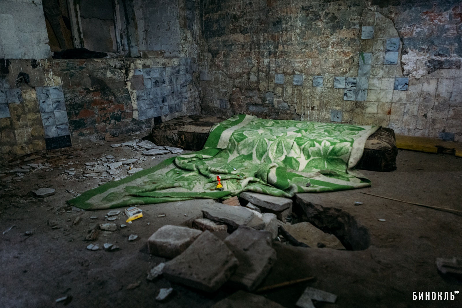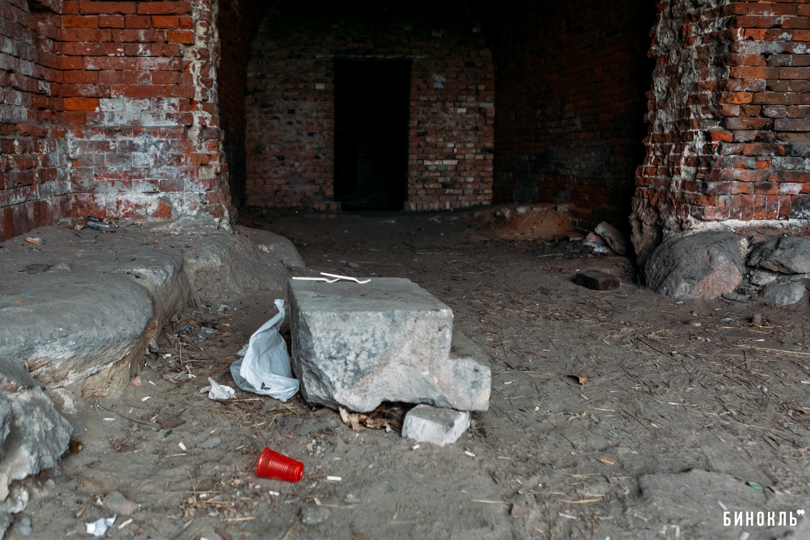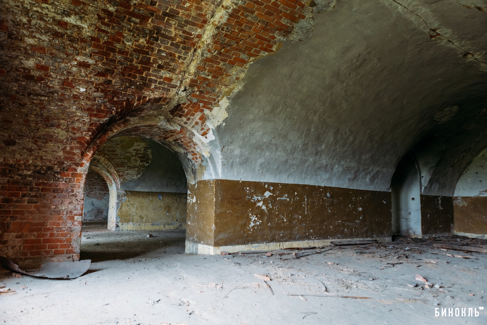 Обследуя укрепление, мы вышли к реке, где на другом берегу компания надрывала голос песнями военных лет. Часы показывали 12:15, а разухабистость молодых людей — пару промилле алкоголя в крови. Выбираясь из капонира, в поисках нужного коридора, мы обнаружили комнату со спальным местом. Хозяина застать не удалось.