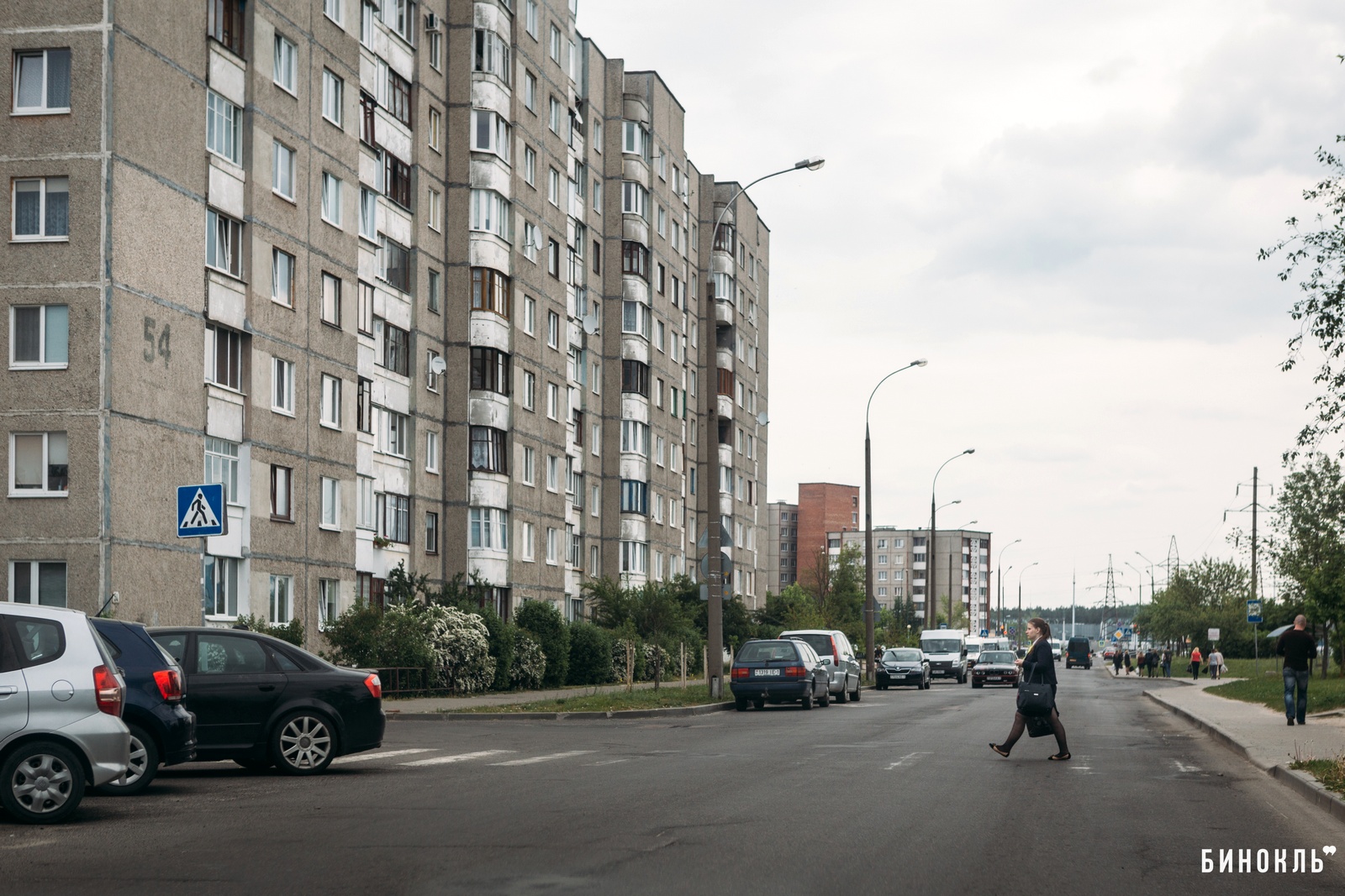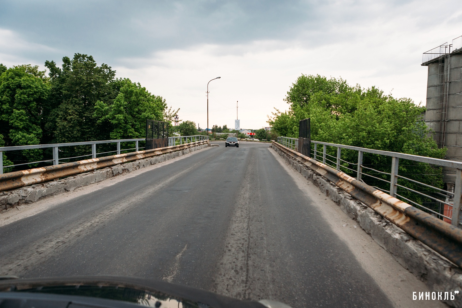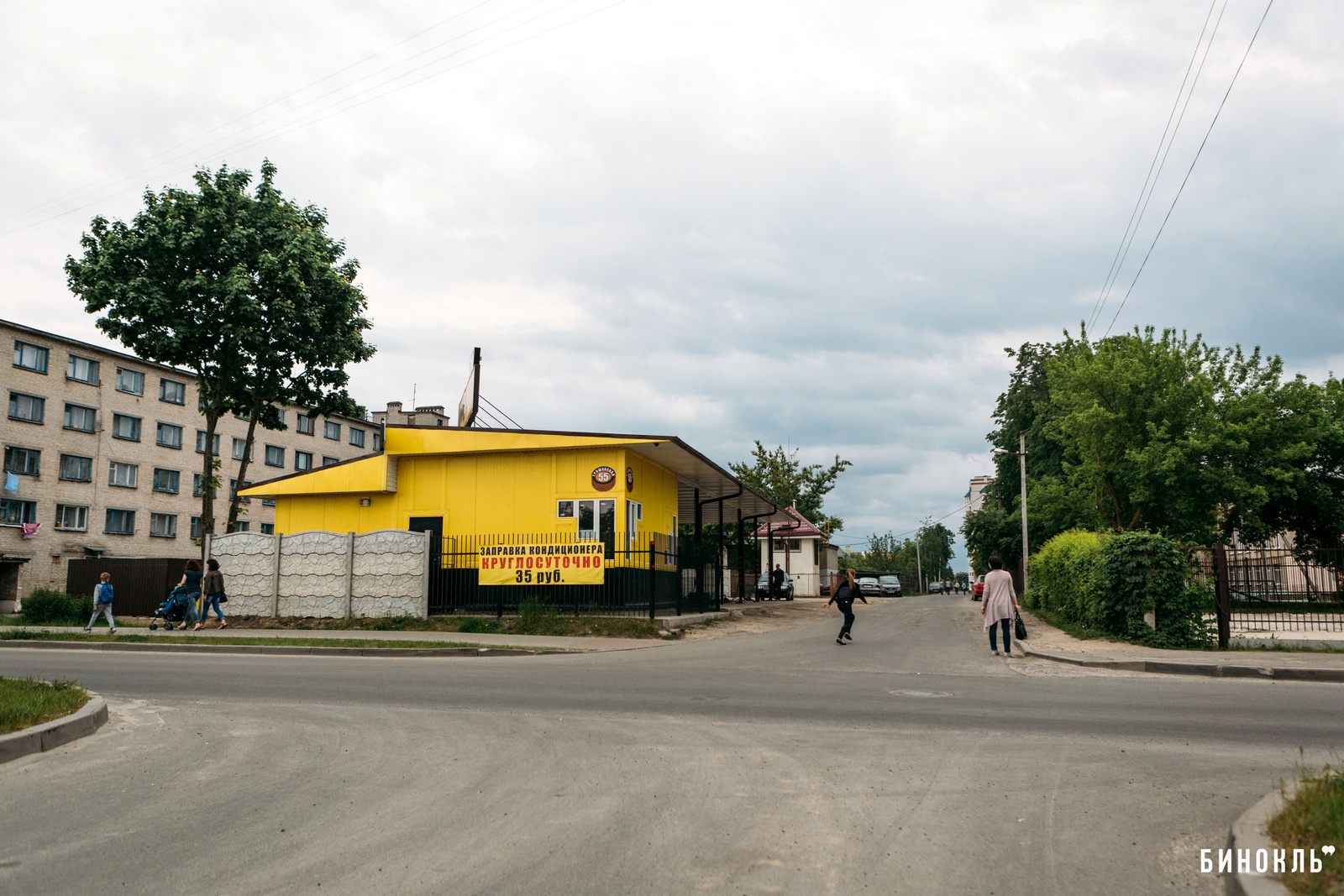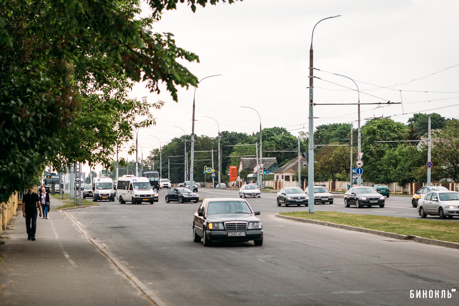 Мы выезжаем на Янки Купалы, где идёт ремонт дороги. Наш собеседник замечает, что при строительстве обделили велосипедистов, не сделав им дорожек. Александр сворачивает в сторону автопарка и показывает нам один из самых бессмысленных пешеходных переходов, на его взгляд. Ведёт он из одного забора в другой.