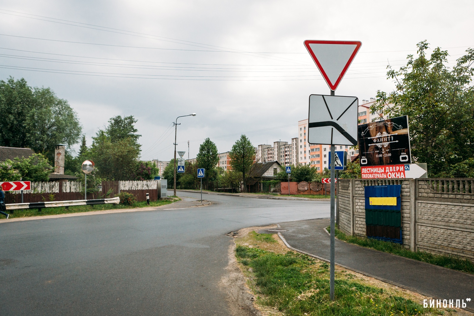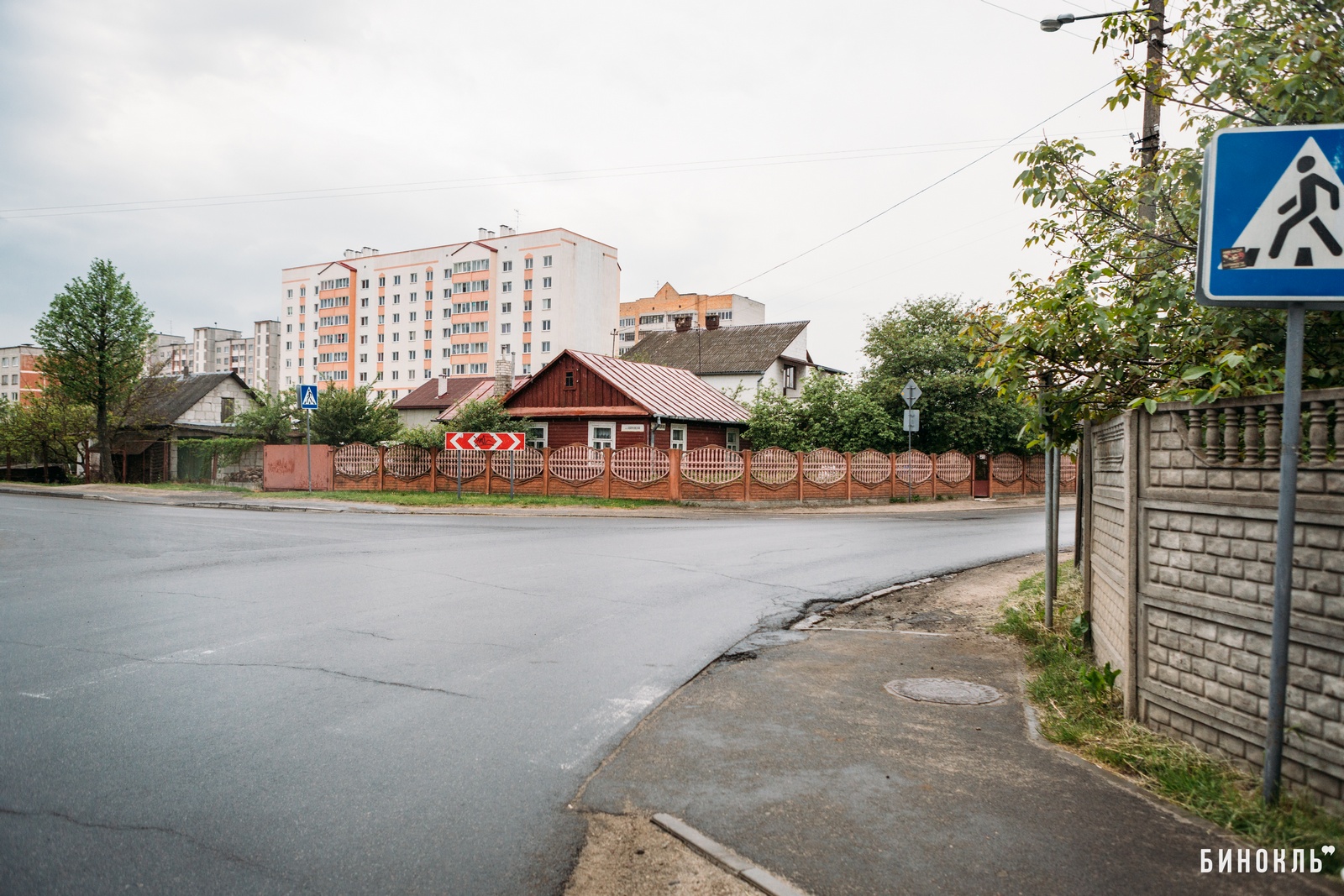 Последним пунктом нашей поездки стал зубодробительный перекрёсток на улице Речицкой. Александр рассказывает, что в одном из домов живёт его одногруппница, которая как минимум шесть раз наблюдала, как машины врезались в забор её дома.