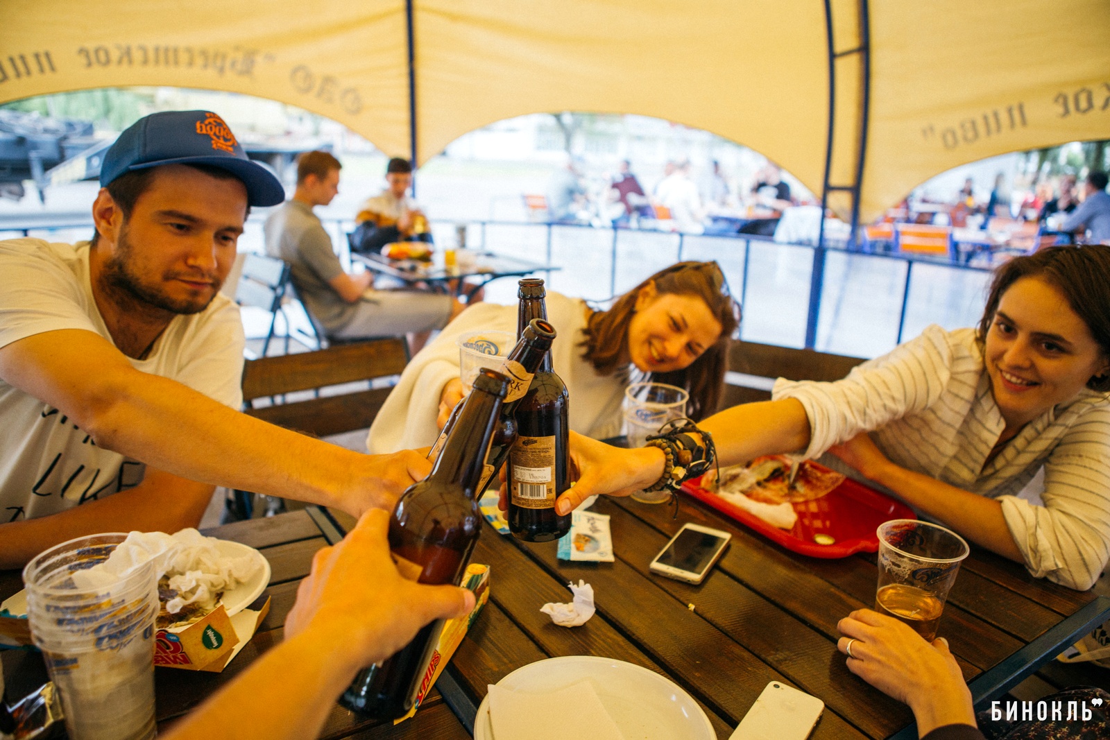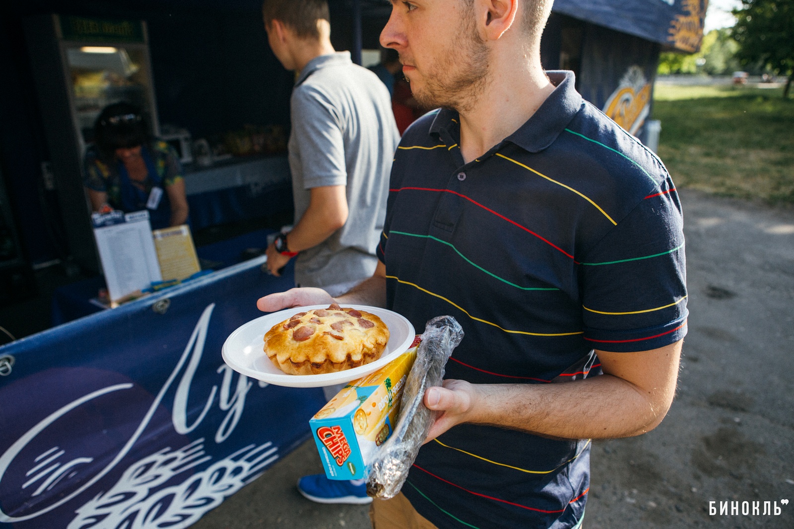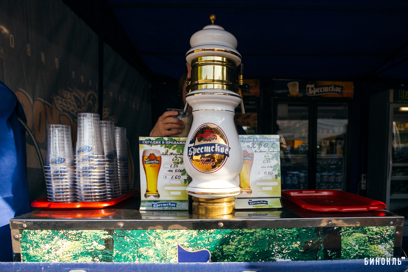 На часах было 18:30, а очередь за разливным напитком организовалась знатная. Бросив все свои вещи и участника нашей боевой команды в качестве сторожа, мы пошли делать заказ. За время нахождения в очереди можно было бы успеть прослушать лекцию Лотмана о возникновении культурной прослойки, настолько медленно двигалась колонна из людей. Виноваты были не женщины-бармены, а пена брестского жигулевского, густоте которой позавидовали бы йогурты с нулевым процентом жирности. Когда очередь дошла до нас, мы сделали свой первый заказ на этот вечер: