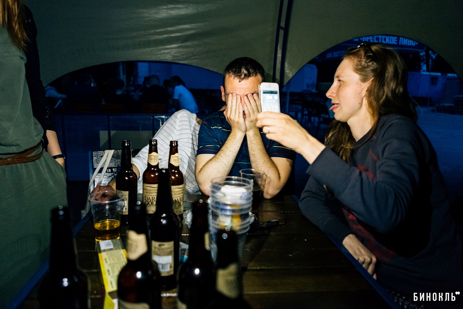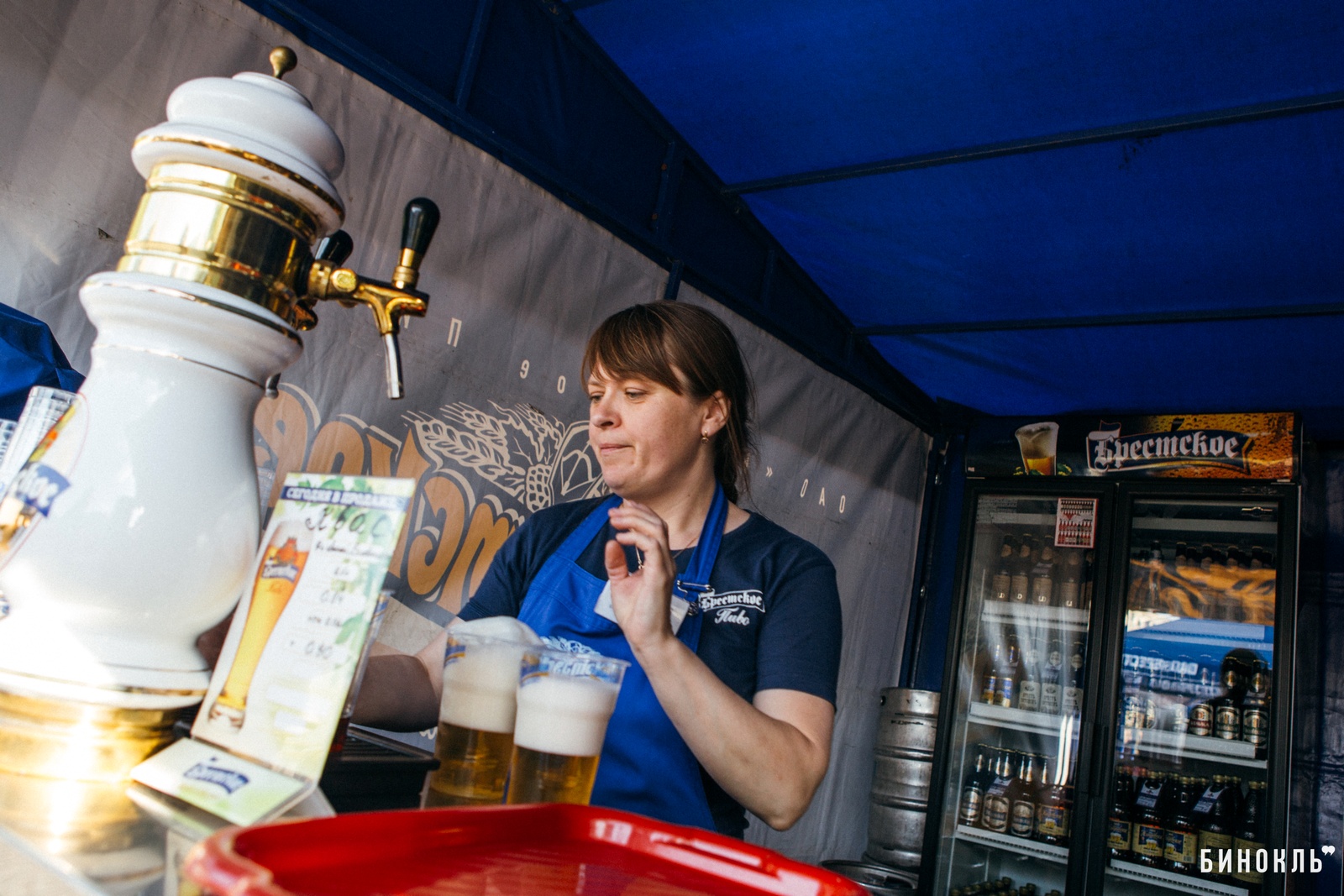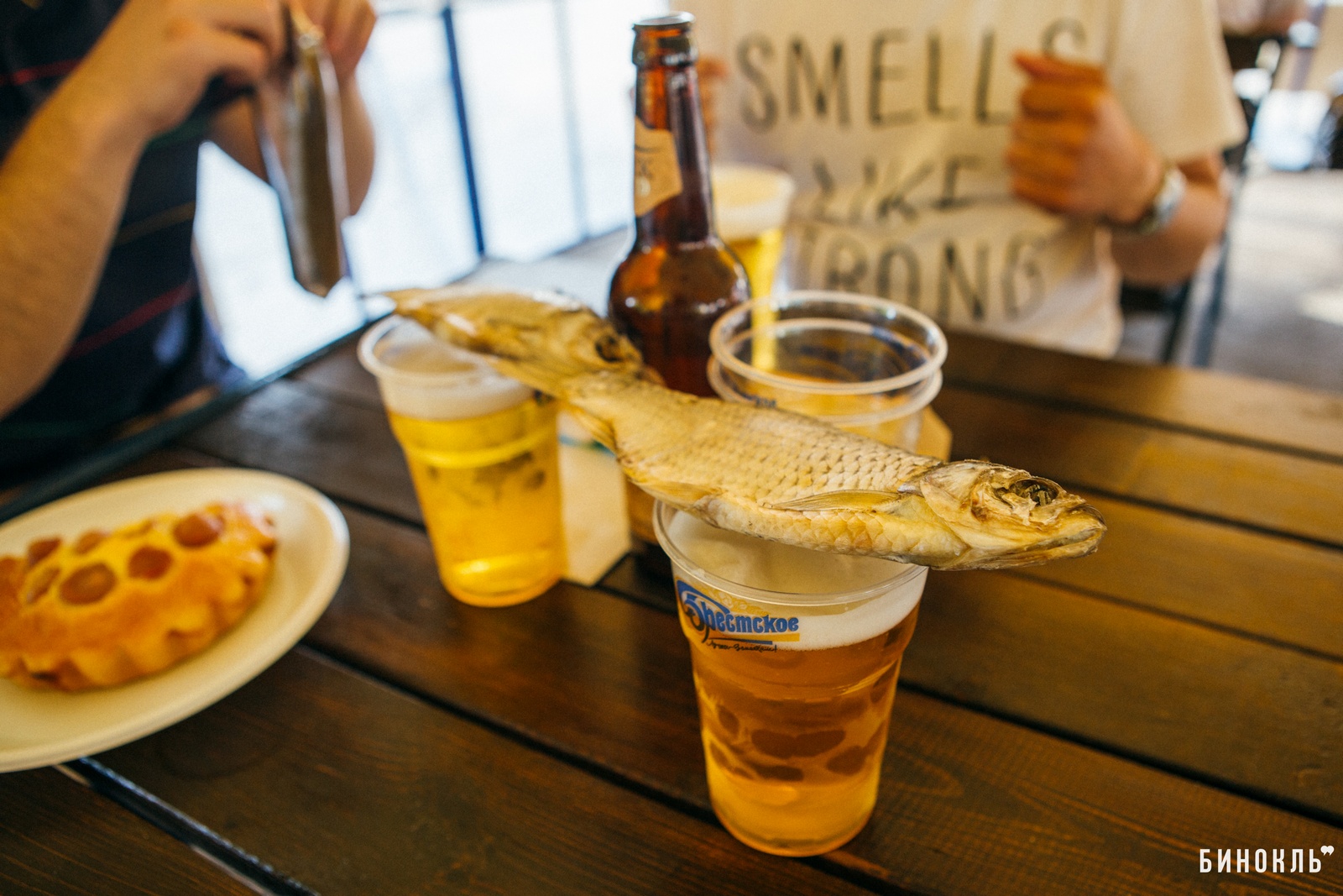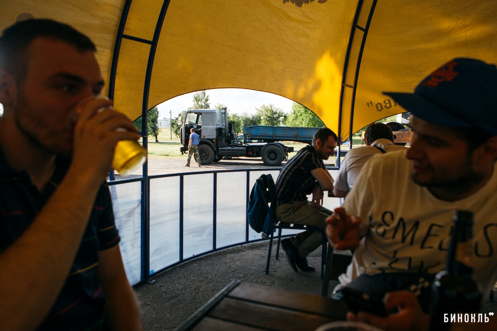 На часах было 18:30, а очередь за разливным напитком организовалась знатная. Бросив все свои вещи и участника нашей боевой команды в качестве сторожа, мы пошли делать заказ. За время нахождения в очереди можно было бы успеть прослушать лекцию Лотмана о возникновении культурной прослойки, настолько медленно двигалась колонна из людей. Виноваты были не женщины-бармены, а пена брестского жигулевского, густоте которой позавидовали бы йогурты с нулевым процентом жирности. Когда очередь дошла до нас, мы сделали свой первый заказ на этот вечер: