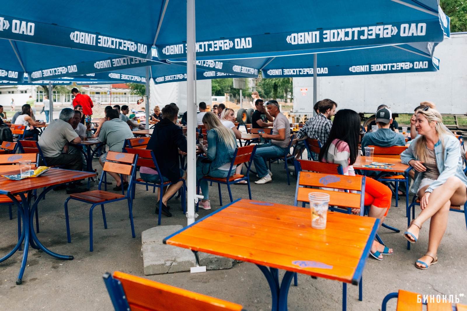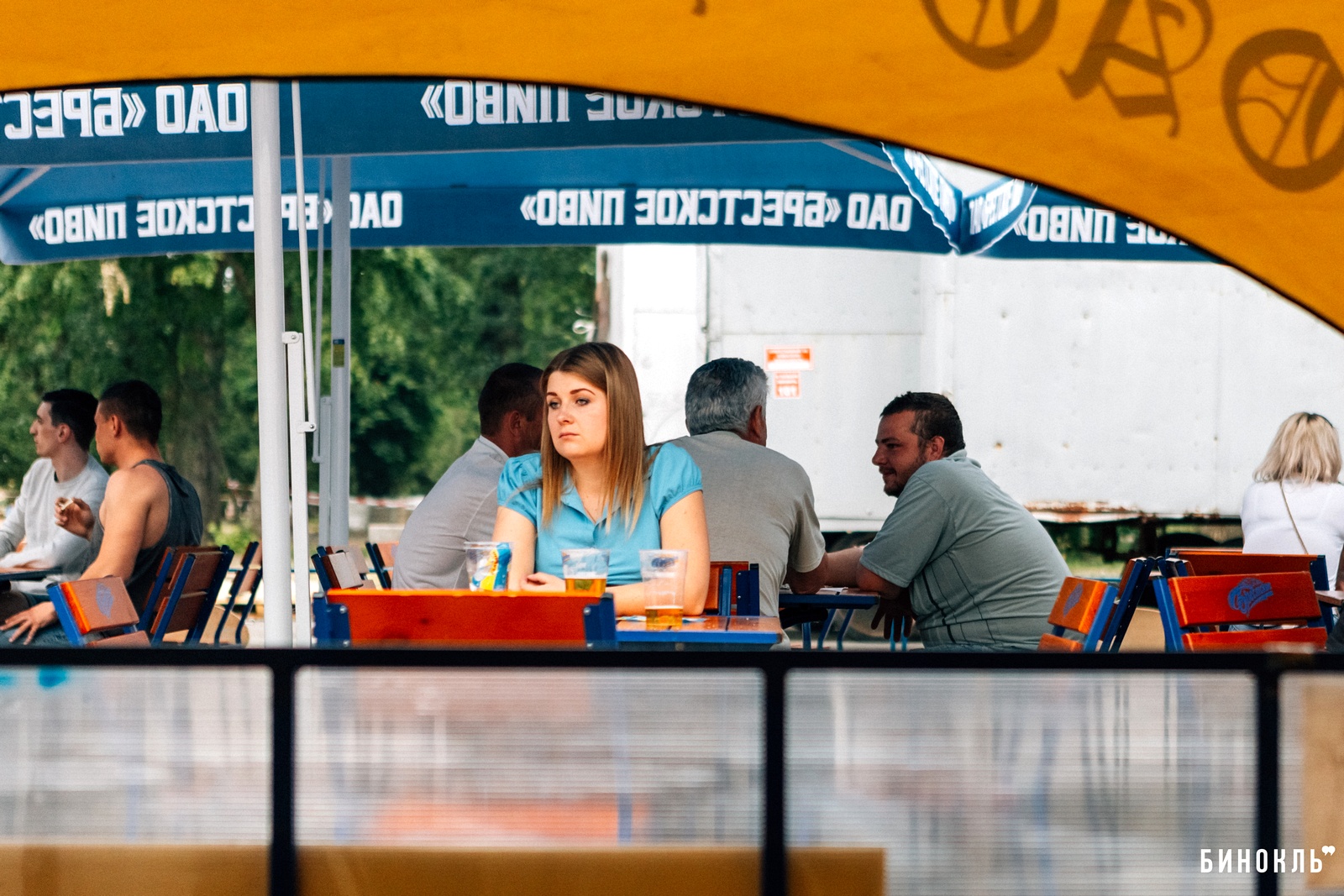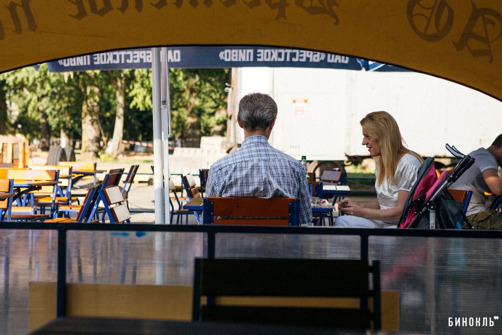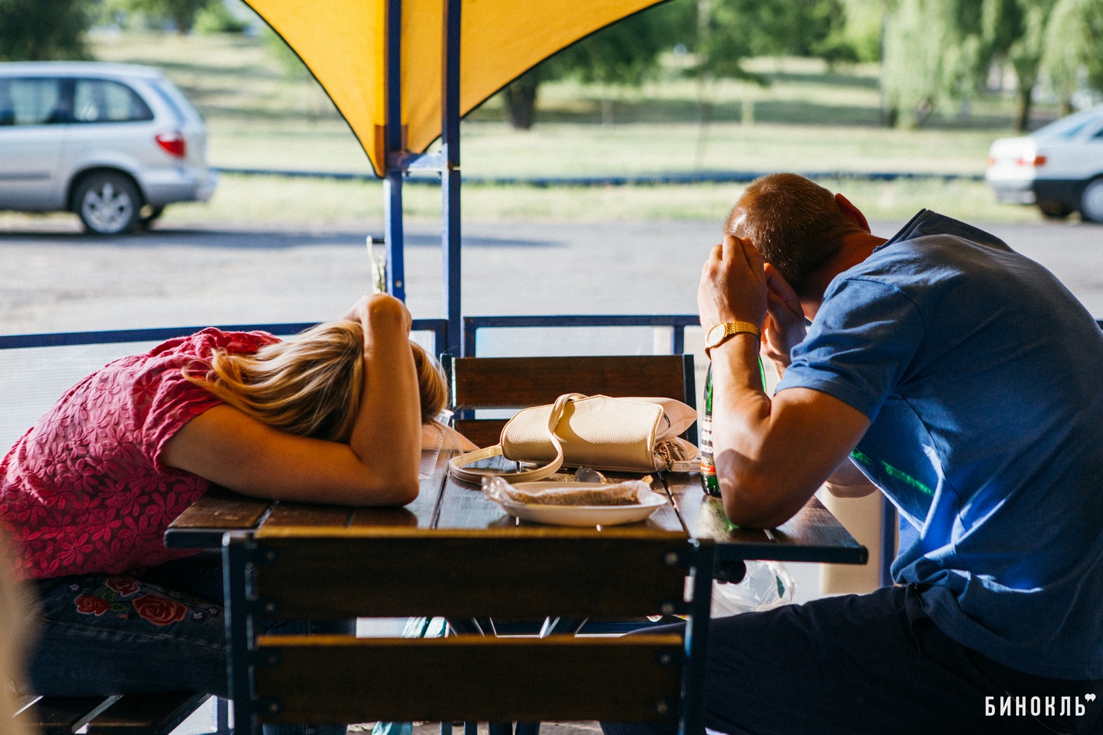 Пока мы скромно трапезничали смаженкой и свежей краснопёркой, за соседним столом намечался откровенный пир. К кафе подъехал автомобиль, из которого начали выносить вкусно пахнующие блюда и алкоголь. «Не иначе, как свадьба или юбилей», – подумали мы и немножечко ошиблись. Оказалось, что работники «Брестского пива» приехали отмечать 34-хлетие своей сотрудницы. Звучали помпезные тосты, разливалась водочка, а мы на это всё смотрели голодными глазами и ждали, когда гости уйдут, чтобы можно было выхватить бутерброд и закинуть его в вечно растущий организм журналиста. Спойлер: мы этого так и не дождались.