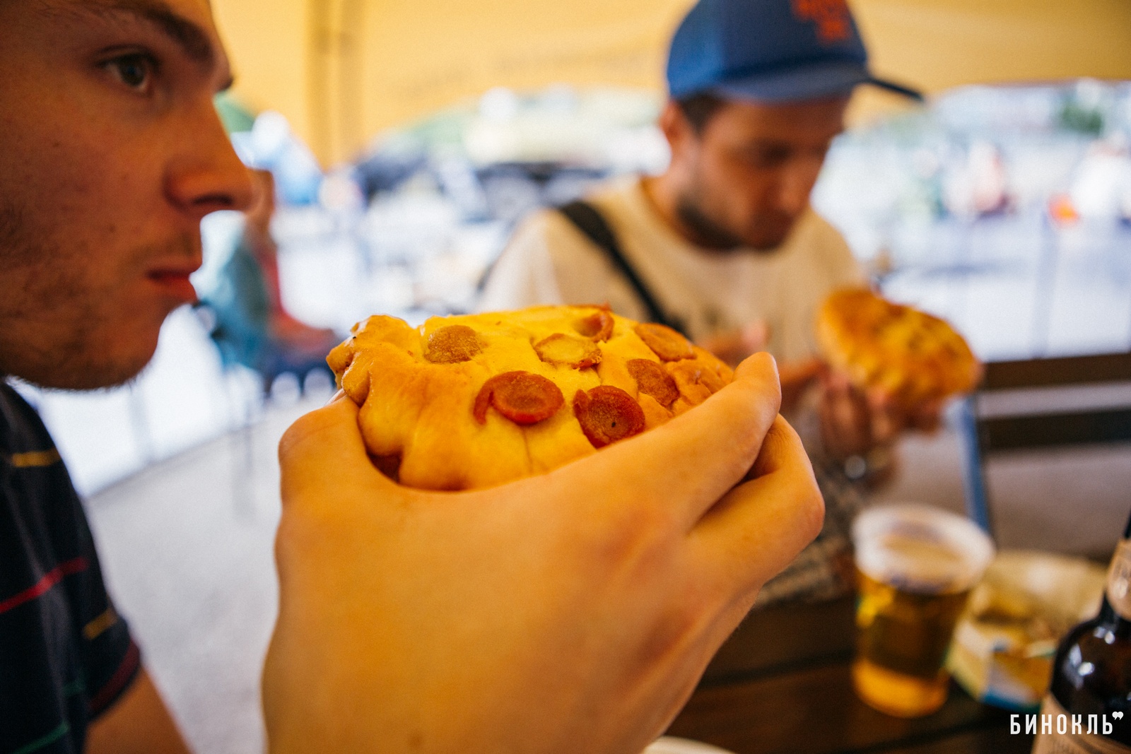 Оно оказалось пышным, как пасхальные куличи, и нам приходилось широко открывать свои рты, чтобы засунуть в них немножечко глютена. Фееричным было то, что в этот большой кусок необъятного теста кулинары положили пару кусочков сосиски. Размеры этих кусков были сравнимы с золотовалютным бюджетом Республики Беларусь в 2017 году. Но это мелочи, которые не особо важны: пышно, каллорийно – и на том спасибо!