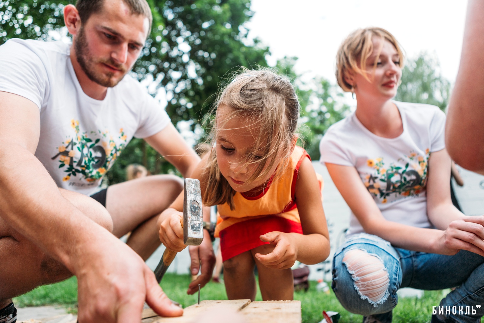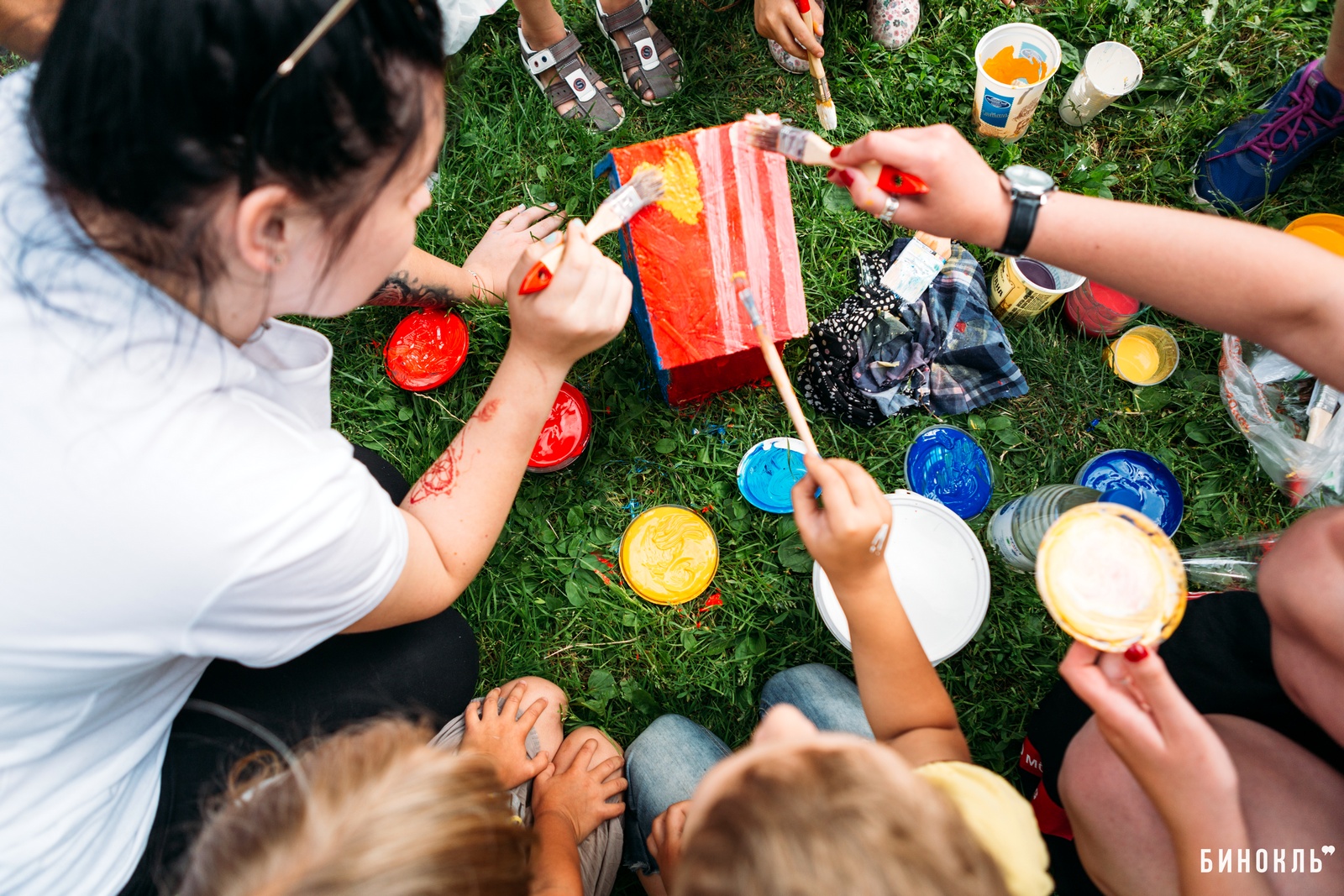Малышам было чем заняться: лепили из глины, соревновались в эстафетах, разрисовывали в несколько кистей вместе с Лёней Василькович стену, сколачивали скворечники и со свойственным возрасту визгом оккупировали обновленную к празднику горку. Ребята постарше, которых в 2000-ые было принято называть тинейджерами, тоже были замечены на празднике. Работала фотозона, буккроссинг от городской библиотеки им. Пушкина и тест-драйв мороженого от концерна “Брестское мороженое”.