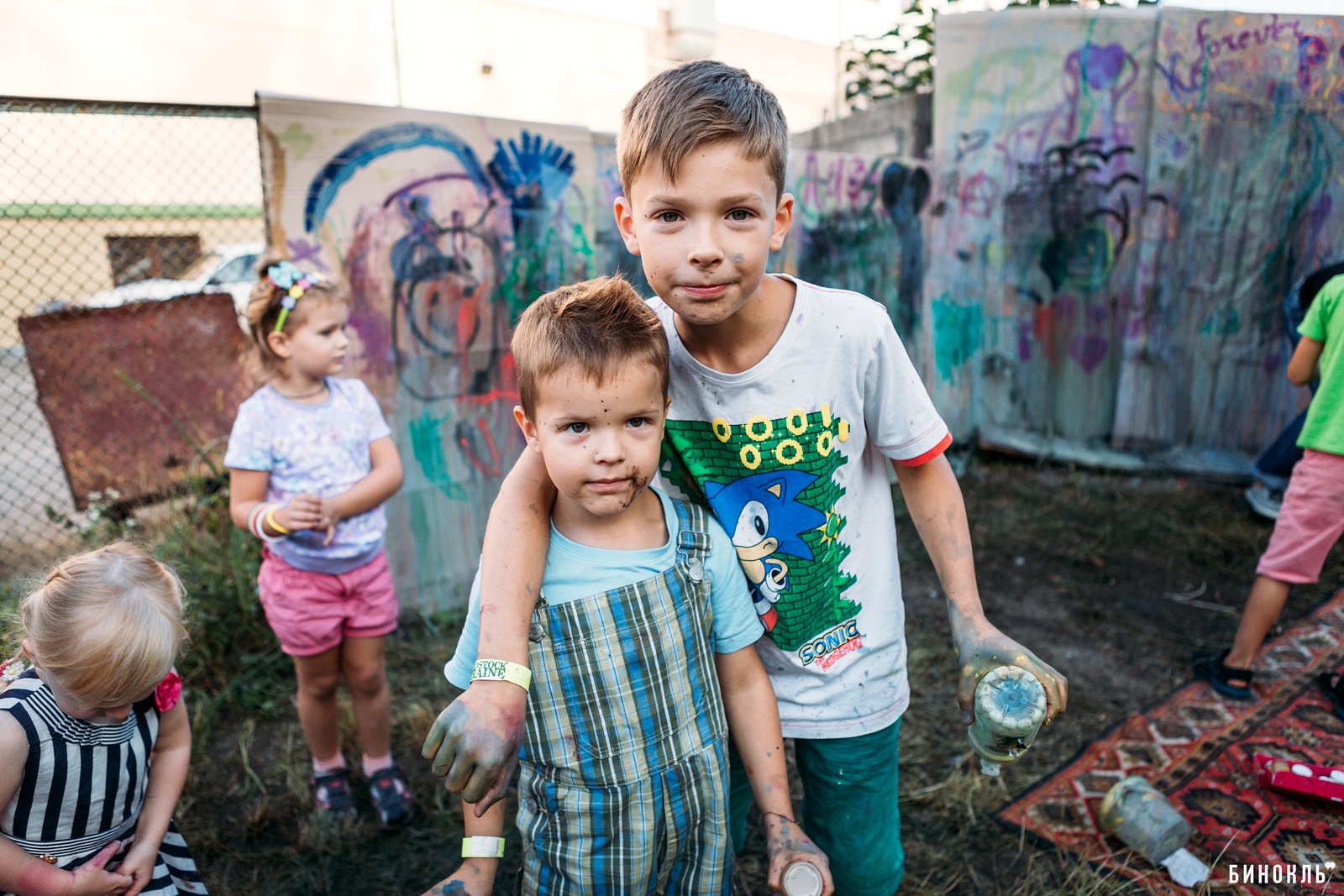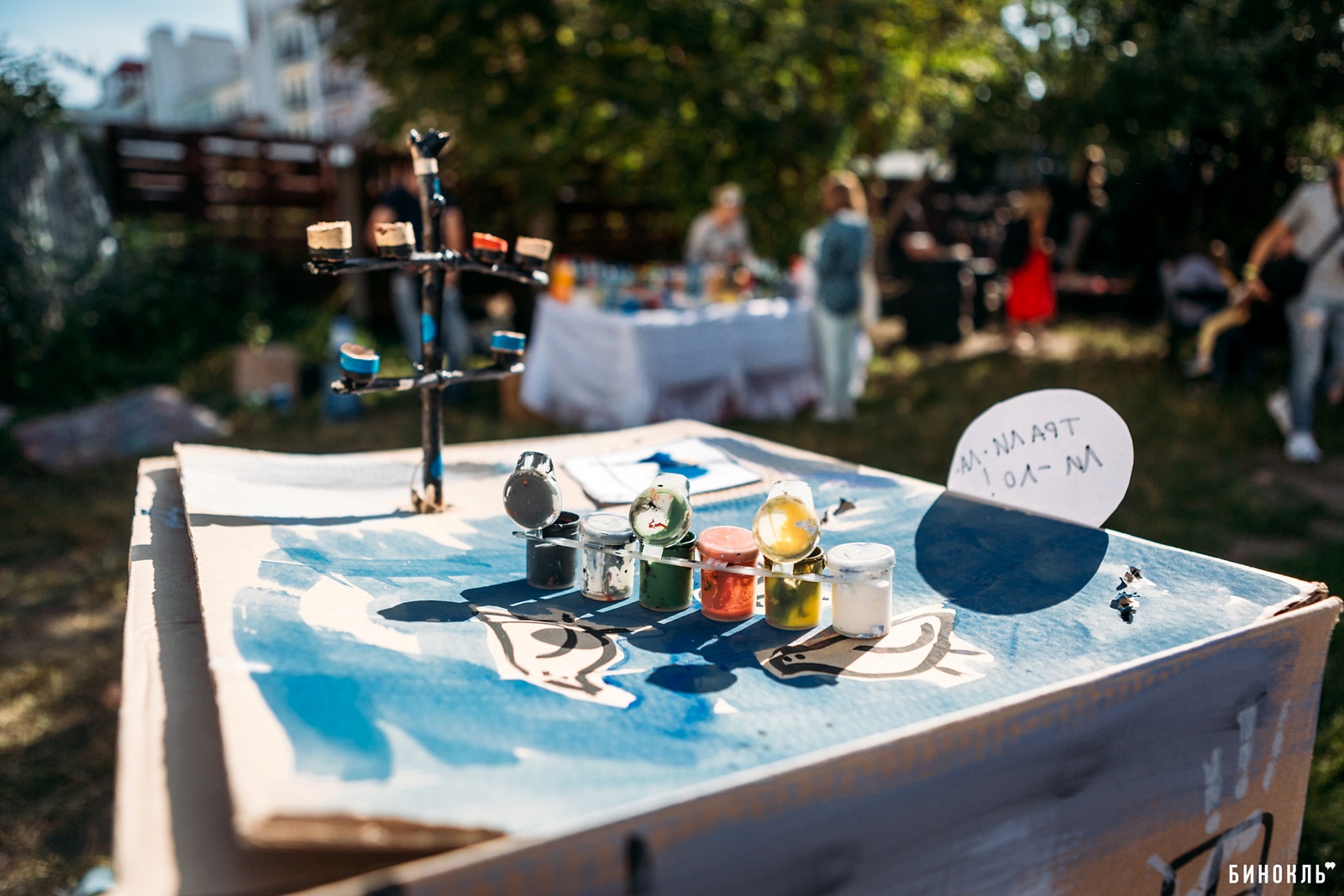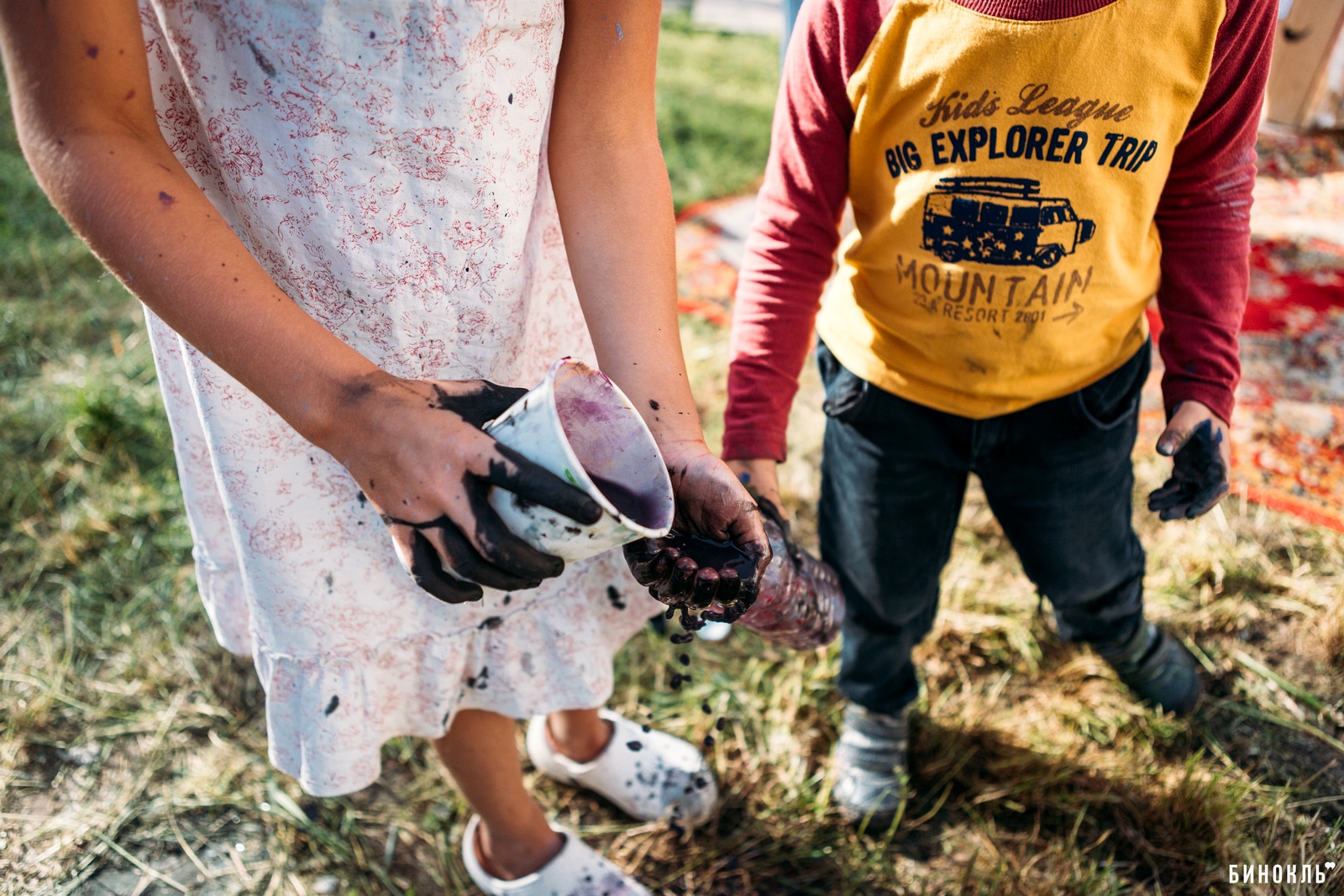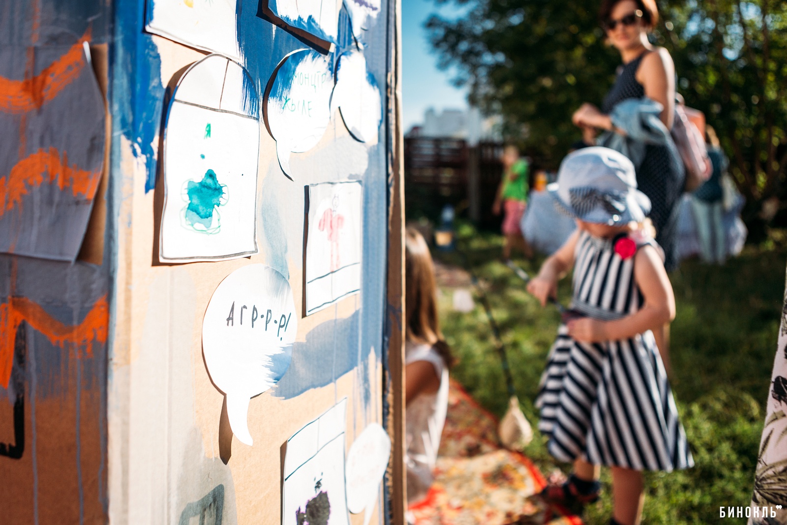Фестиваль, который четвертый раз собирает друзей, привлекая своей атмосферой и локальным лайн-апом, в этот раз проглотил грустинку. Наше появление пришлось на время после детских мастер-классов, отголоски которых в виде хаотично перемещающихся запачканных детей с красками и кисточками в руках можно было наблюдать в течение всего фестиваля. Оля Стрижнёва и Лена Штык знают свое дело: увлечь детей быстро и надолго — задача не из простых.