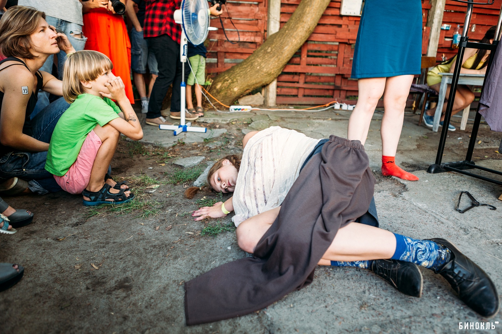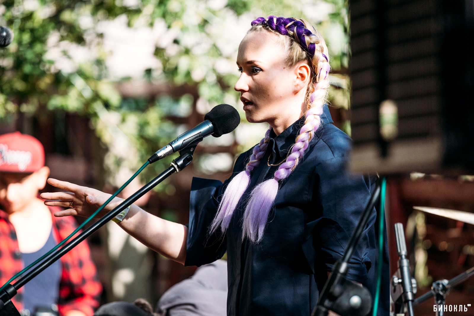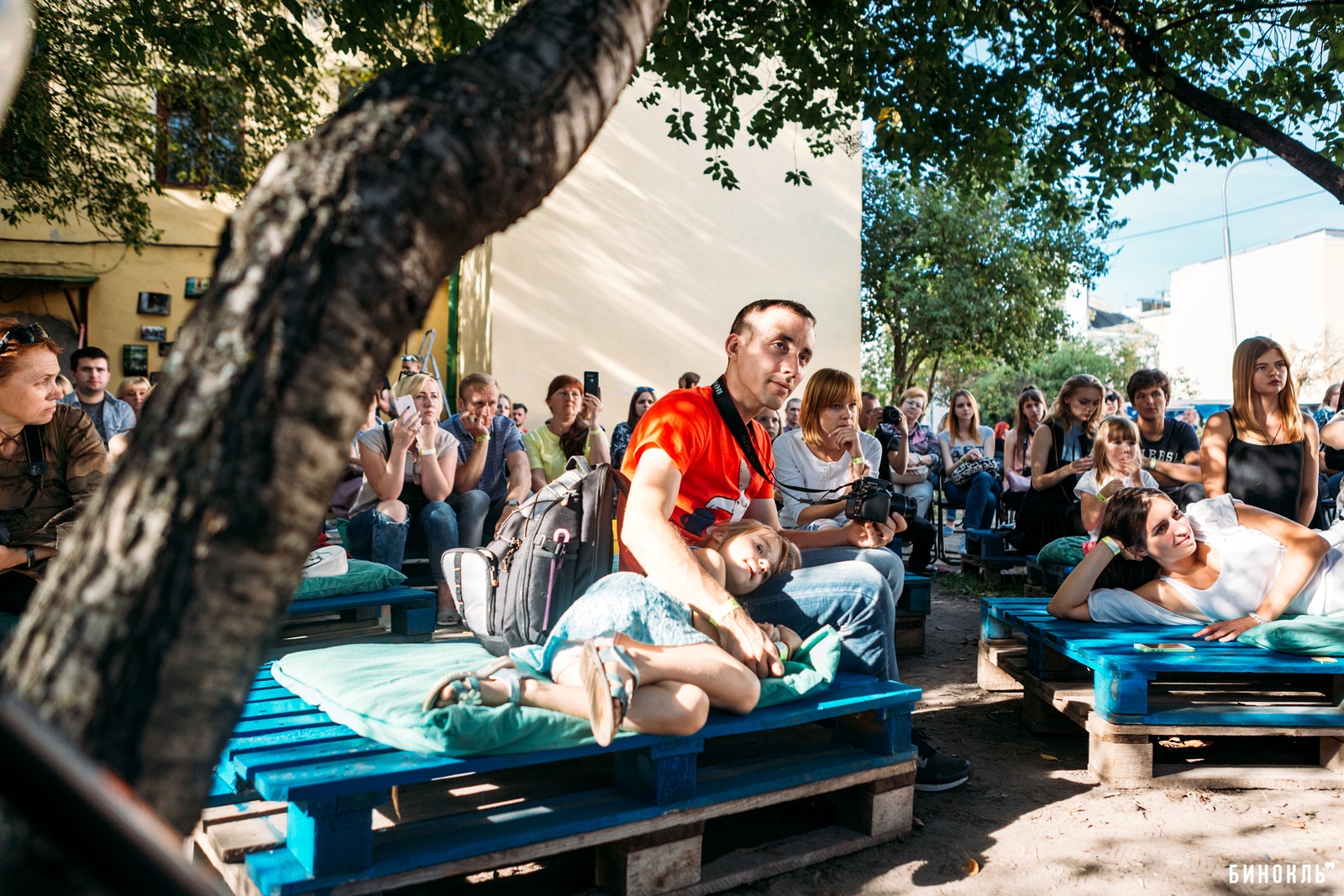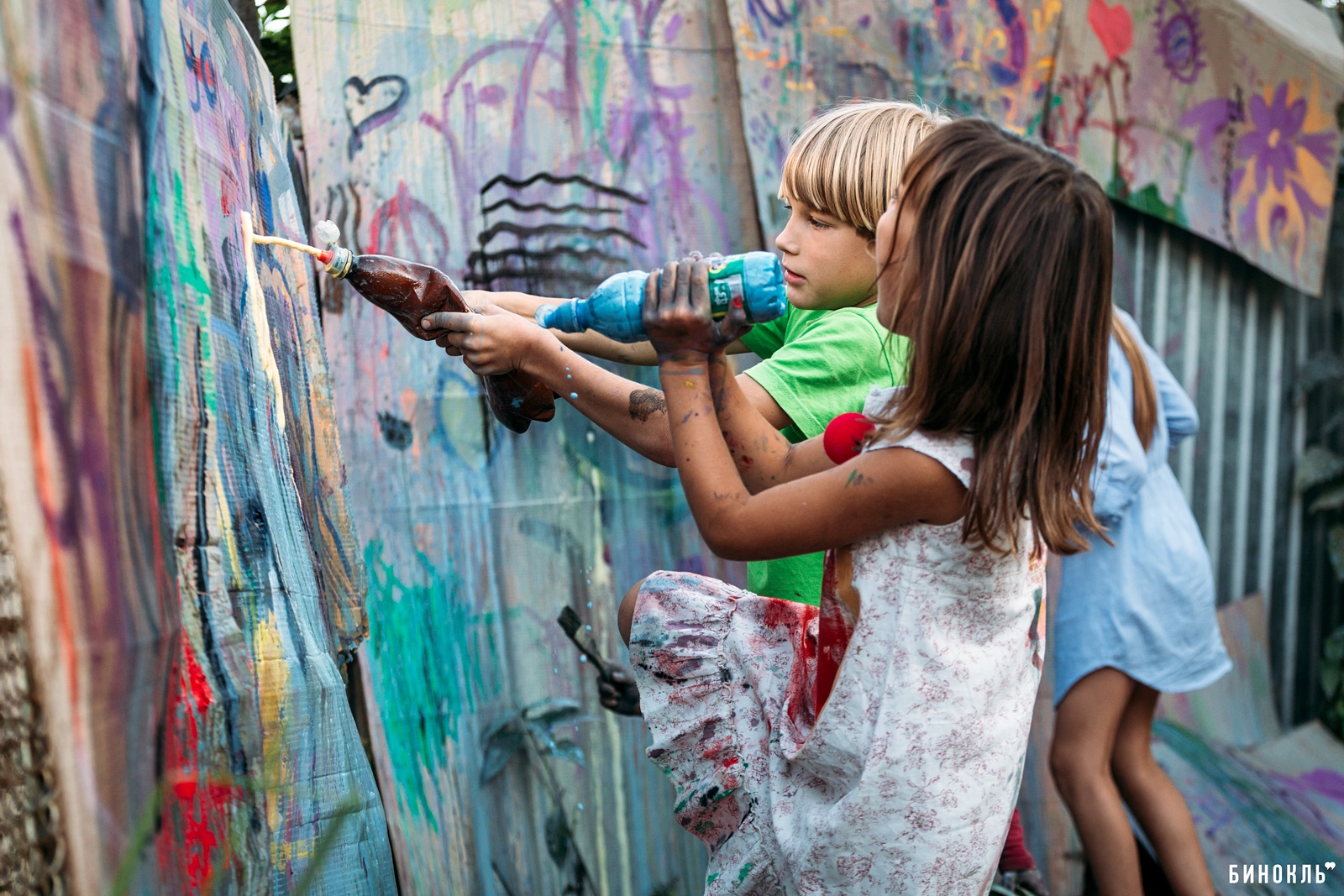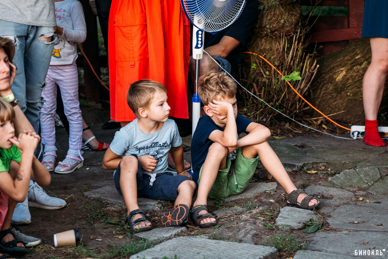 Фестиваль, который четвертый раз собирает друзей, привлекая своей атмосферой и локальным лайн-апом, в этот раз проглотил грустинку. Наше появление пришлось на время после детских мастер-классов, отголоски которых в виде хаотично перемещающихся запачканных детей с красками и кисточками в руках можно было наблюдать в течение всего фестиваля. Оля Стрижнёва и Лена Штык знают свое дело: увлечь детей быстро и надолго — задача не из простых.