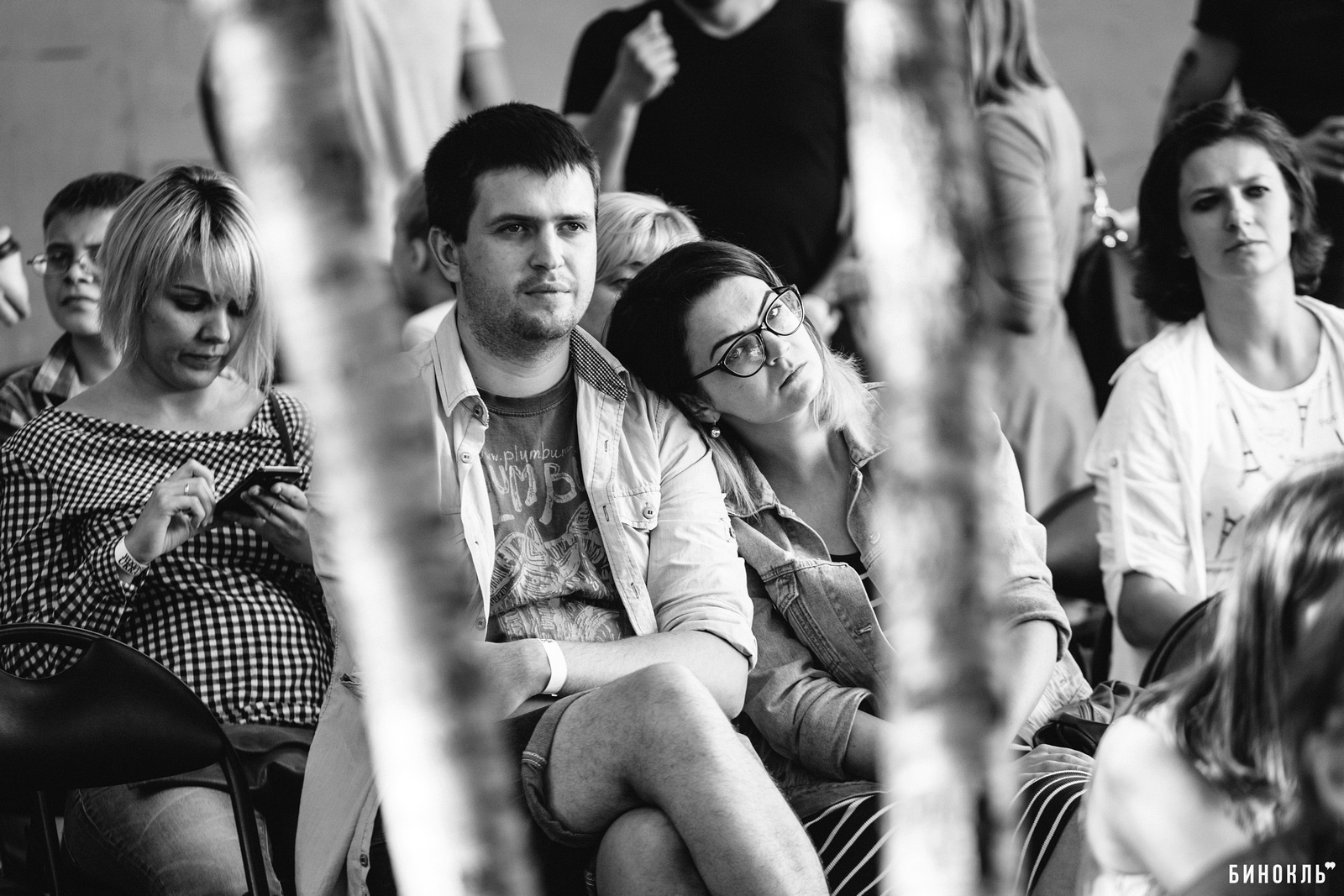 Поэтическая программа задала вечеру тональность философских исканий. Поэты и чтецы делились переживаниями через слово, а переживаний хотелось не всем и не в таком количестве. Особенно теплые эмоции подобный формат вызвал у поколения постарше: можно было наблюдать робкие движения губами в такт словам со сцены и улыбки, растянувшиеся на весь вечер.
