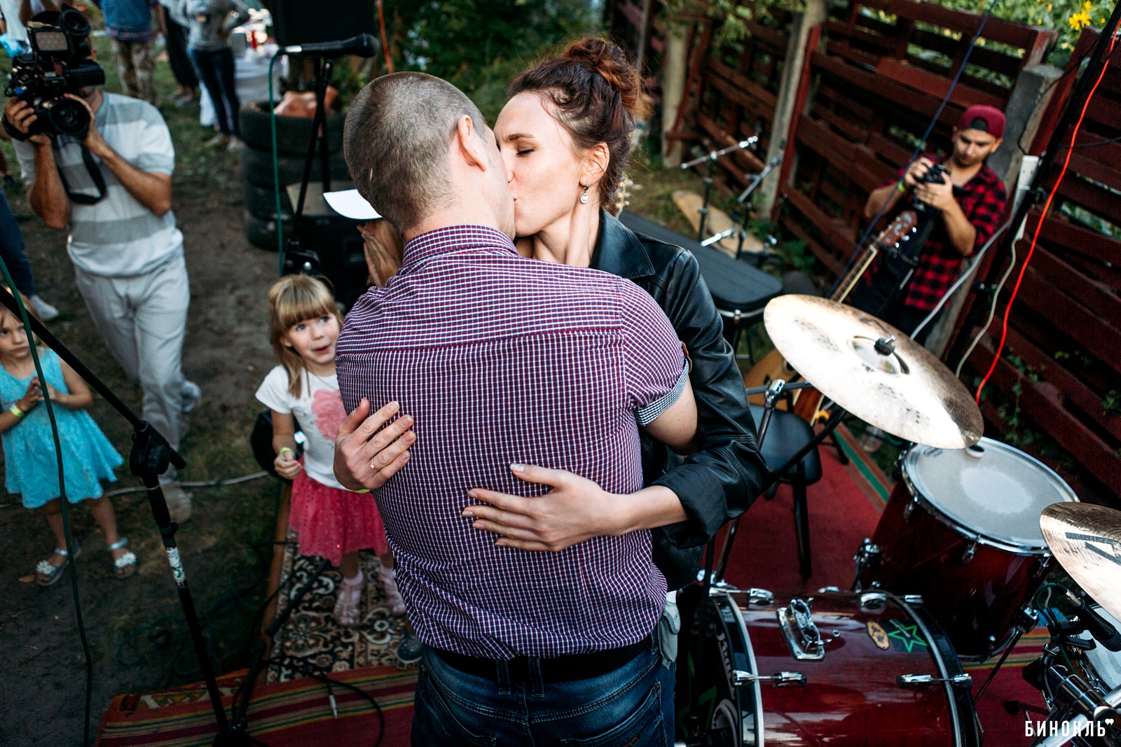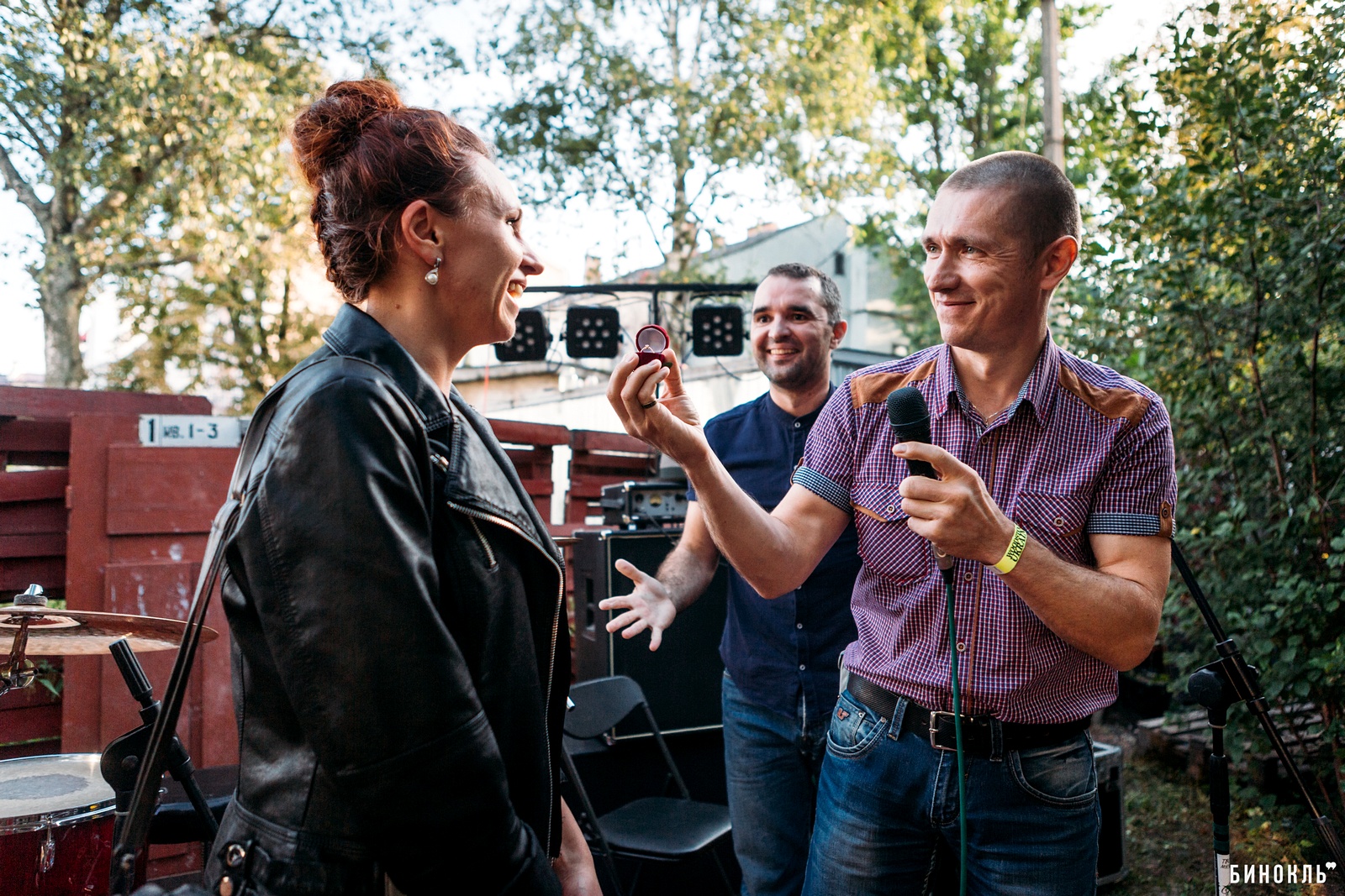 Не обошлось без сюрпризов: прямо со сцены прозвучало предложение руки и сердца. 3 года вместе, 3 года любви — время скрепить отношения узами брака. Вовка Плюмбум обвенчал влюбленных по-цыгански, как умеет только он.