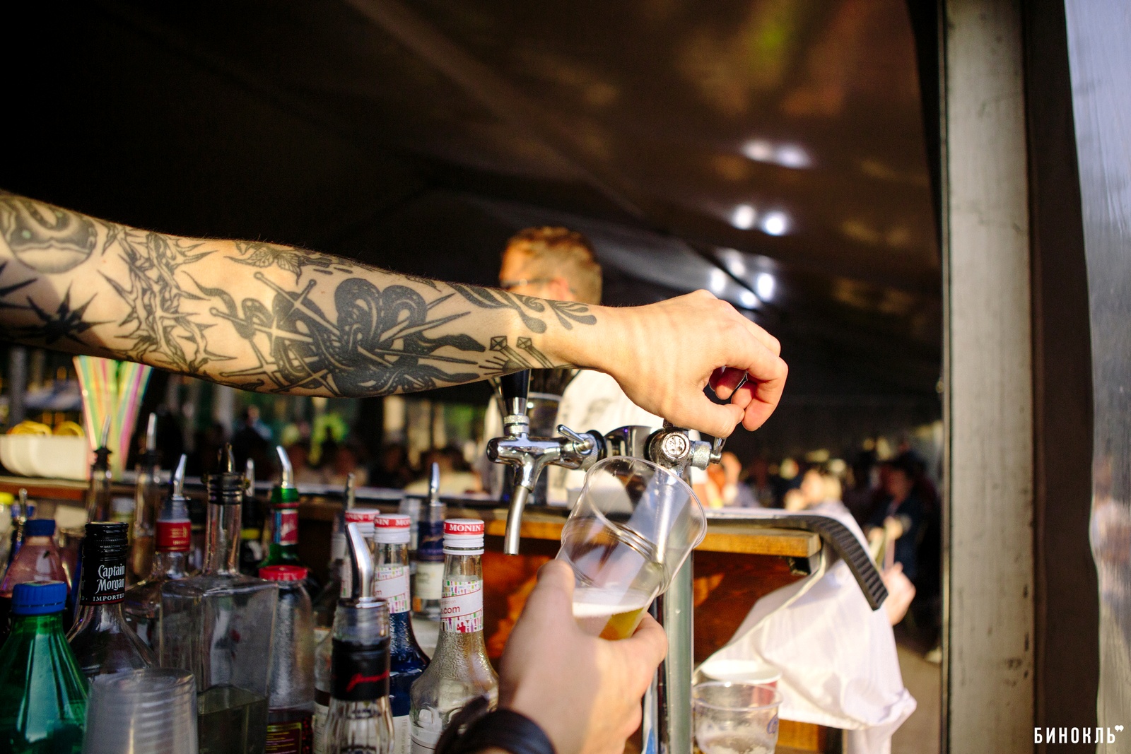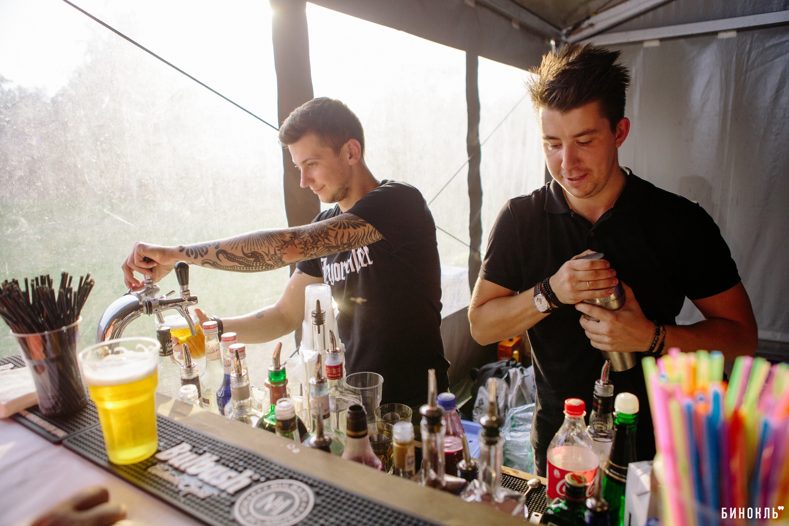 Начался фест с длинной очереди за разливным пивом, что традиционно для большинства «опен-эйров» в Беларуси. Одновременному желанию выпить прохладное пенное, видимо, поспособствовала неожиданно жаркая погода. Природа словно играла с посетителями в лотерею: всю неделю до мероприятия прогнозы менялись чуть ли не каждый час. За сутки до феста метеорологи обещали дожди и резкое похолодание, о чём через соцсети проинформировали организаторы, посоветовав запастись зонтиками и пледами. Однако обошлось (во всяком случае так казалось в самом начале мероприятия).
