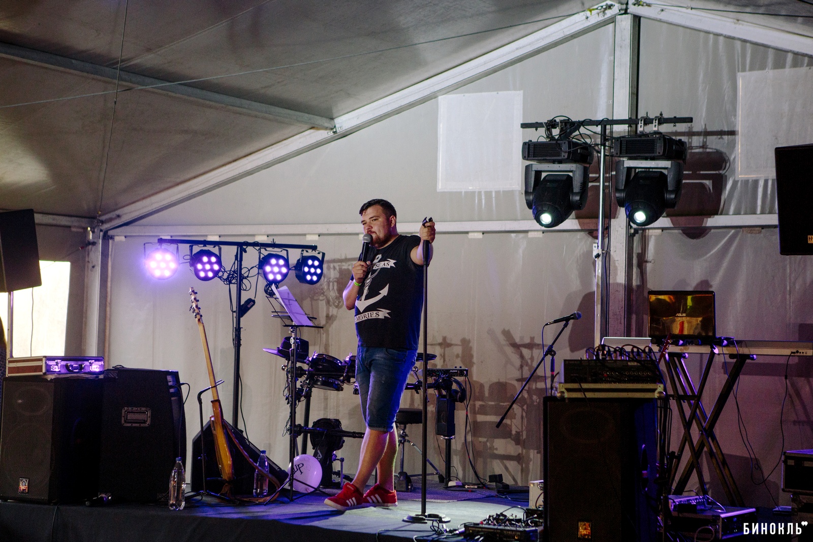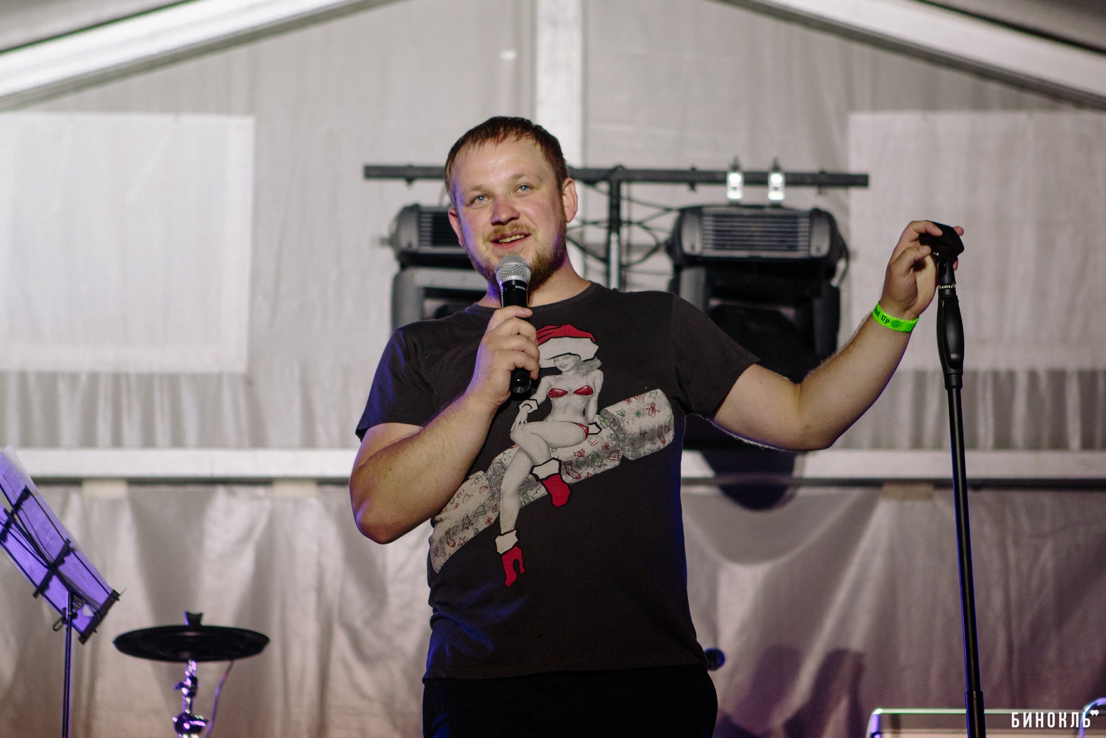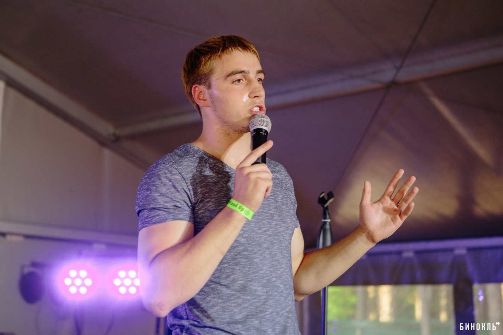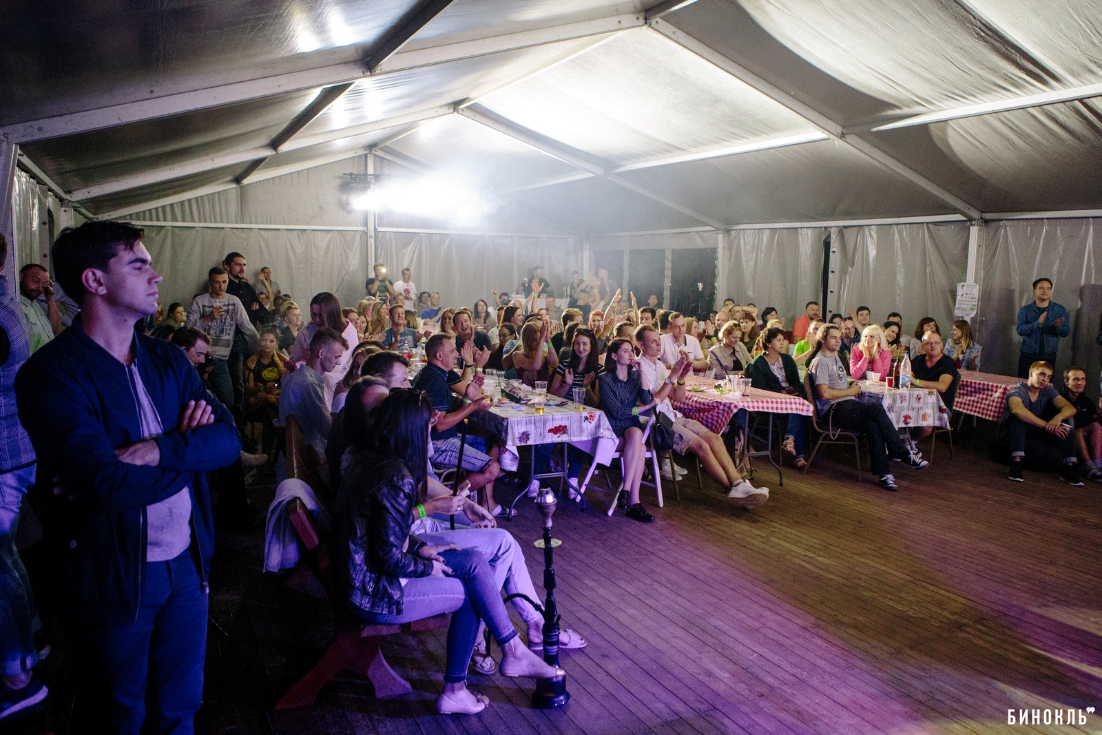 Как раз таки в середине второго блока резко сменилась погода – начался ливень. Работники парка «Полянка» оперативно закрыли шатёр, в котором находились и комики, и зрители. Теперь мероприятие стало больше походить на привычный всем стендап клубного формата.