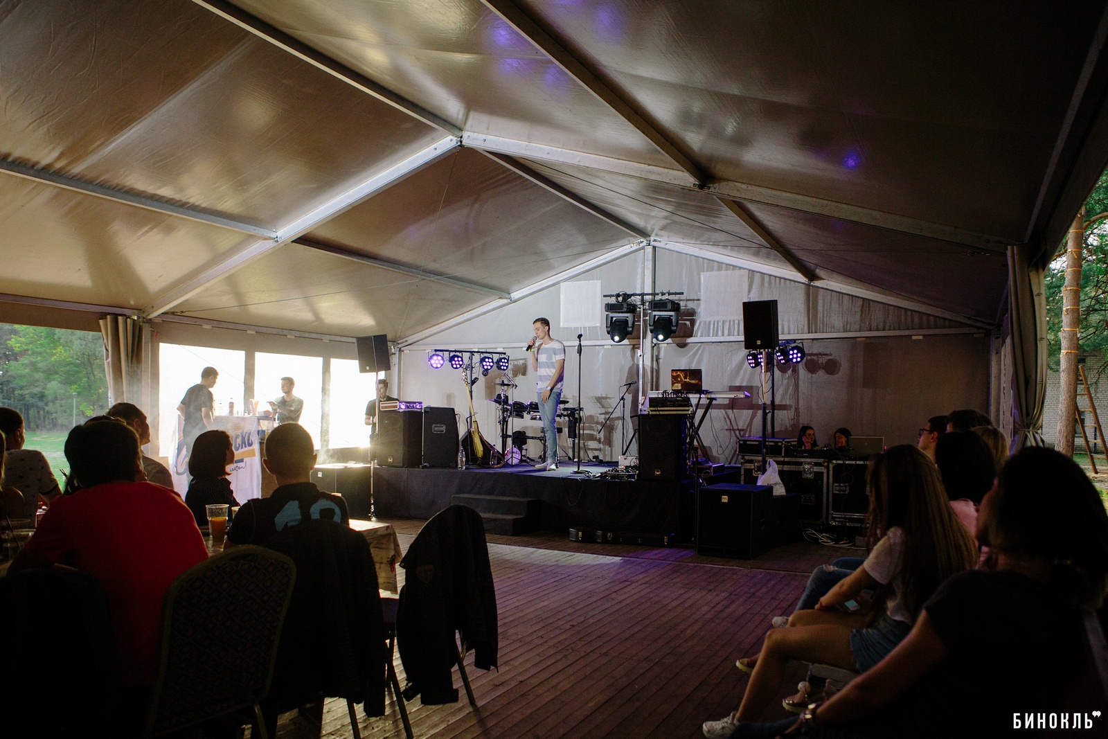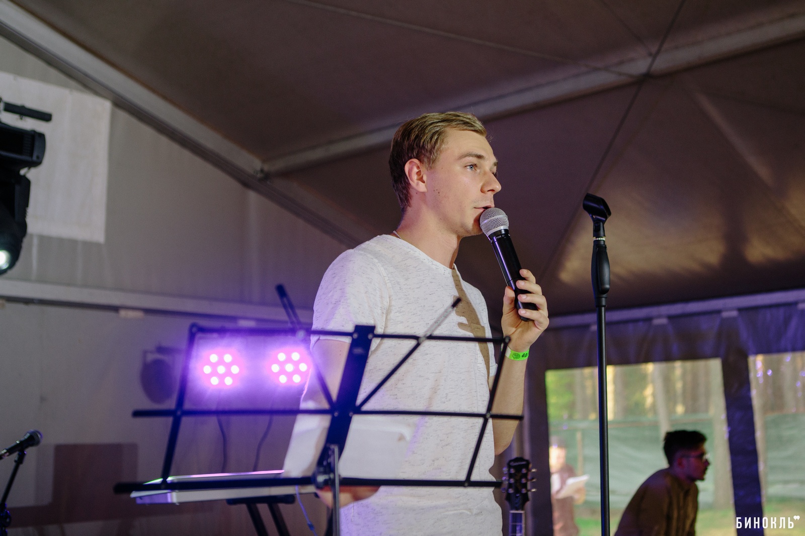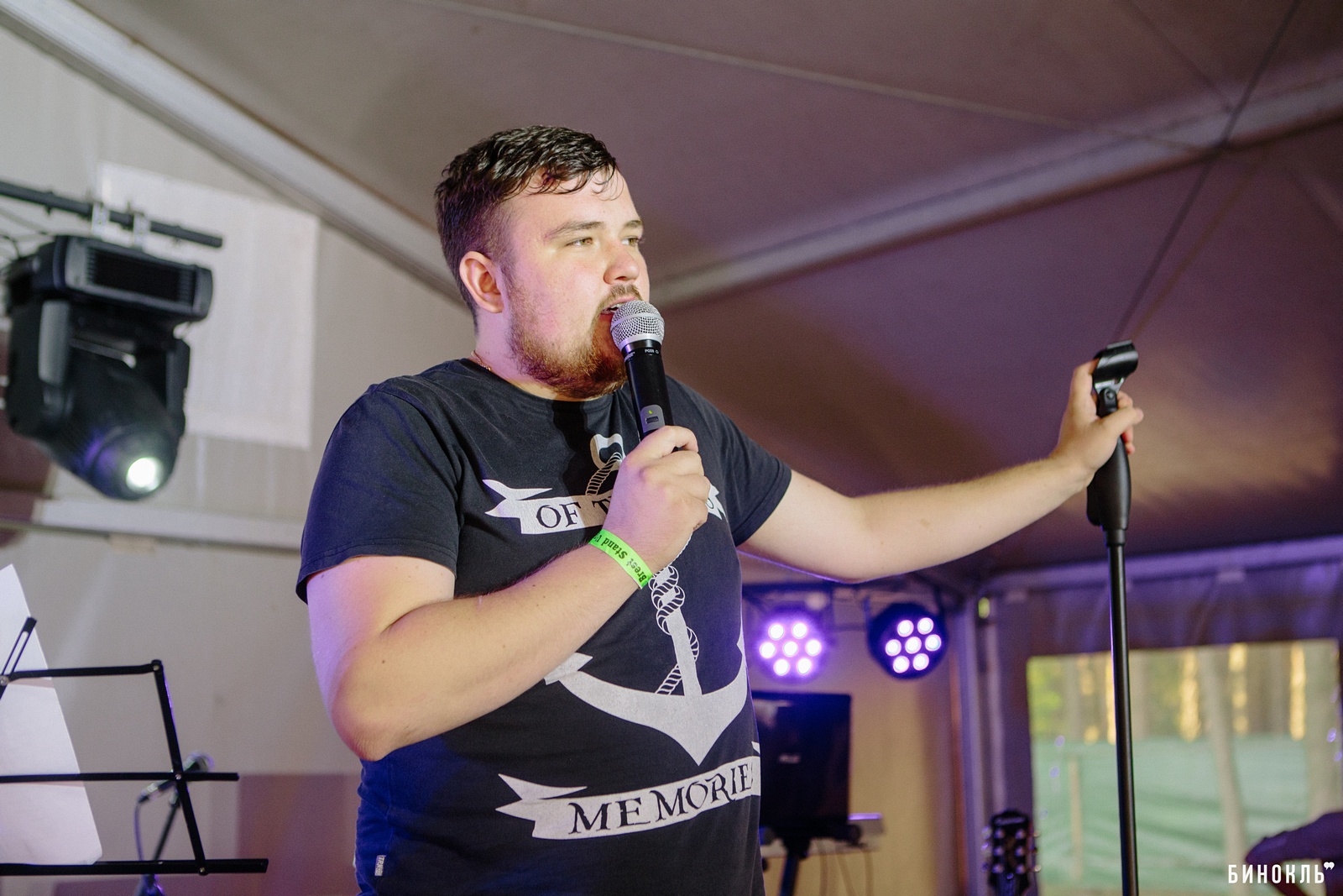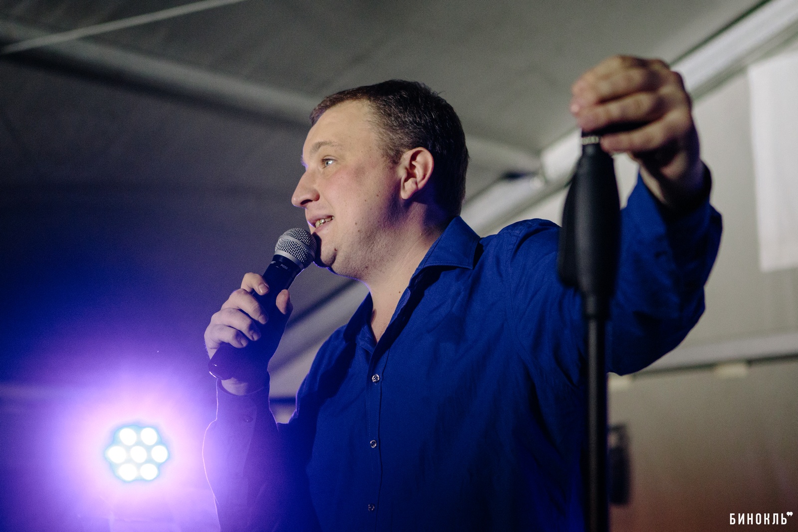 Как раз таки в середине второго блока резко сменилась погода – начался ливень. Работники парка «Полянка» оперативно закрыли шатёр, в котором находились и комики, и зрители. Теперь мероприятие стало больше походить на привычный всем стендап клубного формата.