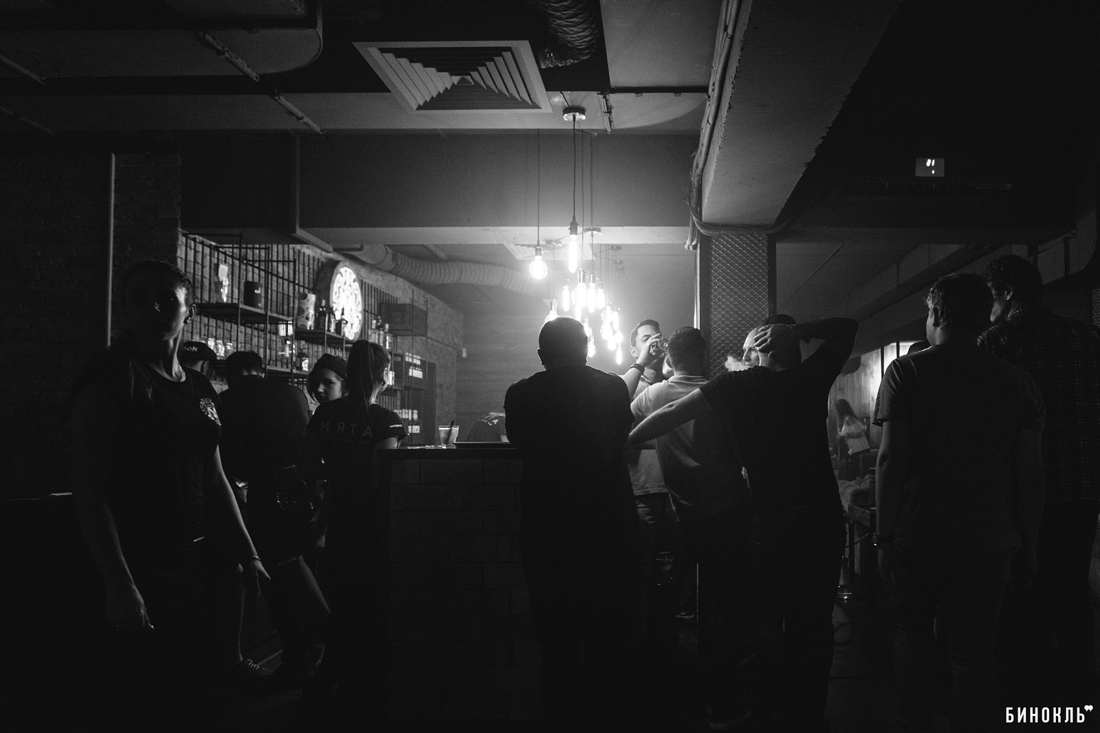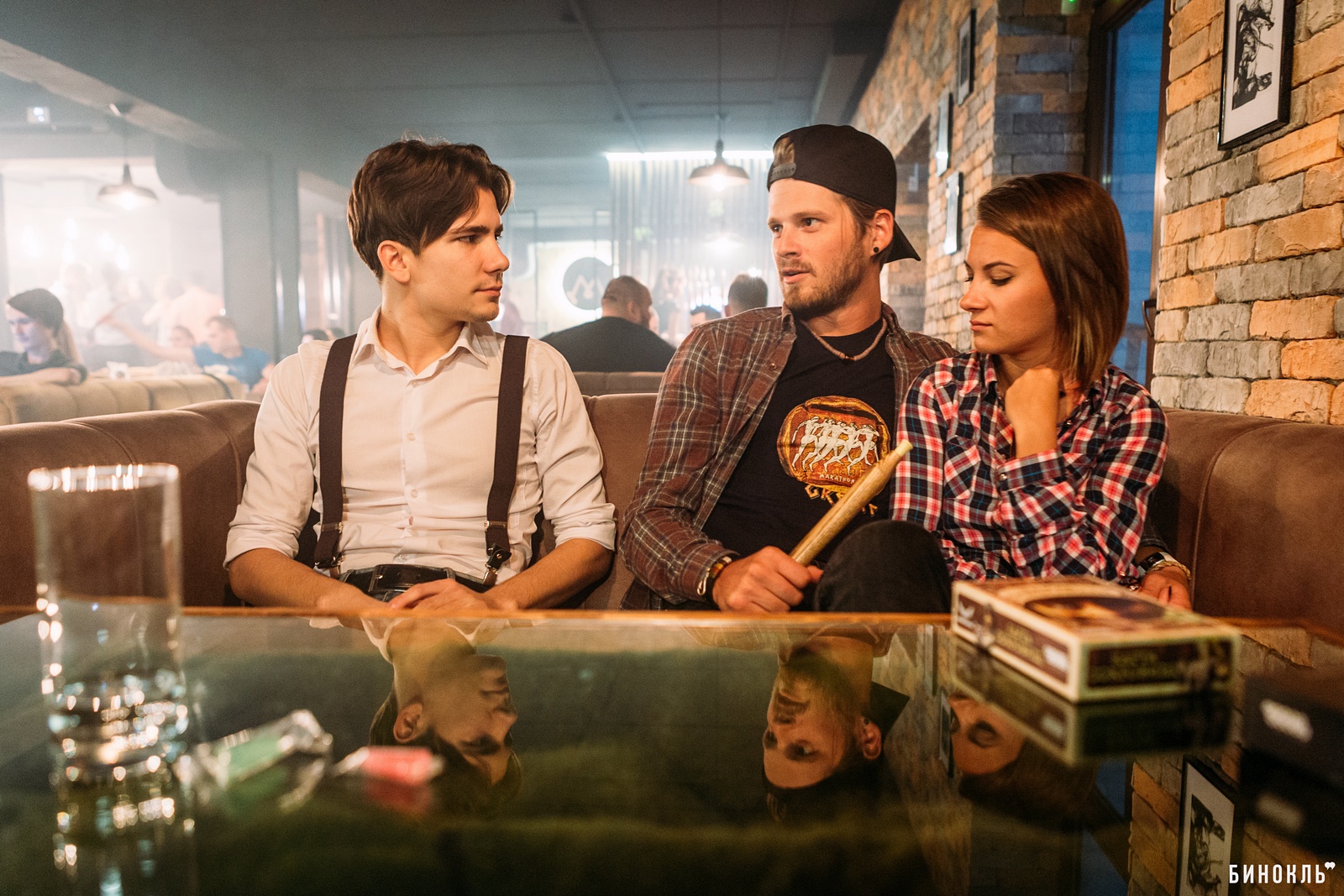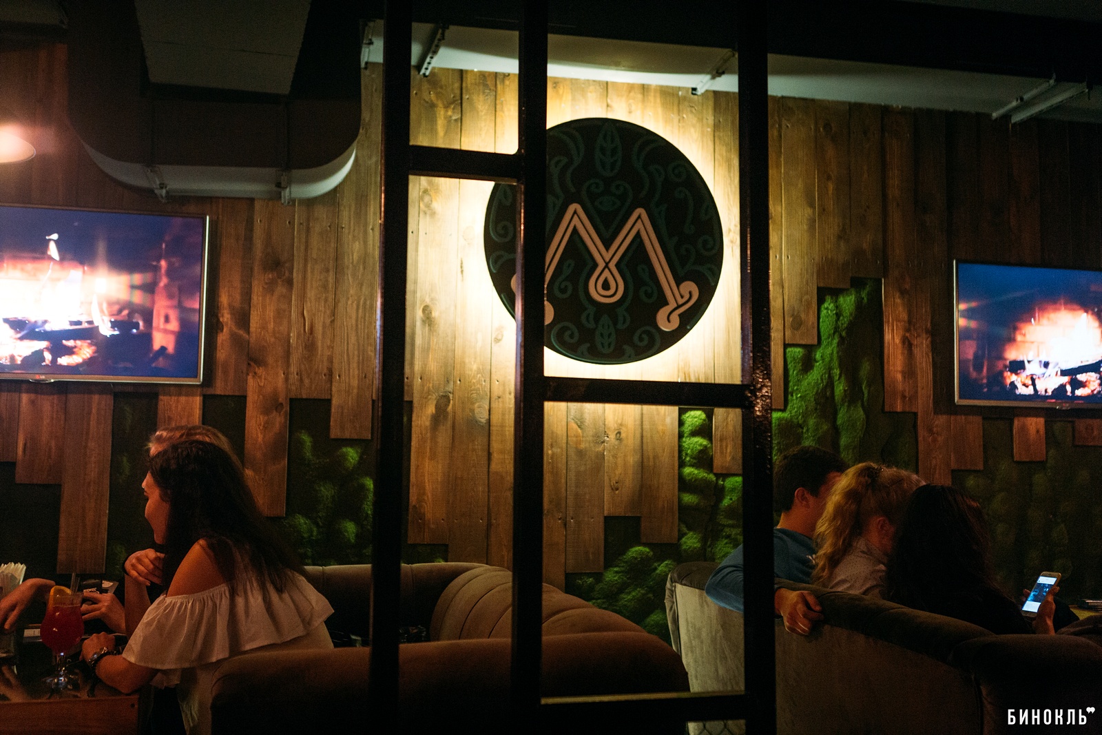 Интерьер выполнен в стиле декоративного лофта: высокие потолки, кирпичная кладка с фирменными хештегами, мебель из массива и диваны. Для пришедших в клуб не для общения — настольные игры и Xbox. Кроме обычных «коллективных» столиков на 6 человек, имеется 5 зон для уединенного отдыха, одна из которых выходит на балкон. В целом — просто, просторно, пространство не перегружено.