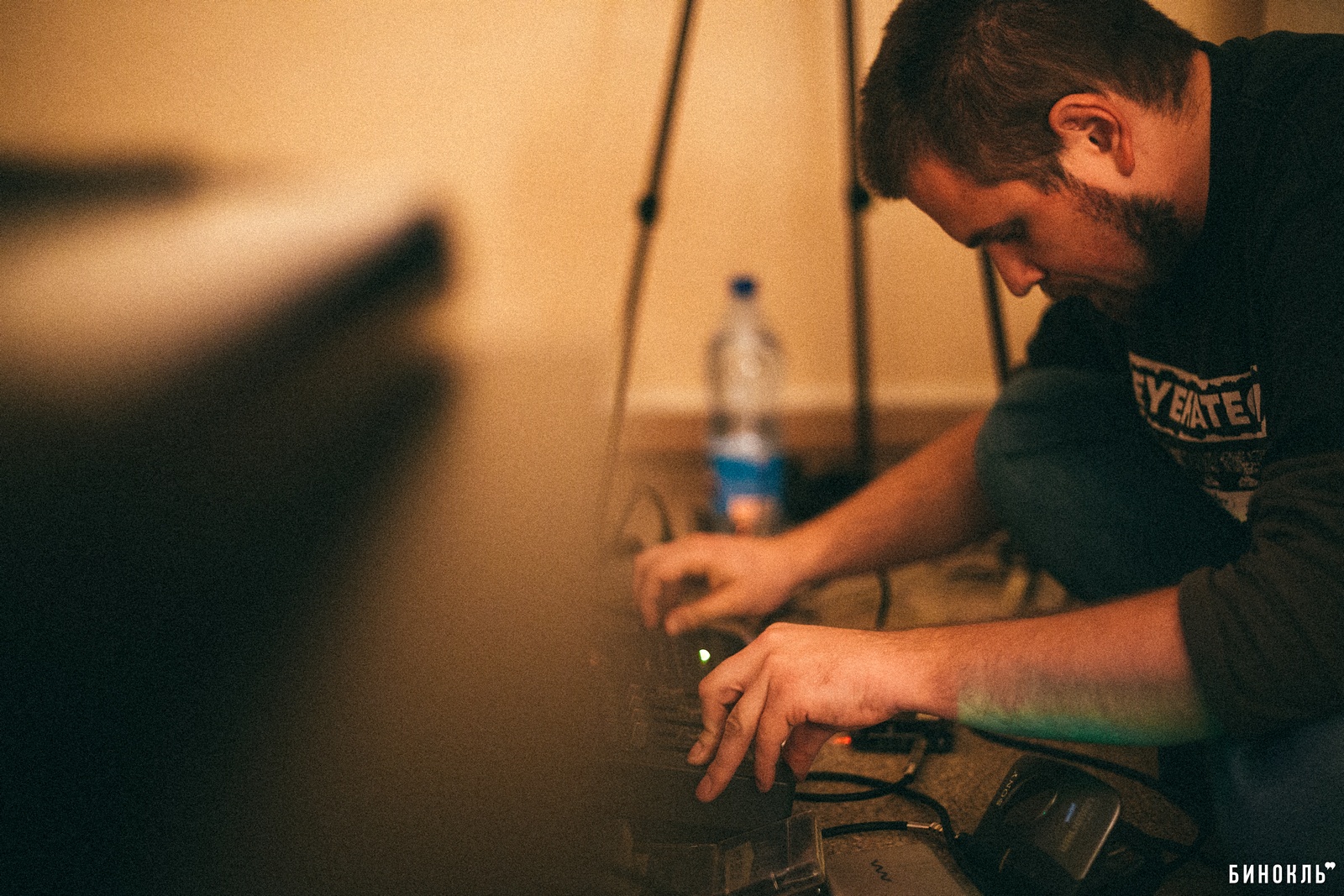 «Чайный домик» приютил экспериментаторов на поверхности (в качестве соседского контраста – мирные дедушки, стучавшие шашками до последнего). По словам одного из организаторов Кирилла ака Kript, подобное шумовое действо – новинка для Бреста: представители местной сцены обещали накрыть посетителей звуковой волной эмбиента, нойза, дроуна и полевых записей. Правда, не бесплатно, а за символическую семирублевую плату.