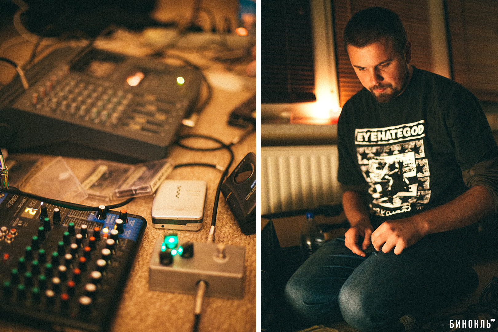 Kript: Я использую кассетные петли и плееры, портативную студию и микшерный пульт. Заранее записываю на пленку какой-нибудь интересный звук, склеиваю ее в произвольном порядке, а после провожу с этим отрывком различные манипуляции. Каждый раз один и тот же семпл звучит по-разному, а выступление превращается в медитативную импровизацию. Единственные определенные точки джема – начало и конец. Все, что происходит между, – импровизация чистой воды. Я подбираю звуки в соответствии с царящими вокруг атмосферой и настроением.