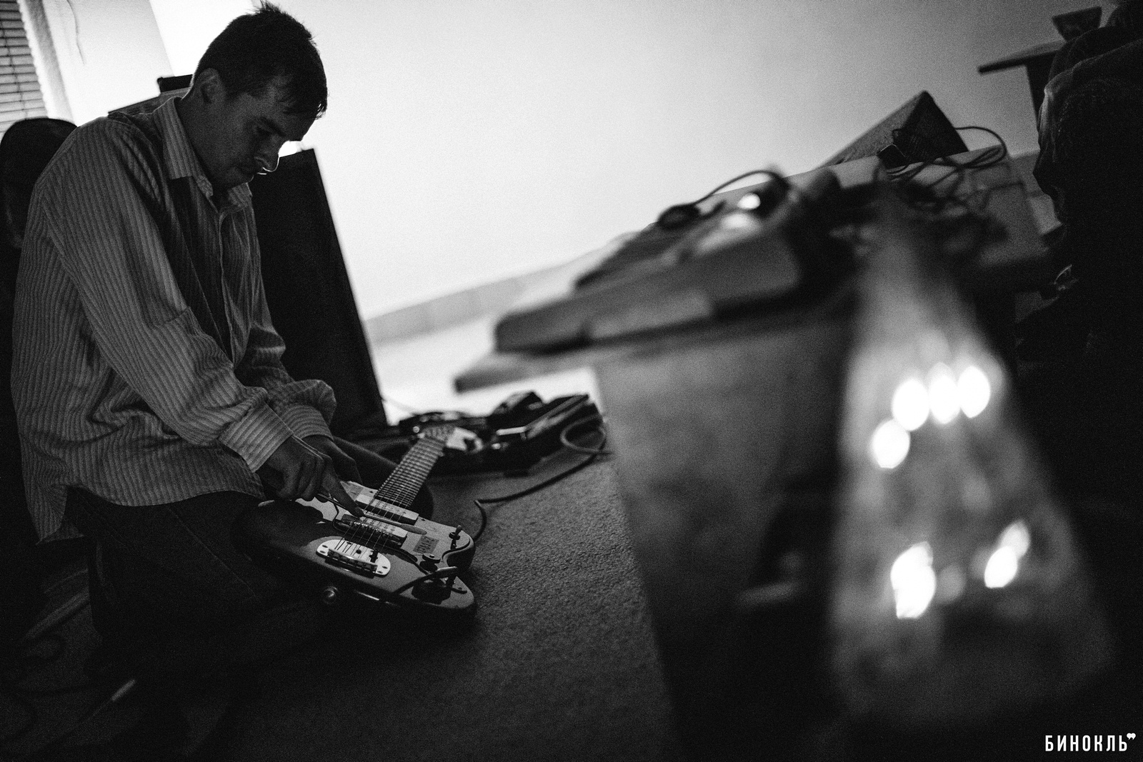 Александр ака Mad Mirror Mountain (знакомый многим по «Объекту»), принявший шумовую эстафету следующим, терзал свою гитару так, что и Лу Риду времен записи Metal Machine Music не снилось. На выходе же – дроуновые запилы а-ля Sunn O))) в тревожно-амфетаминовом исступлении. Никаких незаконных психоактивных веществ в пределах локации, кстати, замечено не было, лишь абсолютно легальный пуэр стимулировал органолептическое восприятие собравшихся.