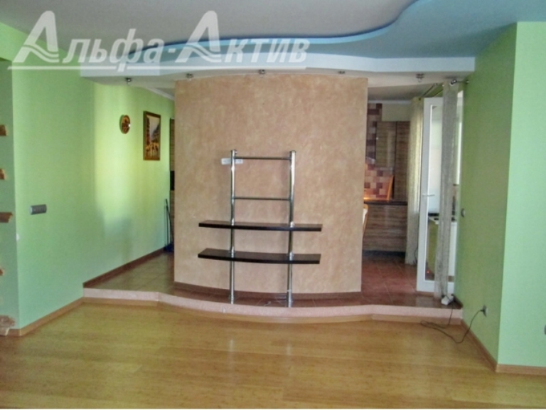 Четырехкомнатная двухуровневая квартира на шестом этаже дома. Площадь — 144 «квадрата», потолки высотой 2,5 метра. В квартире два санузла, застекленная лоджия, встроенная кухня, корпусная мебель и сейфы.