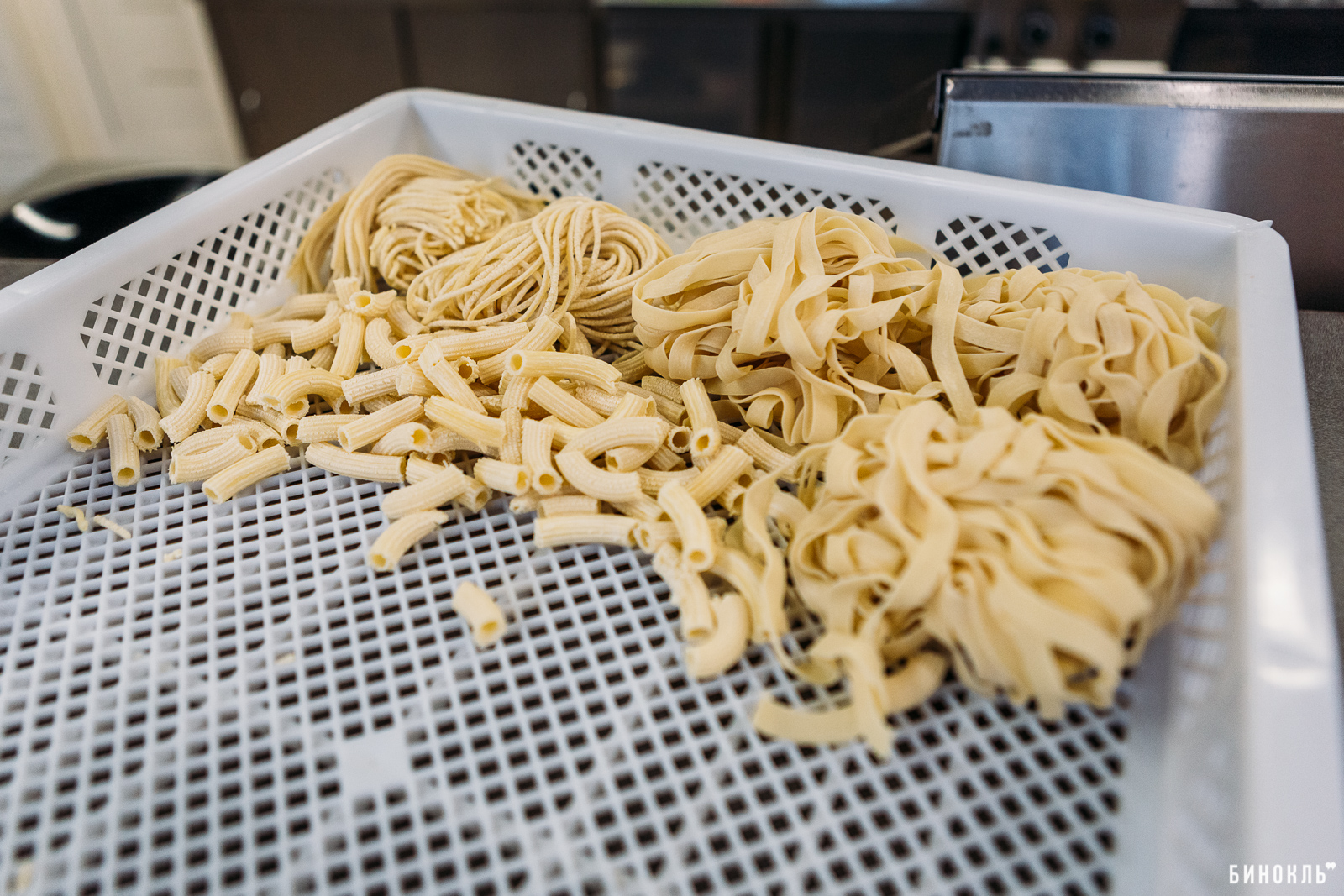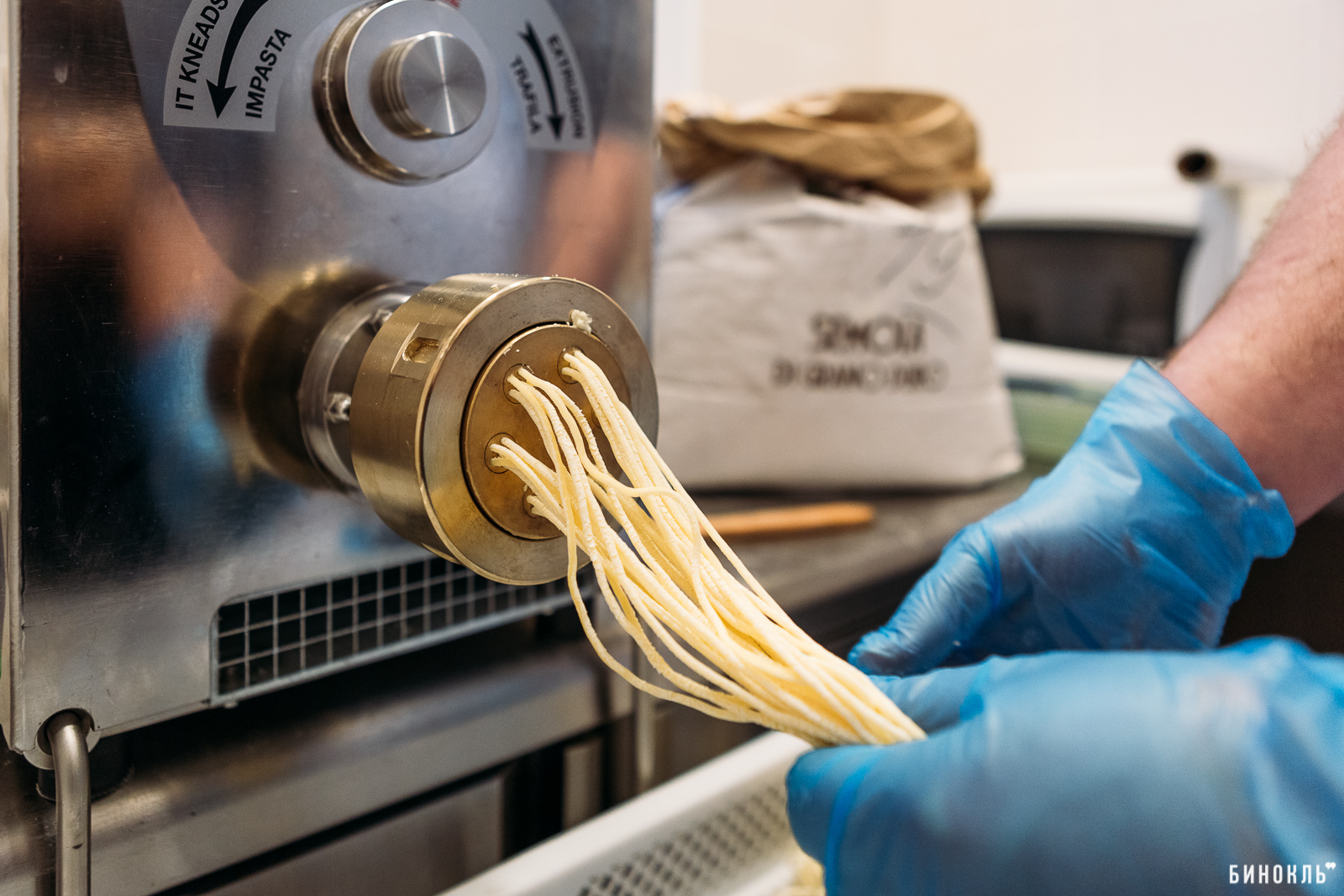 Для приготовления макарон мы заказали итальянскую машину фирмы “La Monferrina” – рабочий мерседес в этой нише. На создание идеальной рецептуры мы потратили уйму времени. Не ограничиваясь лишь своими вкусовыми предпочтениями, мы давали пробовать пасту друзьям, родным и близким. Они были своего рода кулинарным жюри. Один из самых важных критериев, который мы задали с самого начала, – свежие и качественные продукты.