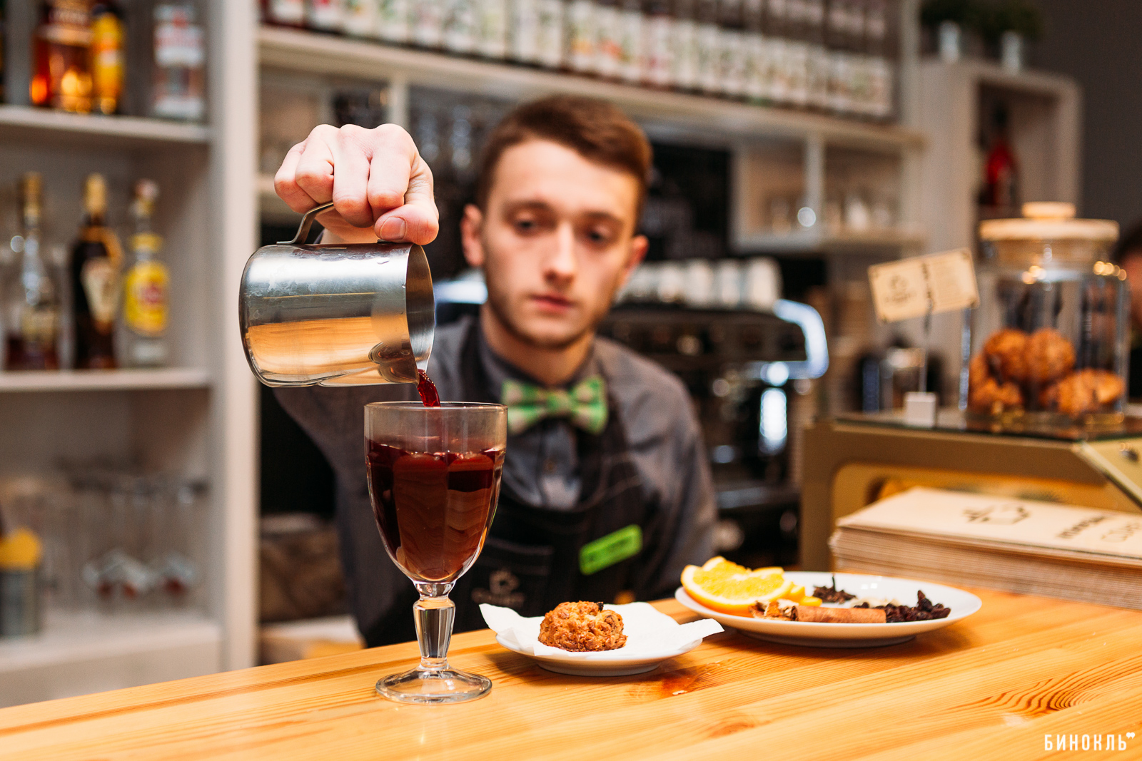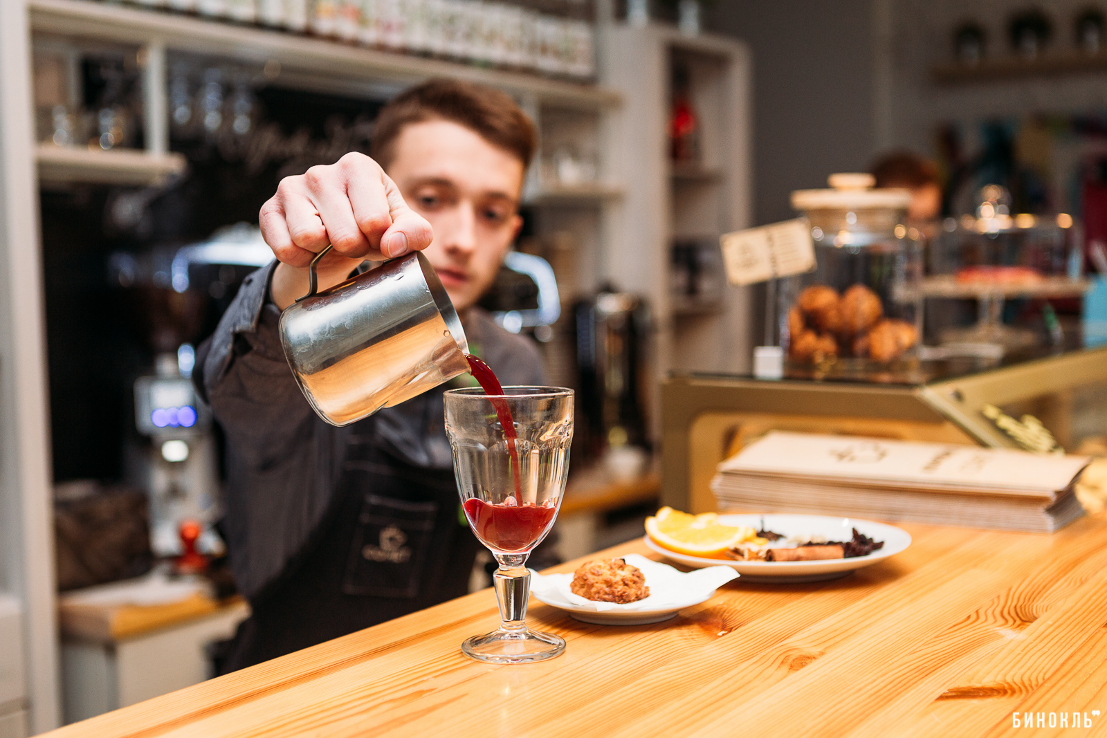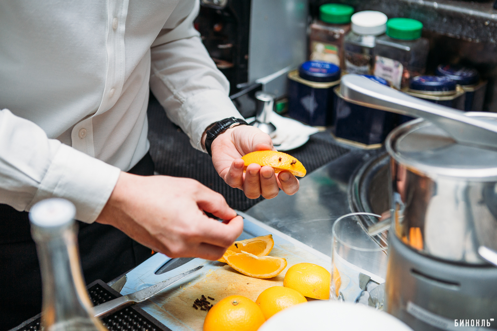 Особенность кафе – 7 видов согревающих напитков. В прошлом сезоне было 15, оставили самые ходовые. Здесь и пунши, и гроги, и даже бехеры. Коктейли сезонные, однако никуда не пропадают. Если человек захочет летом, их приготовят. Самый популярный – ожидаемо глинтвейн.
