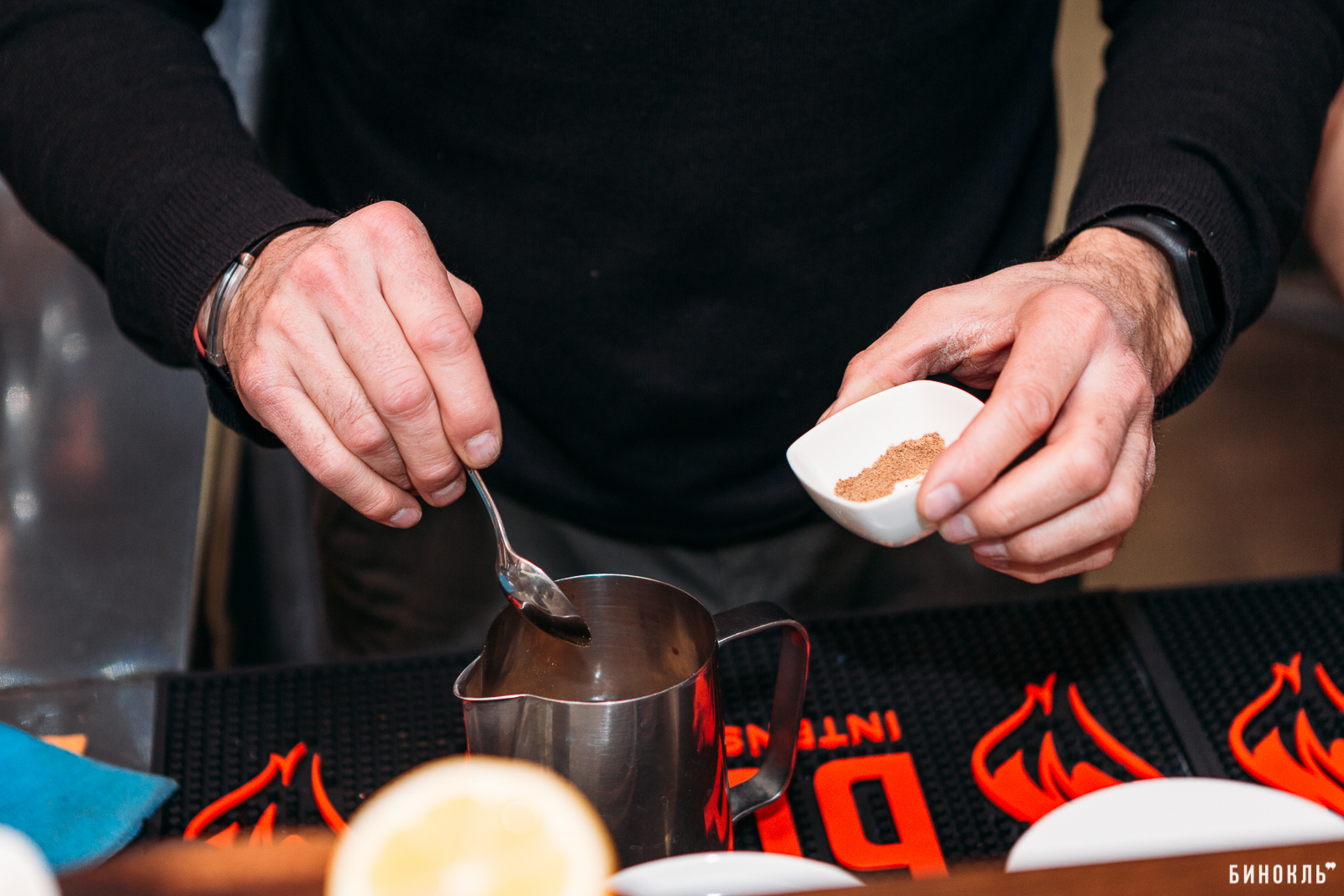 Наш напиток готовится при температуре 85 градусов и подается в айриш-кружке. Для антуража используются палочка корицы, бадьян и долька апельсина. На вкус напиток кажется идеальным. Не сильно сухой, не сильно сладкий, в меру пряный и согревающий.