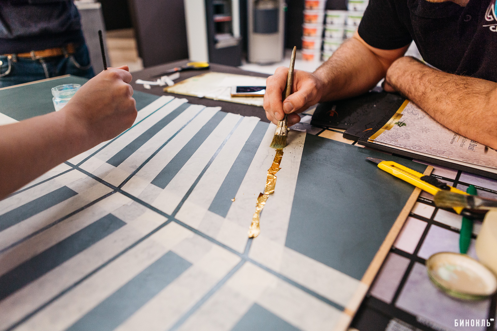 Поэтому свои образцы мы красим именно тут, на виду. Кроме того, именно здесь мы обучаем заинтересованных в нашем ремесле слушателей. Пока что у нас есть две программы: для новичков, и для матёрых специалистов. Между делом хочу заметить, что продуктивней работать именно с новичками. Они горят, всем интересуются и не боятся креативить. С мастерами же мы работаем немного в другом формате.