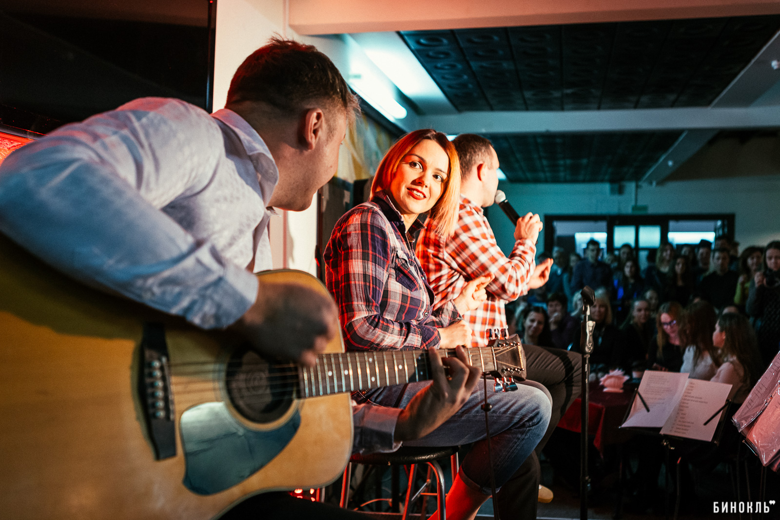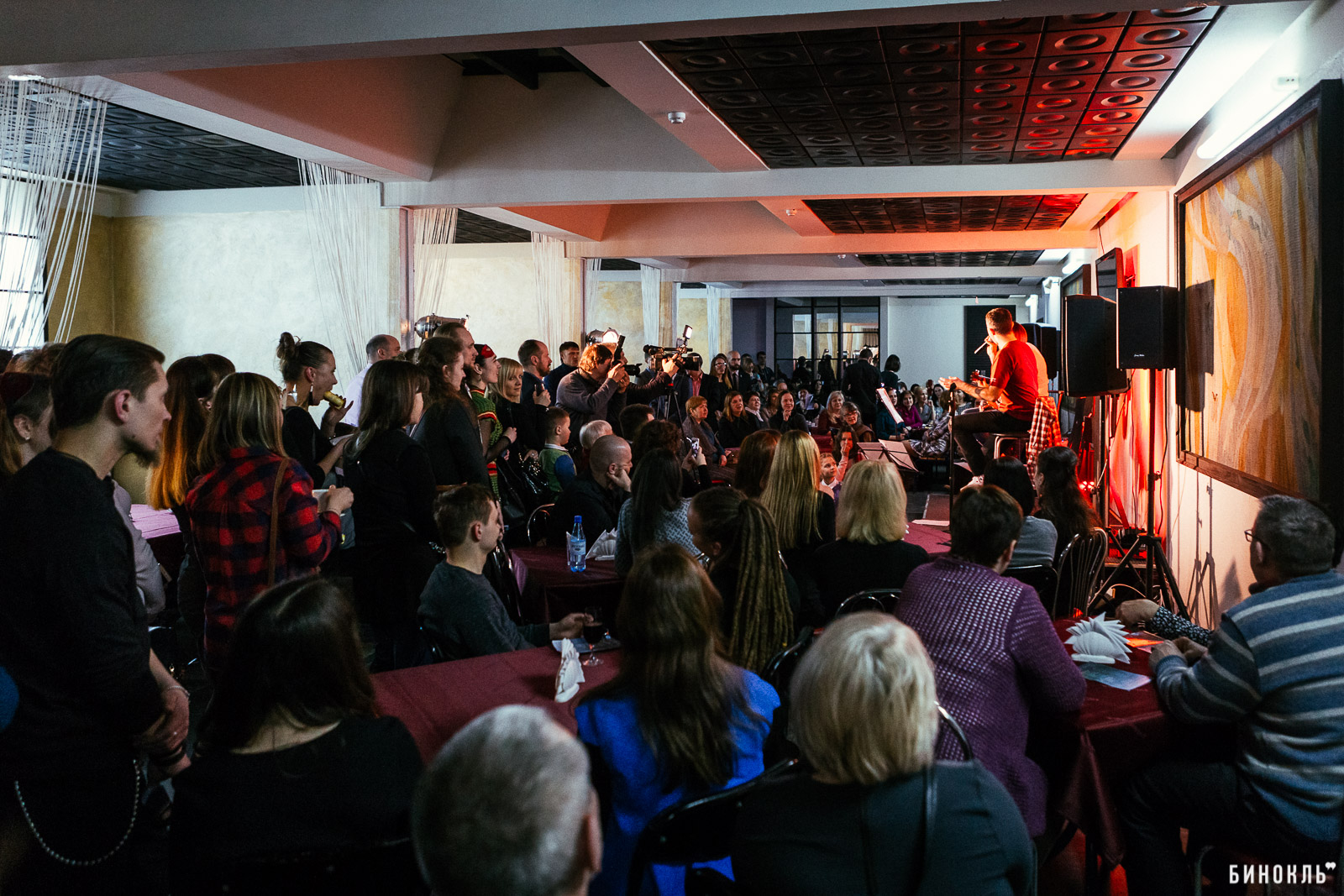 В репетиционном зале театра продолжалась встреча для тех, кто уже был готов надеть на себя новую личину: тренинг от режиссёра Дениса Фёдорова «Открой в себе актёра» стал центром притяжения творческих, готовых к экспериментам людей. Крикнуть в спину соседу так, чтобы он обратил на тебя внимание, или поздороваться друг с другом любой частью тела без стеснения: публика смело выполняла упражнения от своего гуру, направленные на развитие внимания, голосовых и пластических навыков.