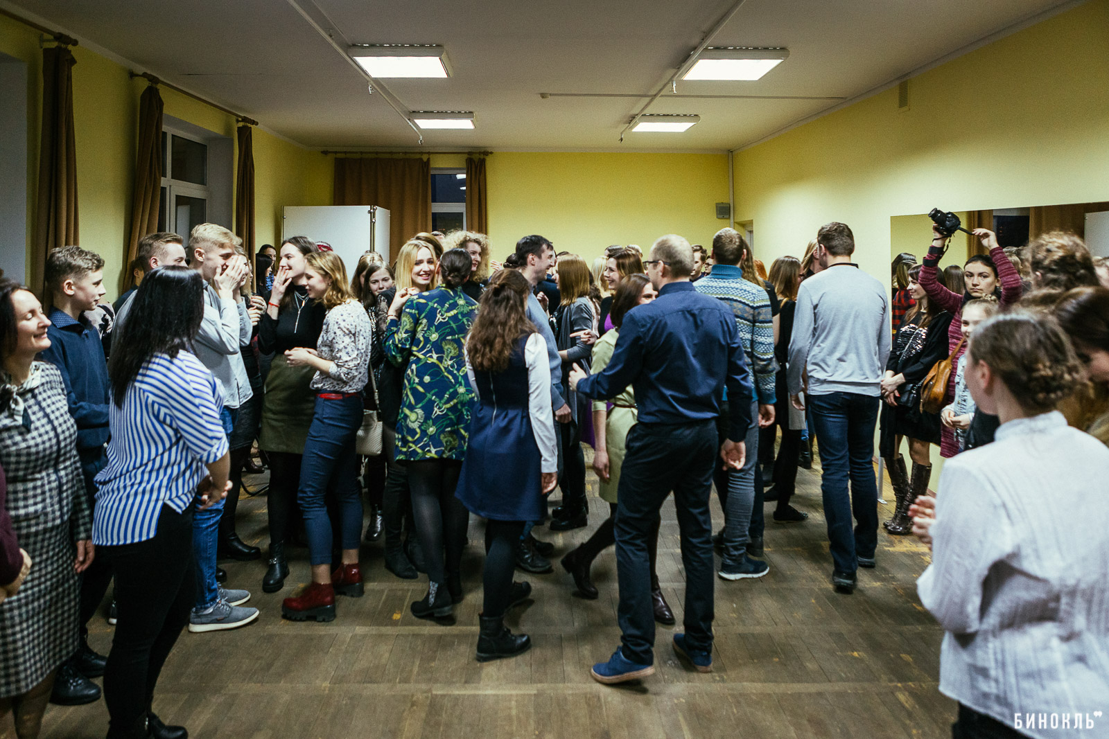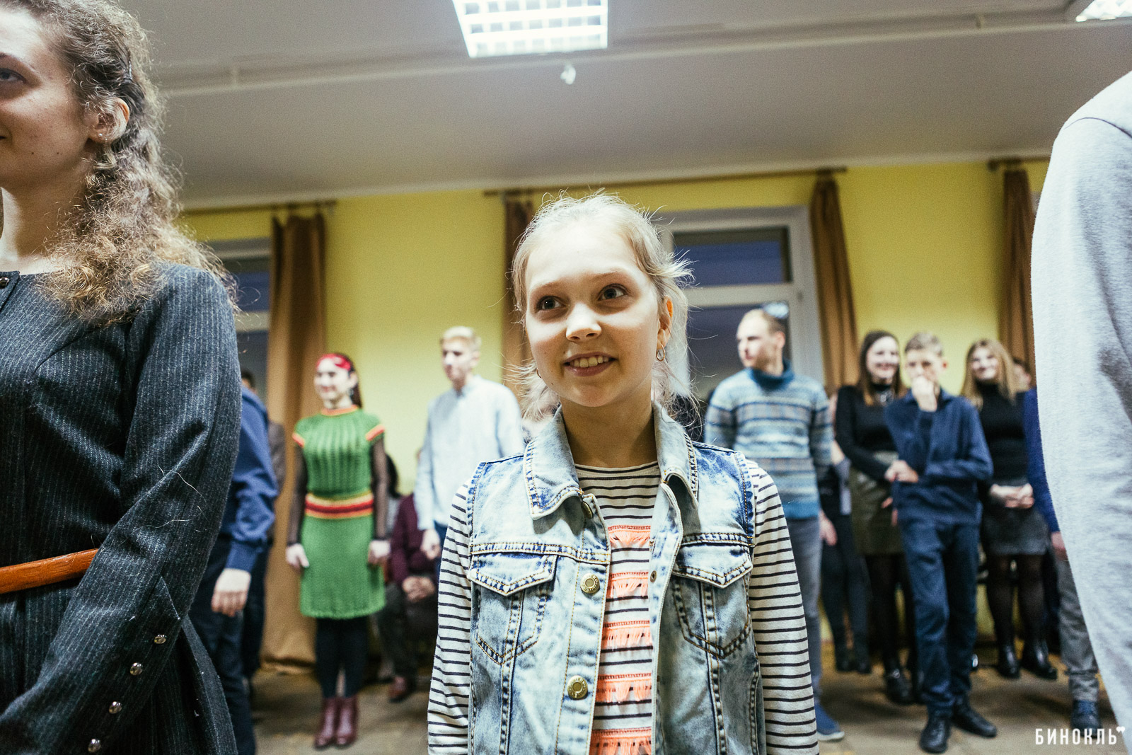 Границы между зрительным залом и сценой исчезали не только во время экскурсий и тренингов: следующий час в театре был отведён на открытую репетицию спектакля БАТД с возможностью включения зрителей в действие. После покорения сценических просторов новоиспечённые театралы отправились оценивать арт-кино беларуской независимой кинокомпании, созданной актёрами БАТД Денисом Сорокой и Сергеем Кондратюком.