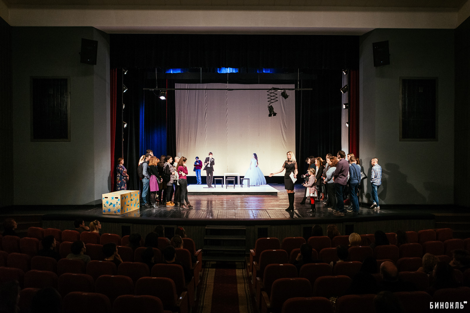 С оговоркой, информирующей об ограниченном количестве мест в каждом из залов, был объявлен переход к основной части мероприятия. Нам пришлось поспешить. В одно время (с 7 до 8 вечера) по территории театра начались спектакль-читка «Едва уловимые мстители», тренинг «Открой в себе актёра», моноспектакль «Билингвы» и экскурсия «Закулисье».