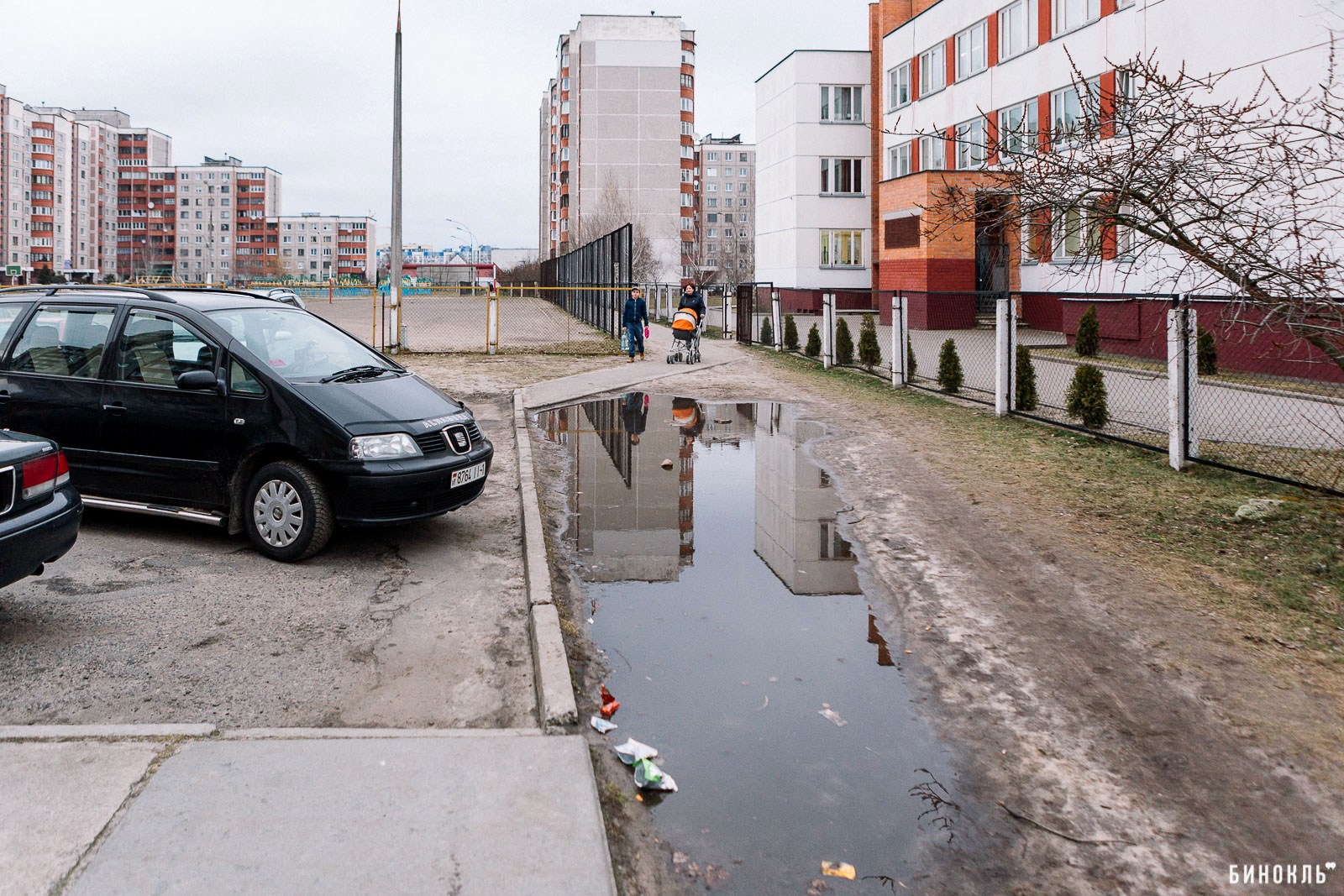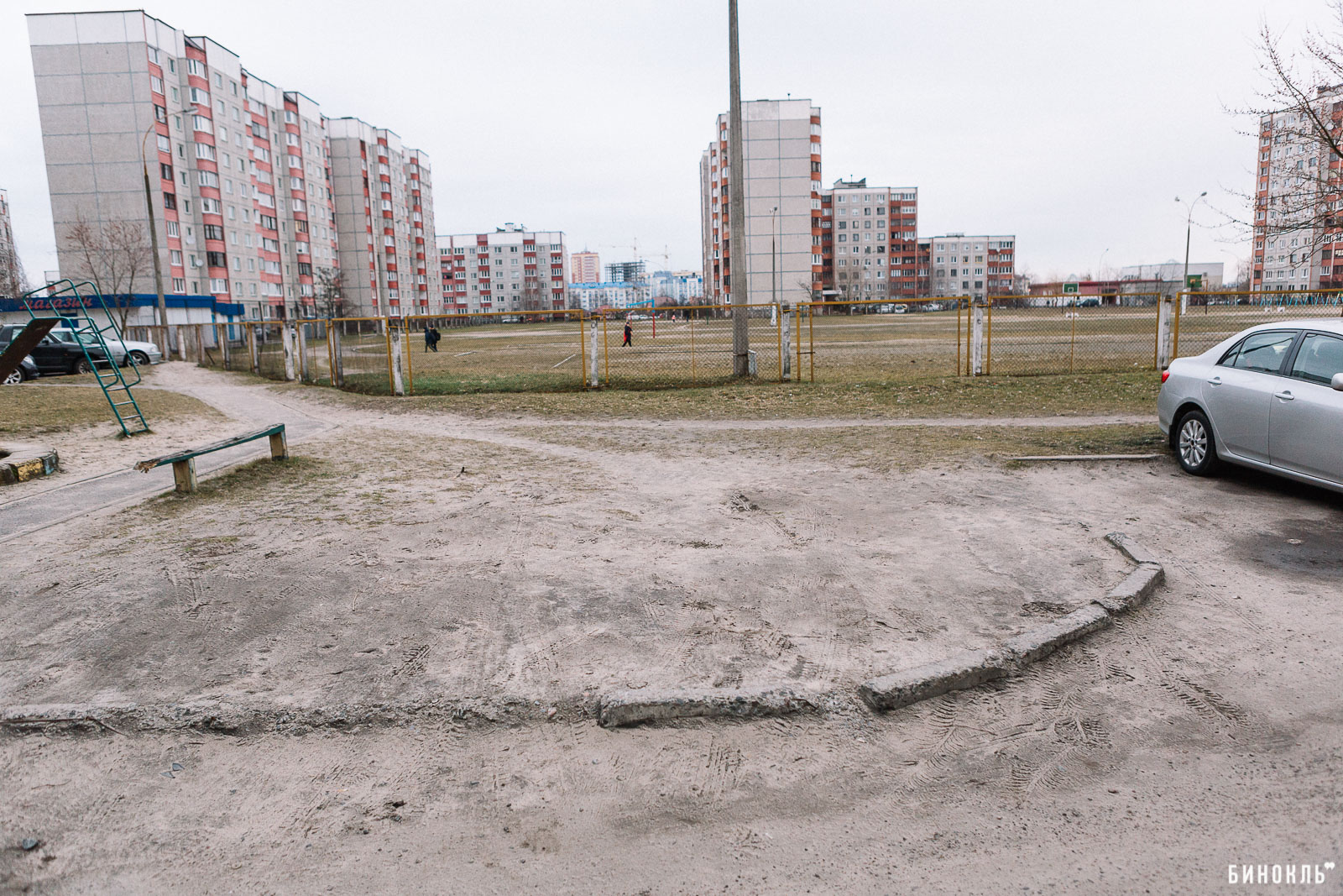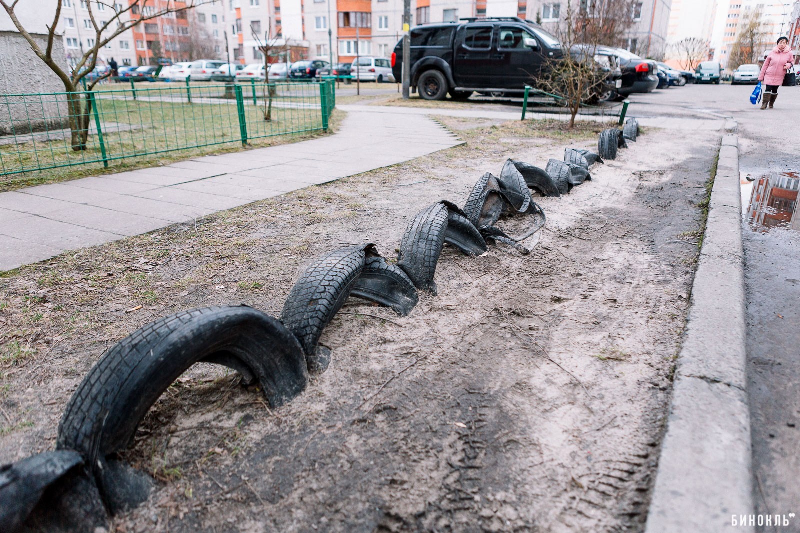 Смотри, видишь протекторы шин? — Гриша указывает на землю, где когда-то росла трава. — Видно, что здесь чье-то парковочное место. Многие люди паркуются возле подъездов, и это препятствует передвижению служебного транспорта. Этот двор небезопасен. Рядом две школы и детский сад. Дети в любой момент могут выбежать и попасть под машины. Прошлой осенью мы насчитали во дворах 115 машин, которые смело можно было штрафовать за неправильную парковку. Парадокс в том, что в пяти минутах ходьбы находятся три парковки: бесплатные возле “Короны” и “Санты” и платная (35 р. в месяц).