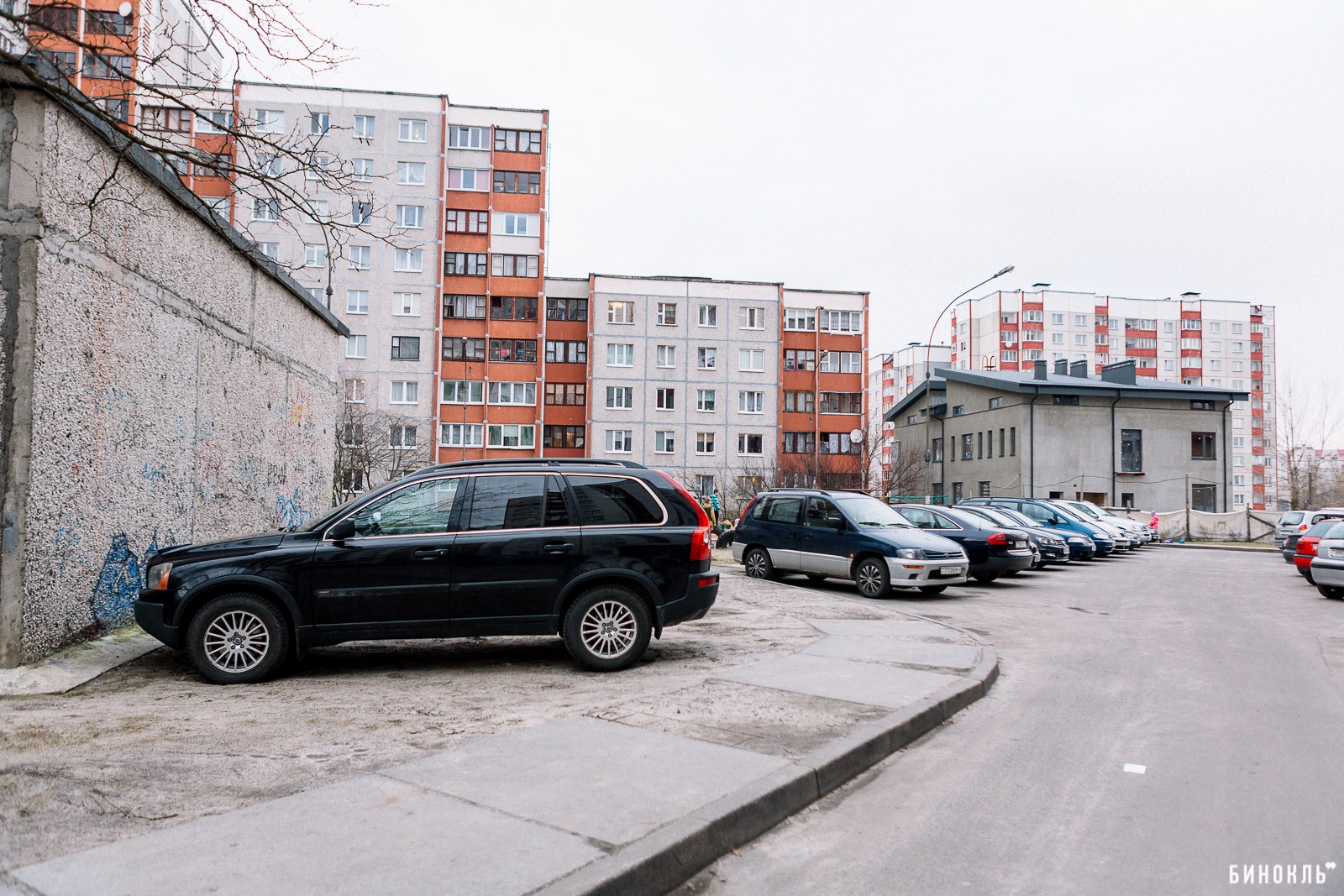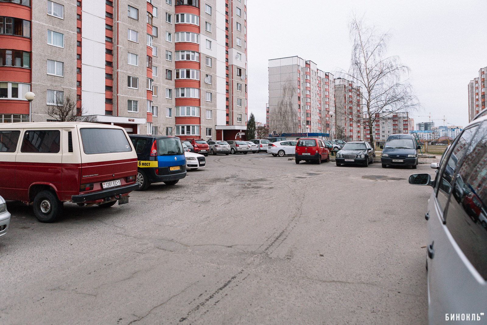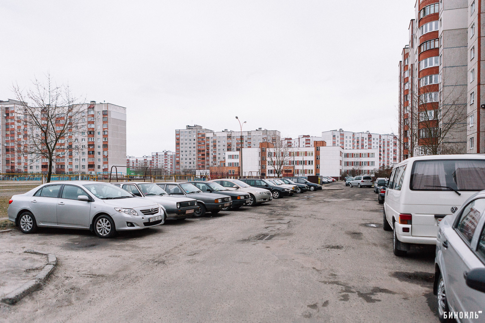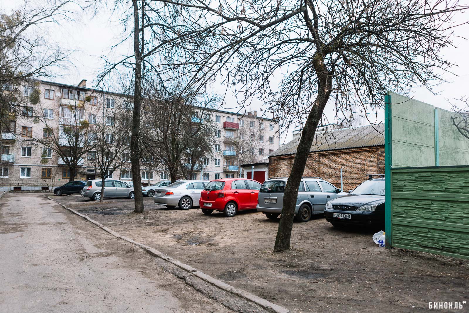 За разговором мы сворачиваем во двор на улице Карбышева. Назвать его двором можно с натяжкой — вся территория заставлена автомобилями, и это обеденное время.