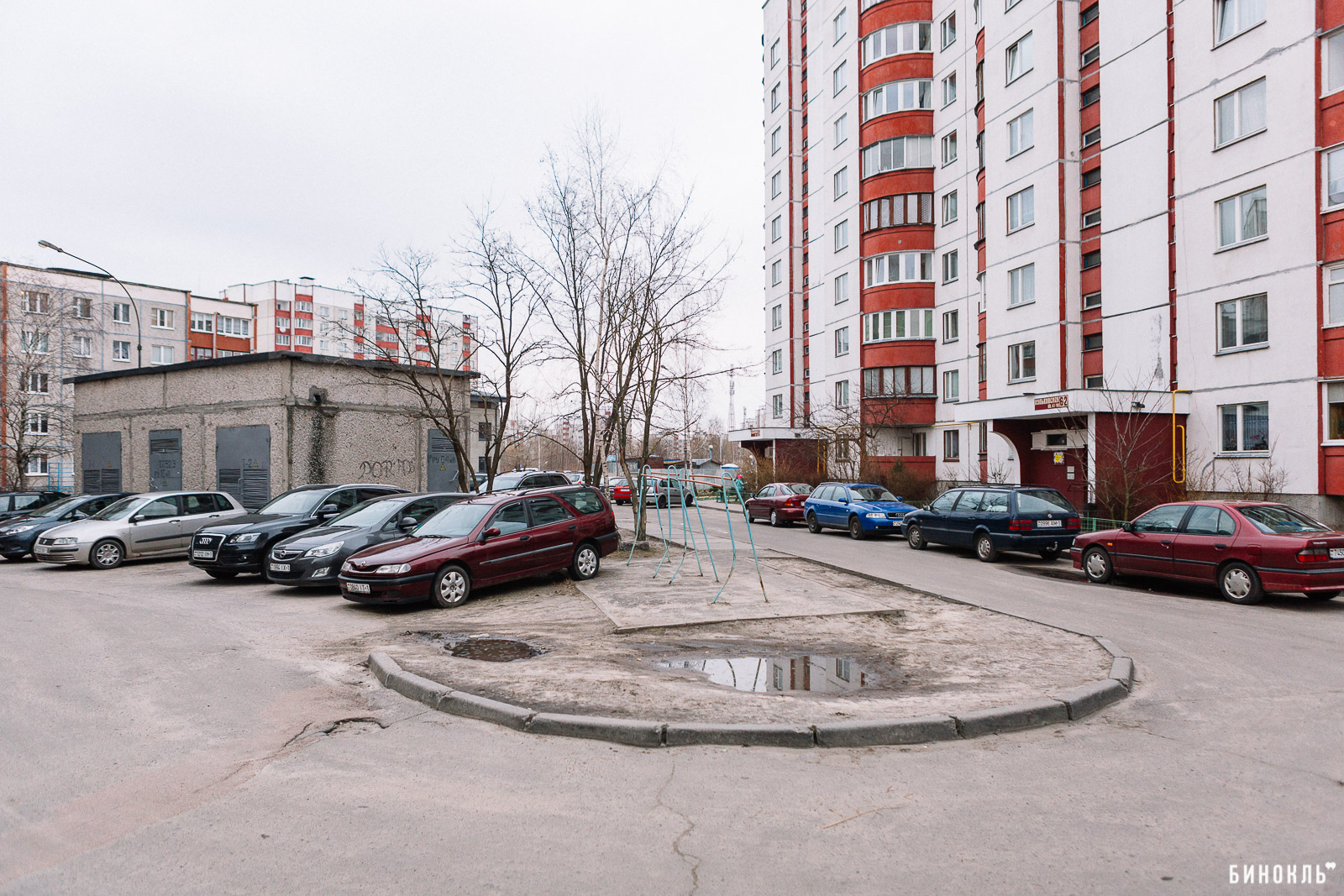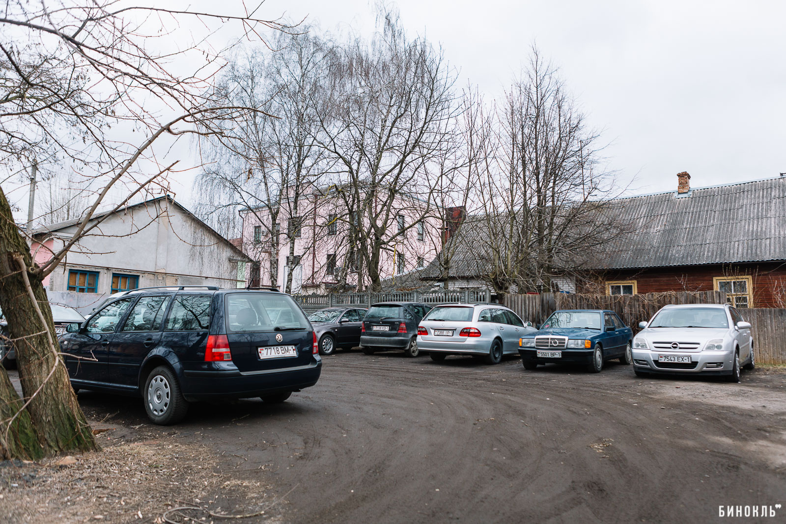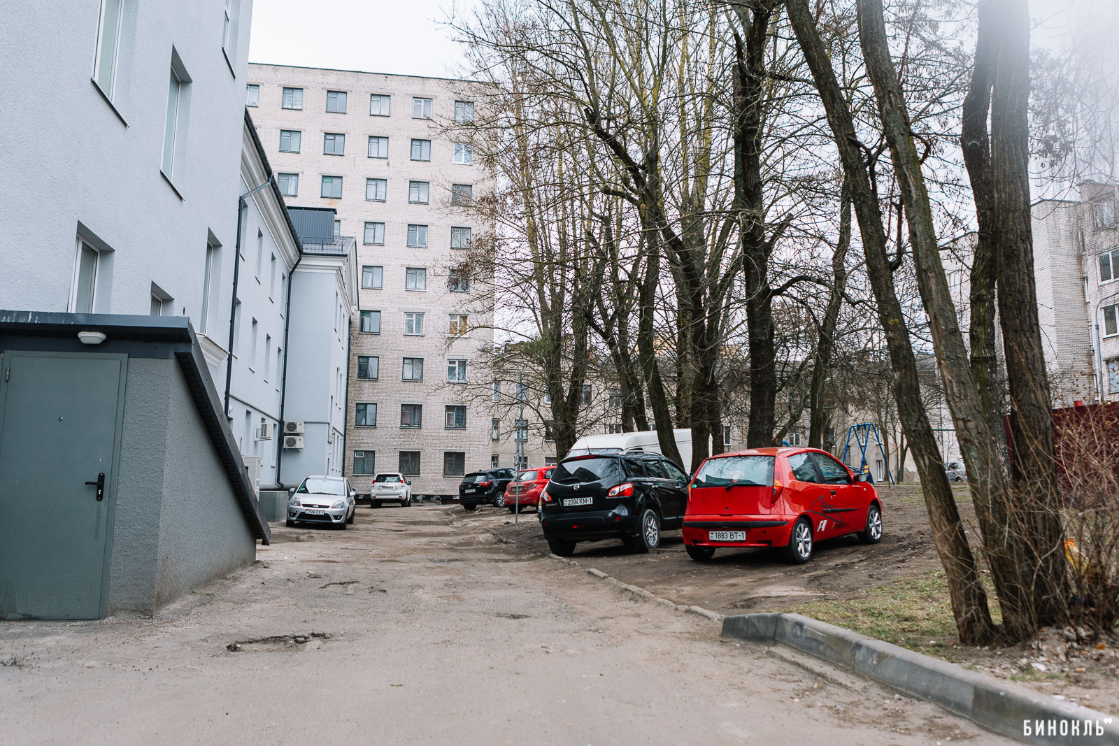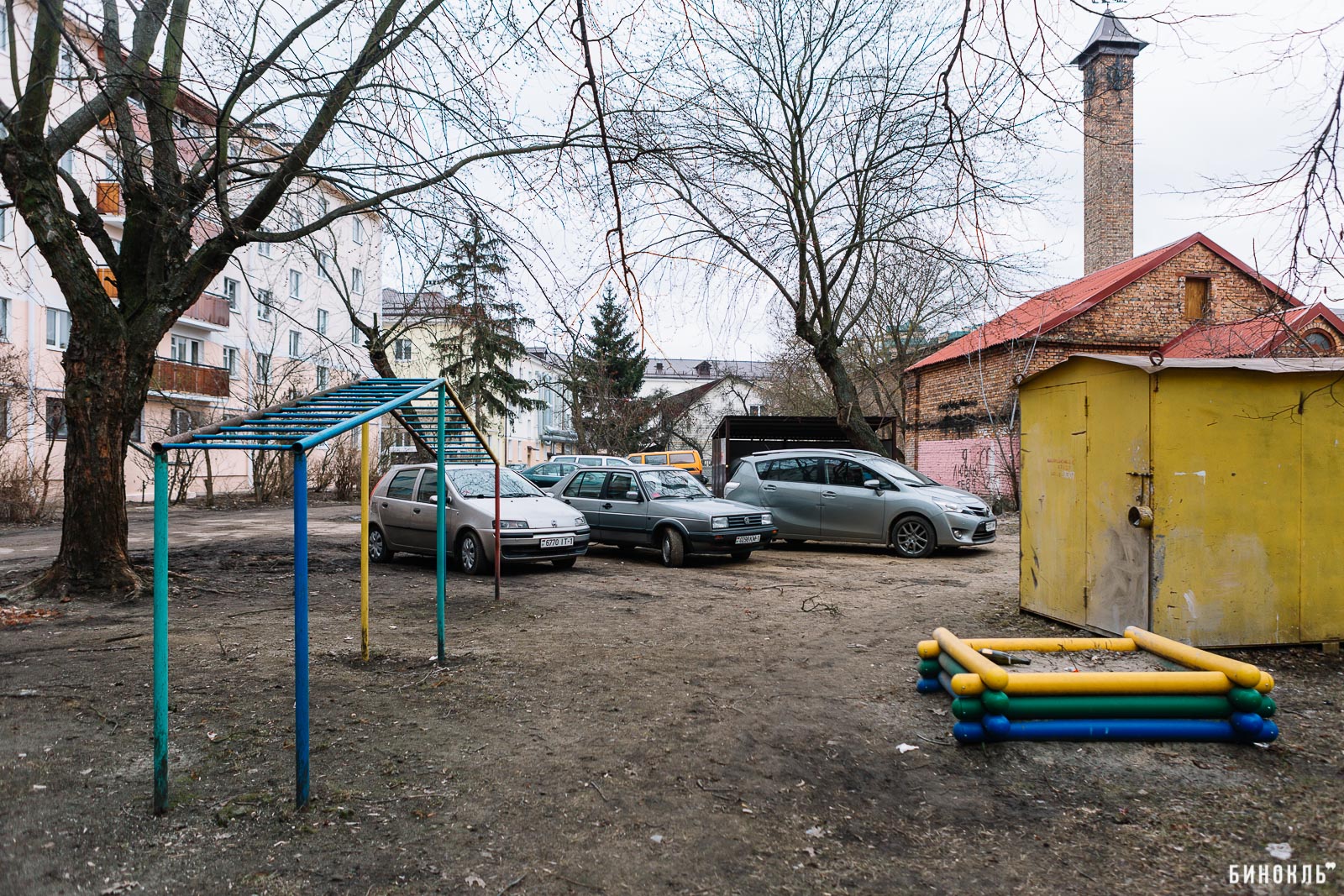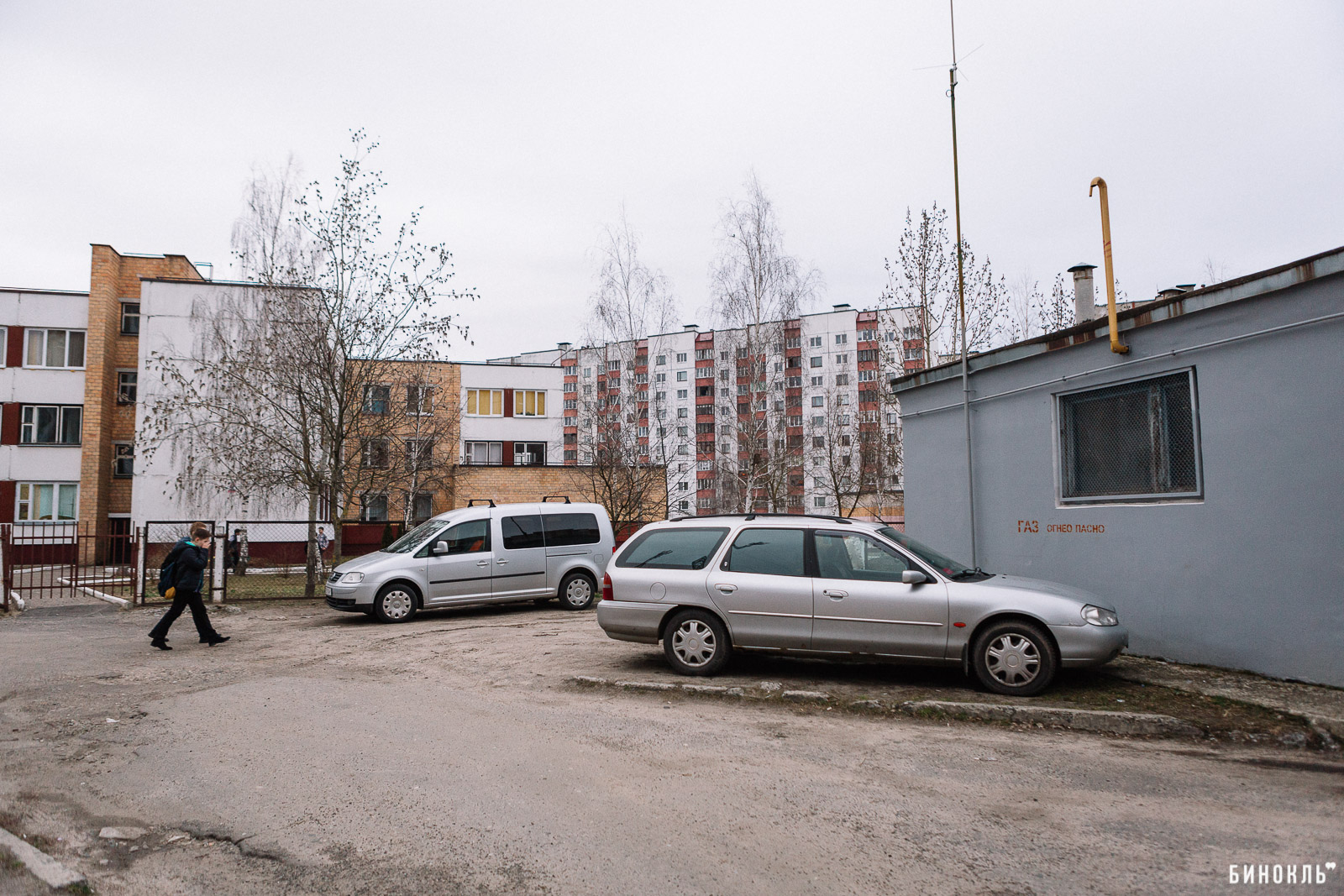 За разговором мы сворачиваем во двор на улице Карбышева. Назвать его двором можно с натяжкой — вся территория заставлена автомобилями, и это обеденное время.