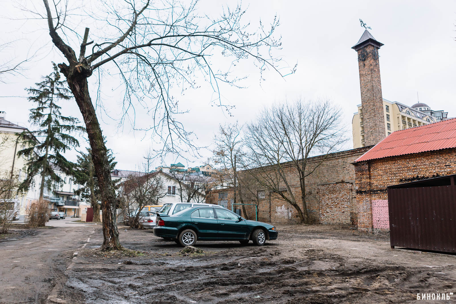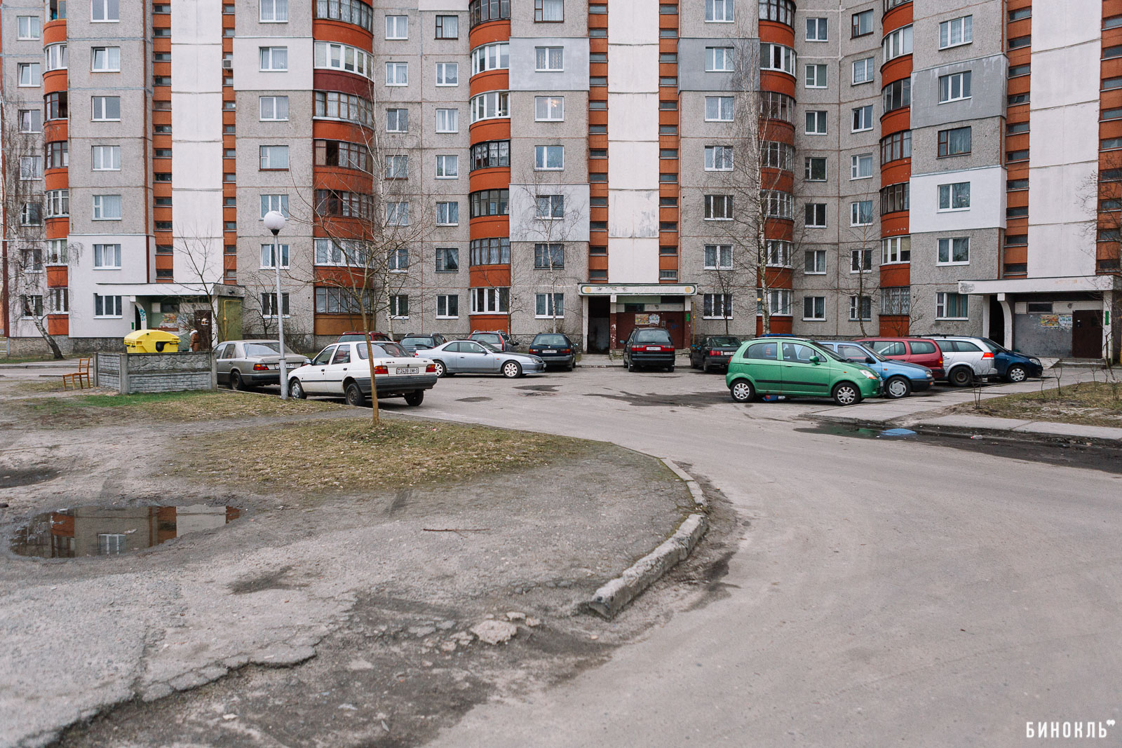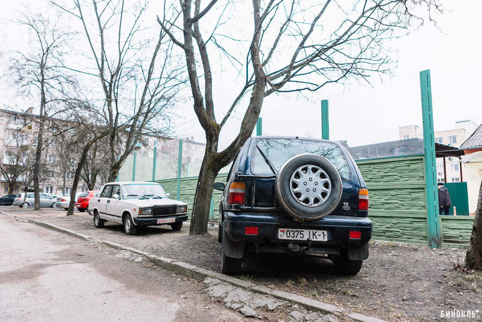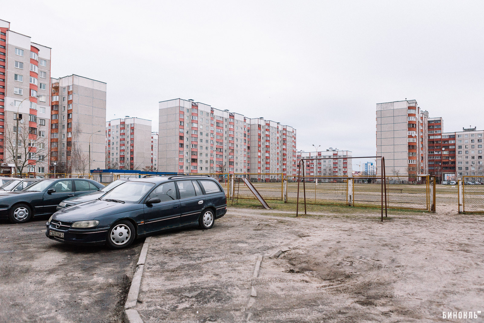 За разговором мы сворачиваем во двор на улице Карбышева. Назвать его двором можно с натяжкой — вся территория заставлена автомобилями, и это обеденное время.
