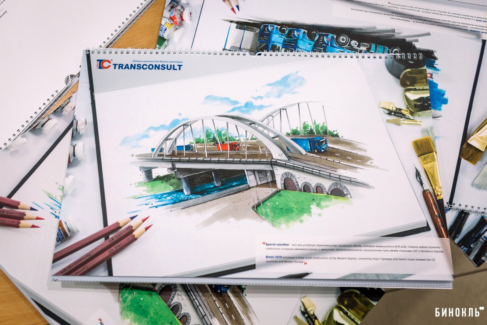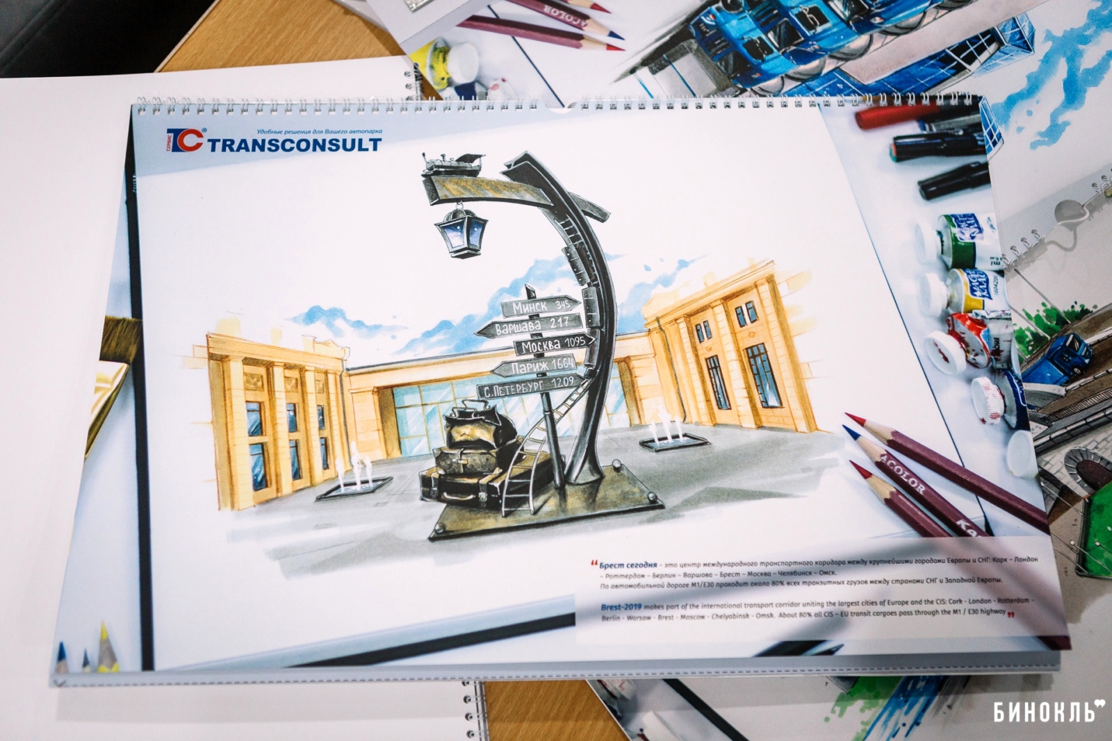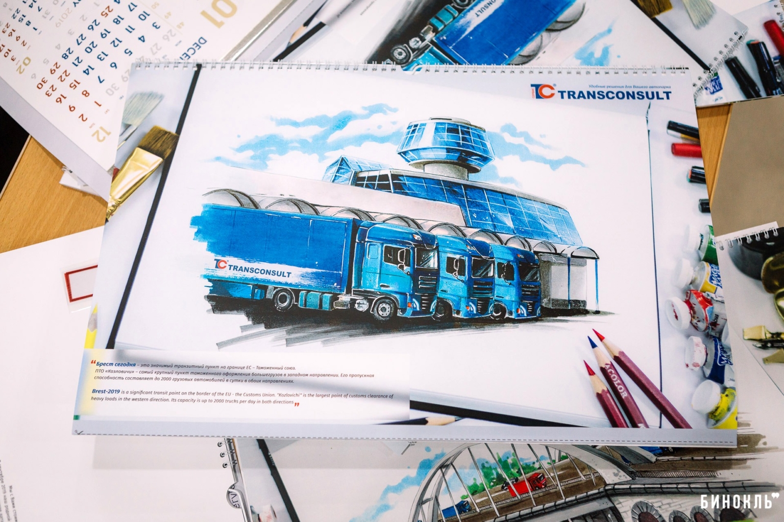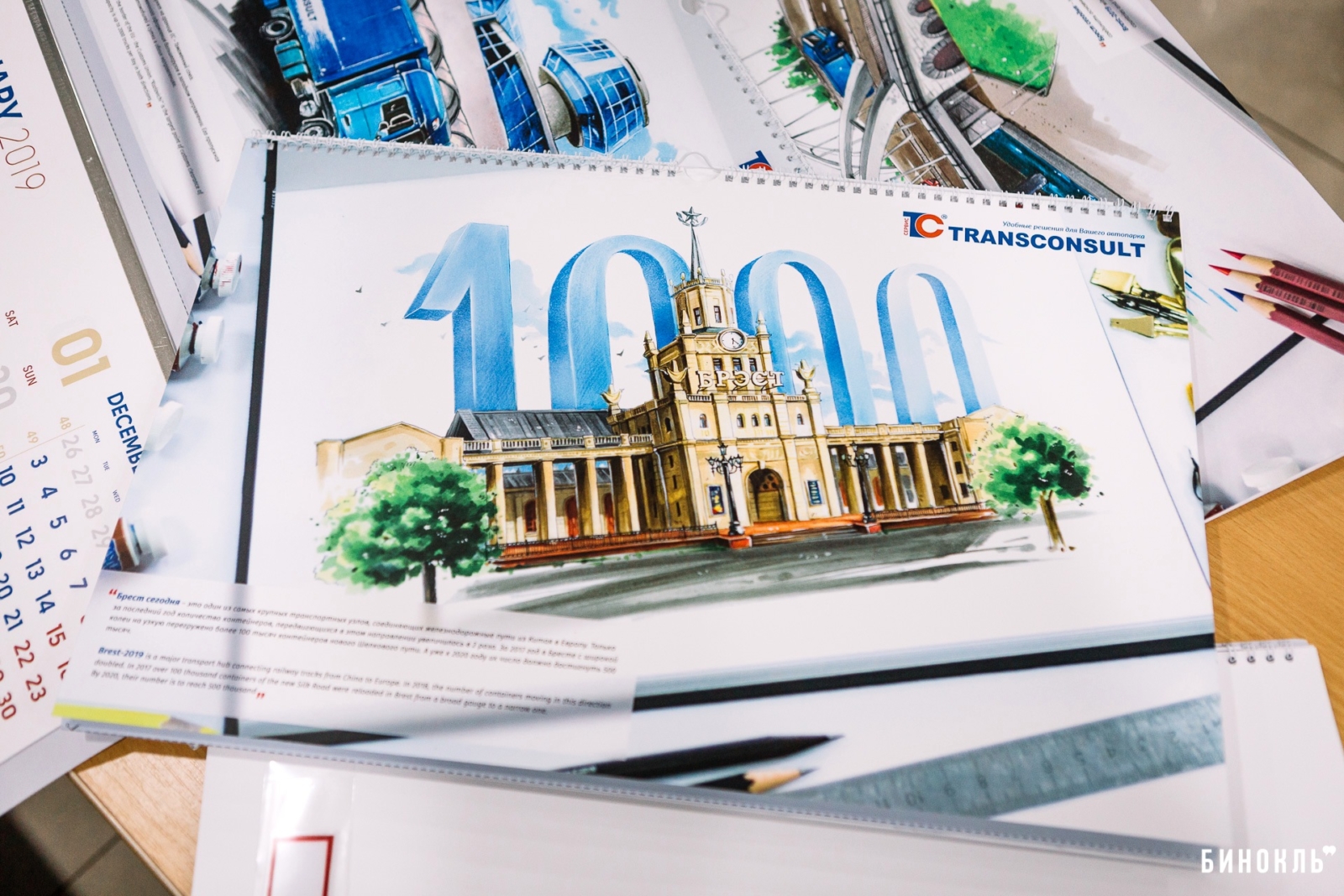 Календарь — наш ответ на то, что происходит в городе и чем хочется делиться со своими клиентами. Ведь все они задействованы в транспортной сфере. Мы хотим напомнить им о том, что Брест — важный логистический центр Европы. Именно по этой причине на совместном мозговом штурме мы решили, что основной темой корпоративного календаря станет 1000-летие Бреста».