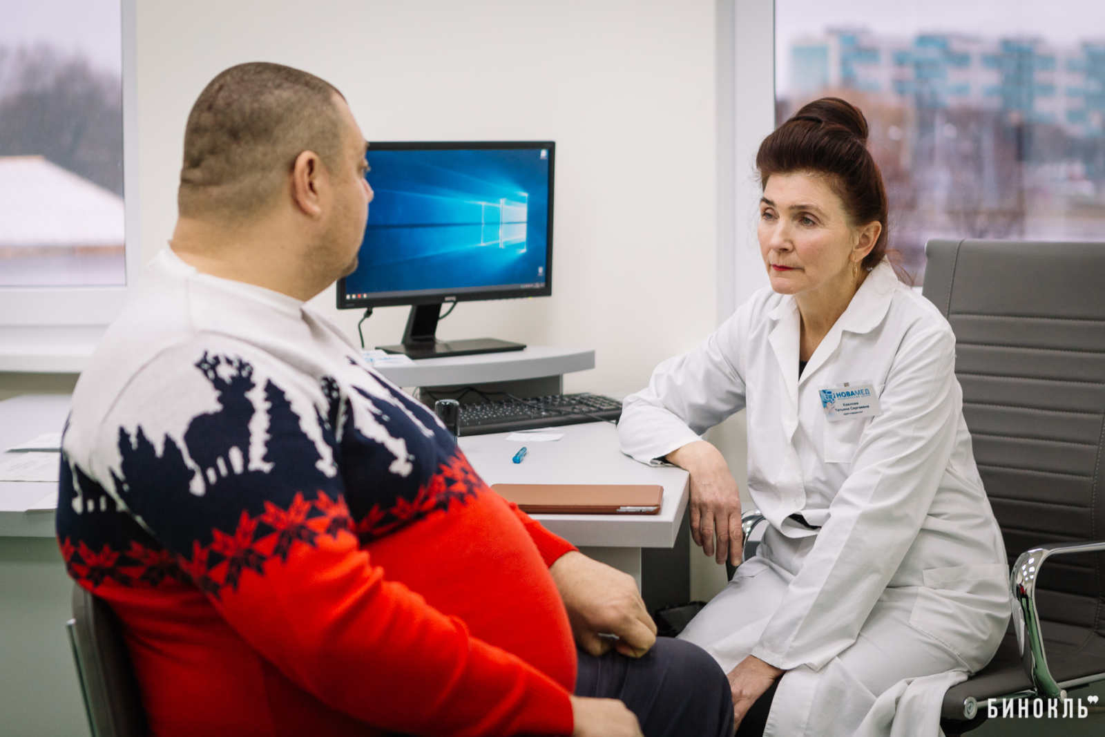 ТРЕНЕР:«В первую очередь смотрим на медицинские показания: желательно исключить нагрузки на колени, потому что опорно-двигательному аппарату и так сложно носить этот вес, а тут еще мы с упражнениями. Из обследования видно, что есть вопросы к давлению. Значит, надо наблюдаться у доктора, учитывать в тренировках.