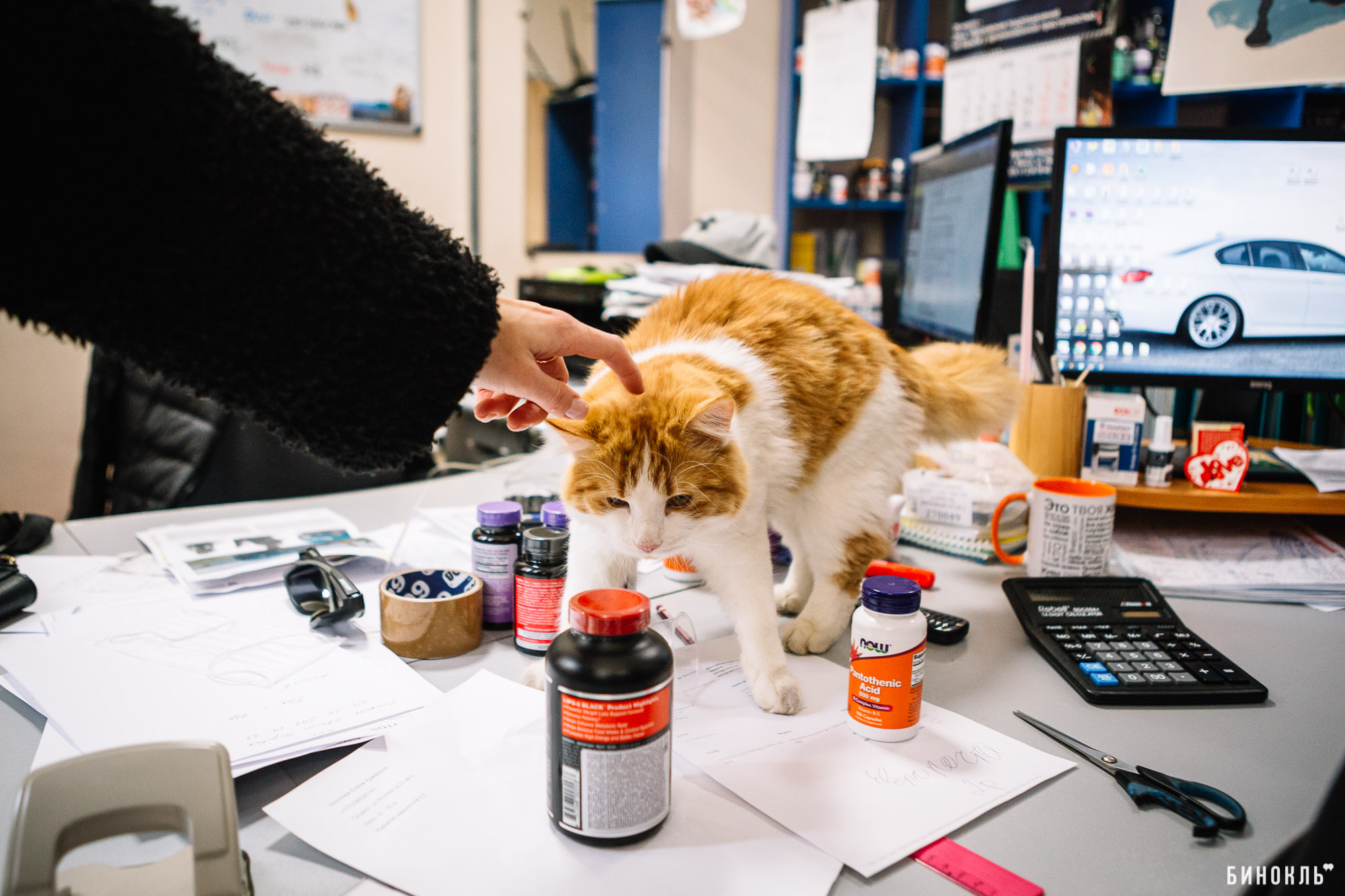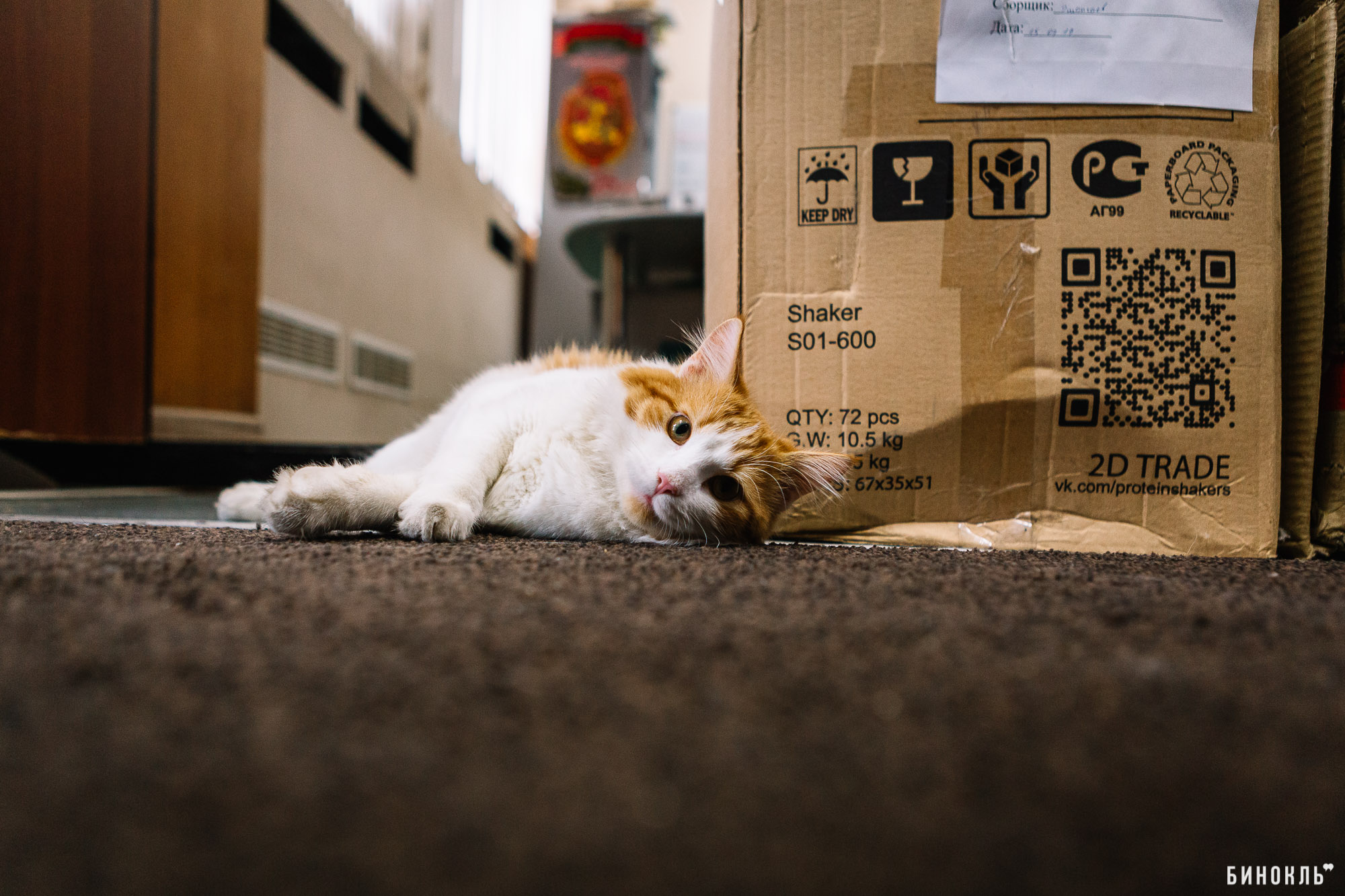 Питомцу четыре года, один из которых он провёл в офисе «Бюро праздников». Попал он сюда неслучайно: коллектив хотел «переложить» ответственность за поимку крысы, что завелась в офисе, на кота.