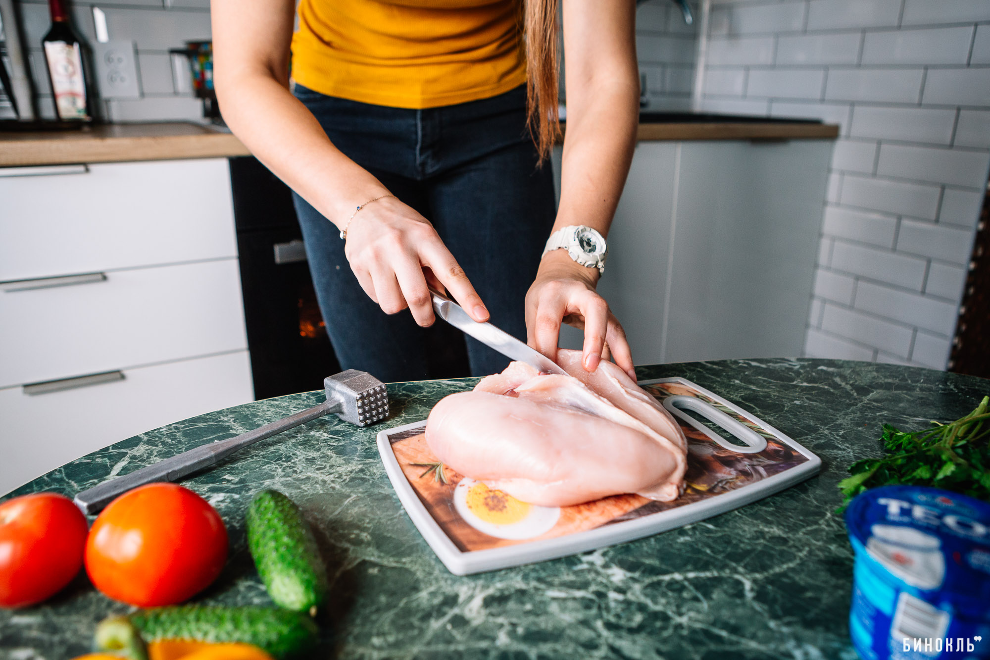 Не заправляйте салат вредным майонезом, замените его на льняное масло или на высокобелковый йогурт Teos 5% — пользы будет куда больше.